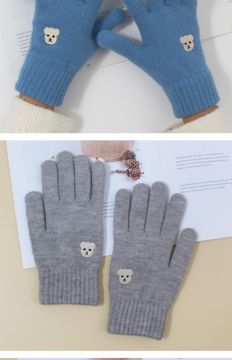 • 구멍이 있는 다섯 손가락 자수 곰 회색