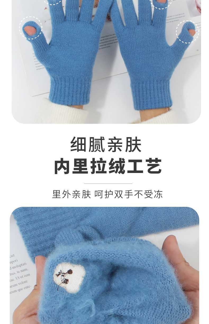 가을과 겨울 따뜻한 장갑 여성의 두꺼운 칫솔질 간단한 패션 냉장 야외 승마 니트 남성 커플 자수