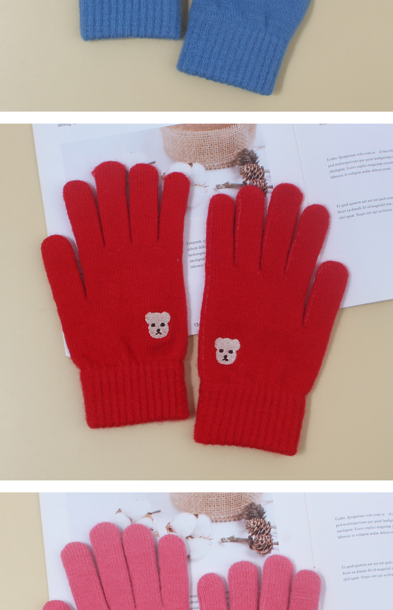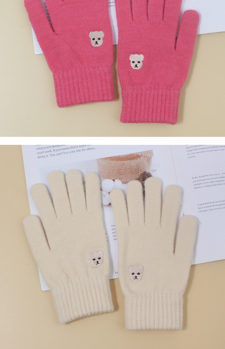 • 구멍 다섯 손가락 자수 곰 로즈 레드