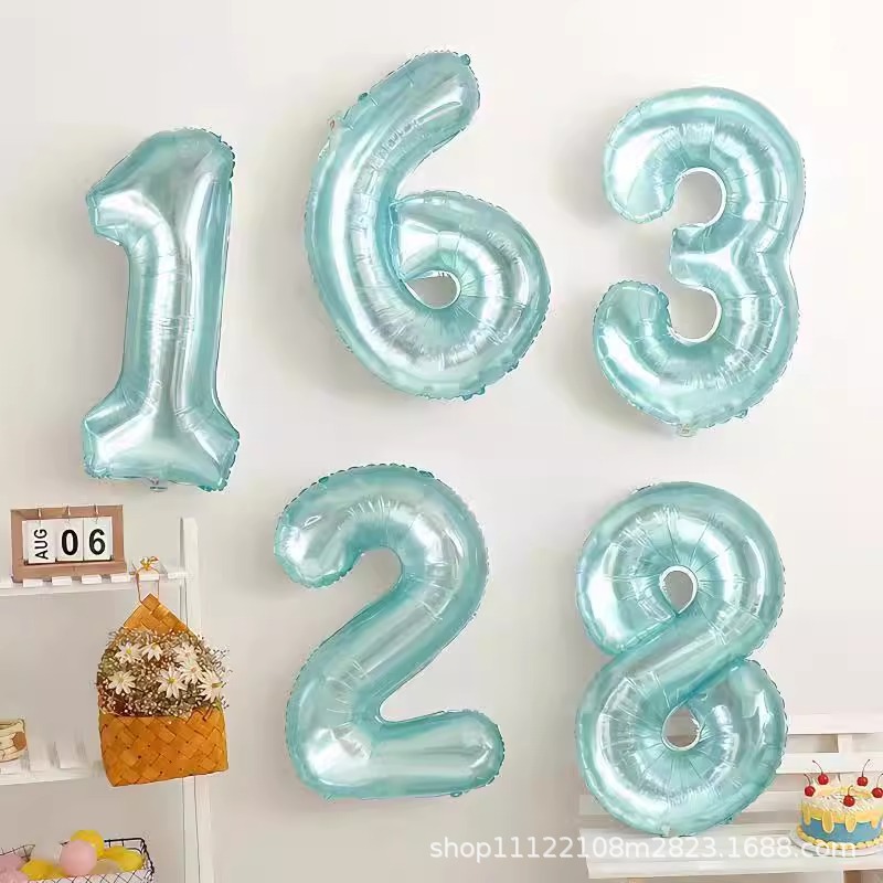 32 인치 블루 크리스탈 젤리 디지털 풍선 야외 아기 생일 파티 사진 배경 장식 장면 레이아웃