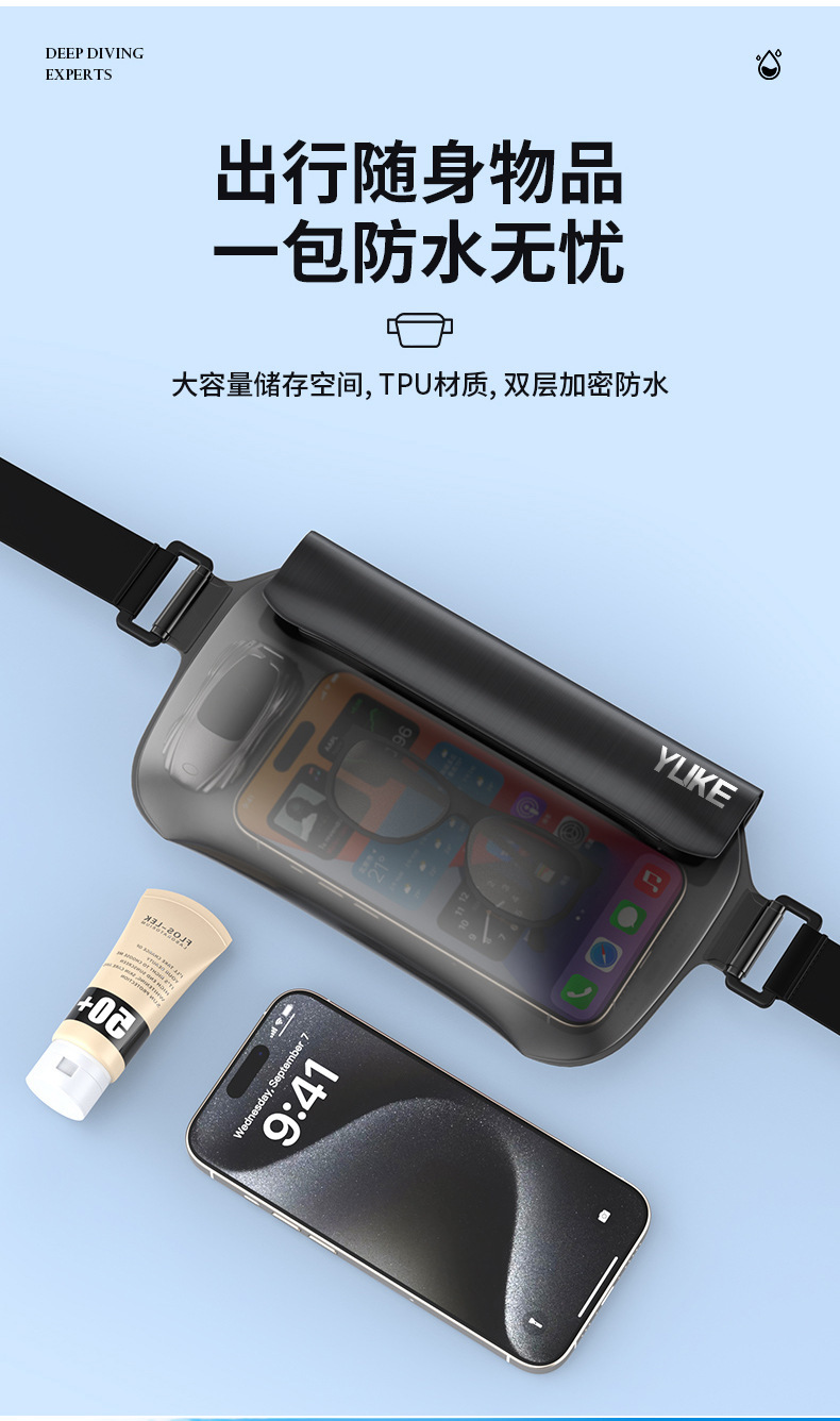 휴대 전화 방수 가방 야외 수영 허리 가방 표류 터치 스크린 투명 사진 대용량 저장 가방 방수 장비