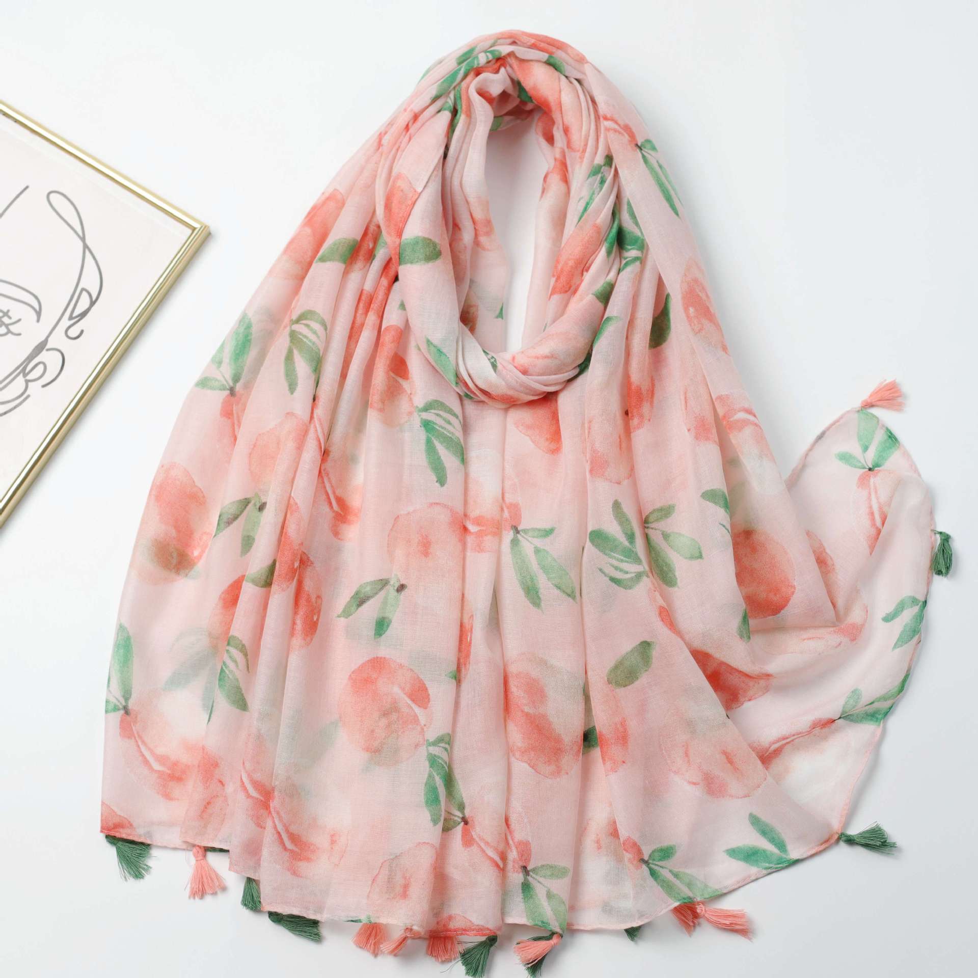 대외 무역 국경 간 라이브 복숭아 인쇄 실크 스카프 여름 선 스크린 여행 목도리 패션 올 매치 얇은 실크 스카프스토어 가기