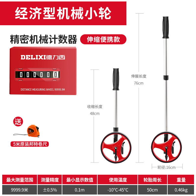 Delixi 롤러 레인지 파인더 핸드 푸시 레인지 파인더 도로 차량 디지털 디스플레이 야외 롤링 푸시 통치자 엔지니어링 측정 통치자스토어 가기