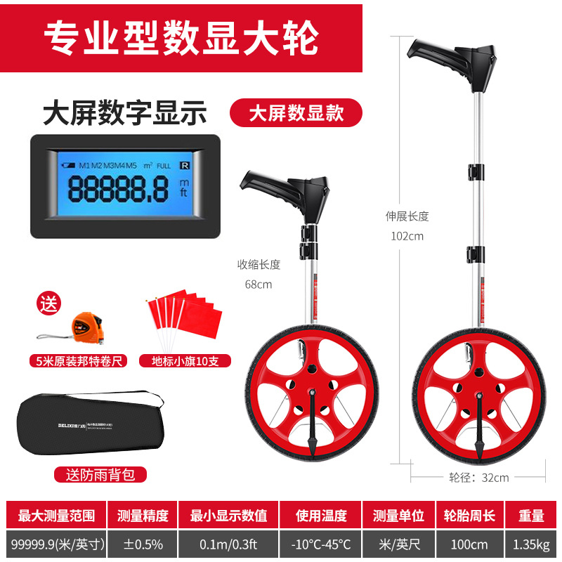 • [디지털 디스플레이 모델] 대형 휠 대형 스크린 디지털 디스플레이 거리 측정기 [무료 5m 줄자 + 방수 가방]