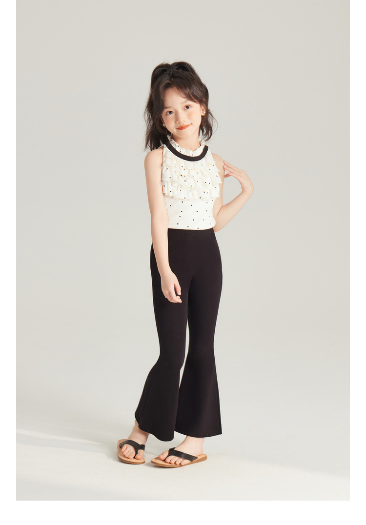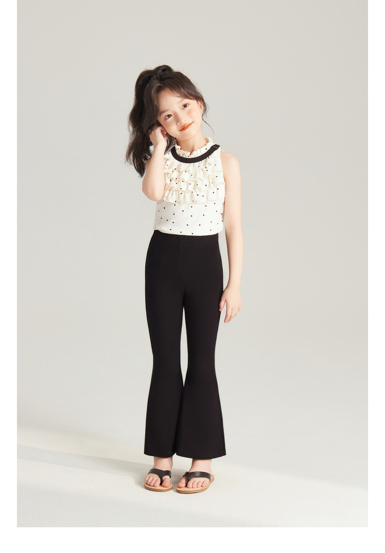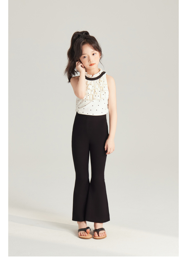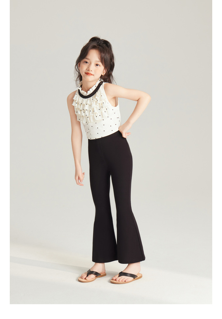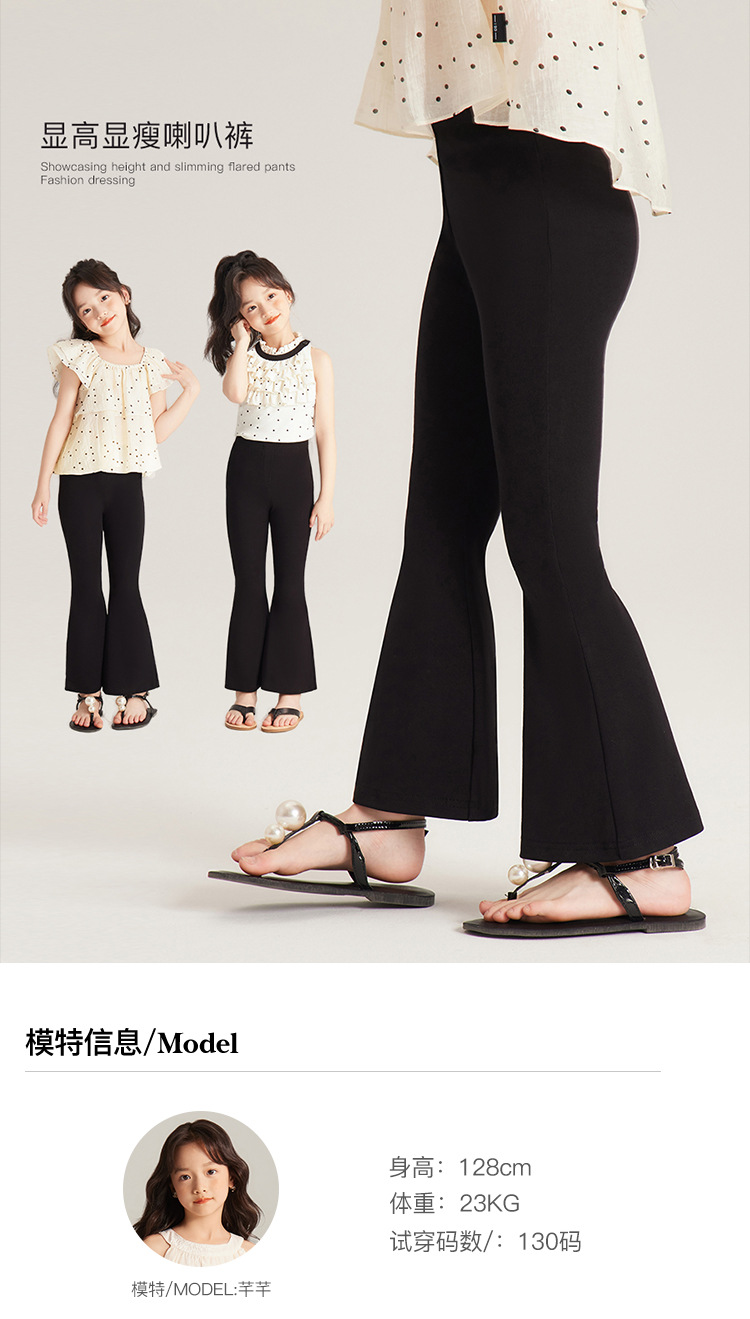 Amybaby Girls 'Pants 여름 2024 새로운 어린이 높은 허리 슬리밍 경량 블랙 올 매치 플레어 바지스토어 가기