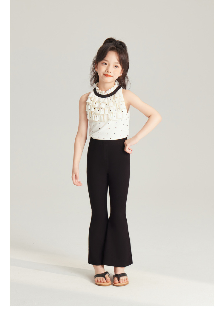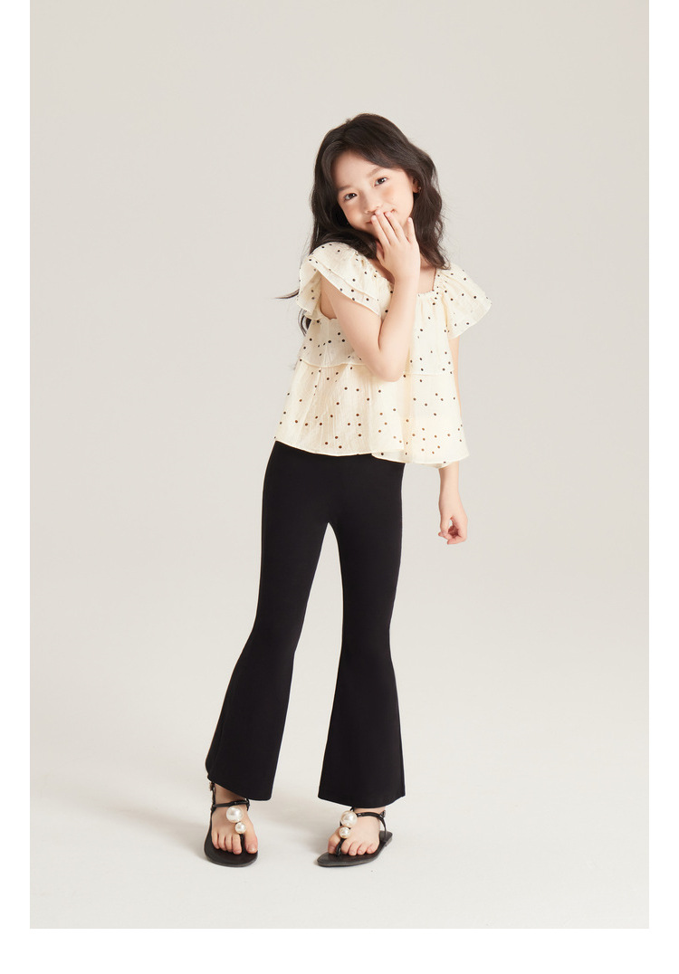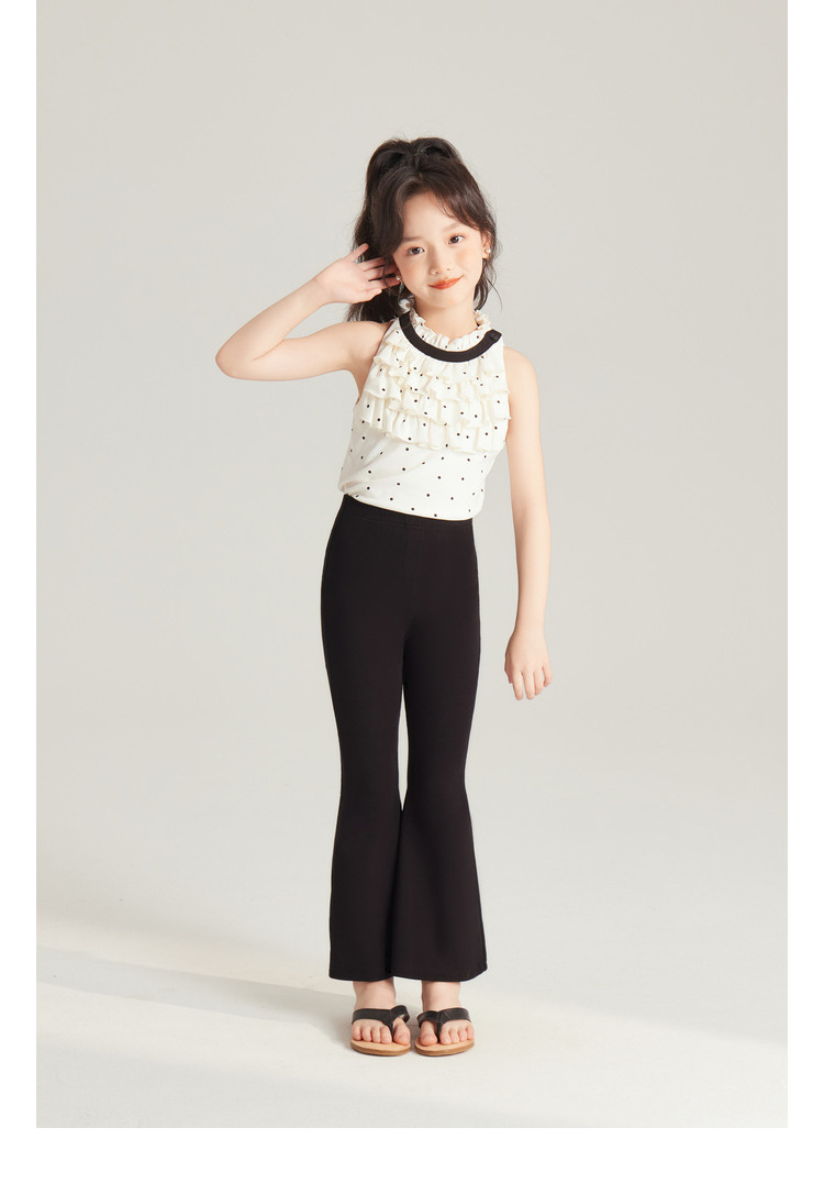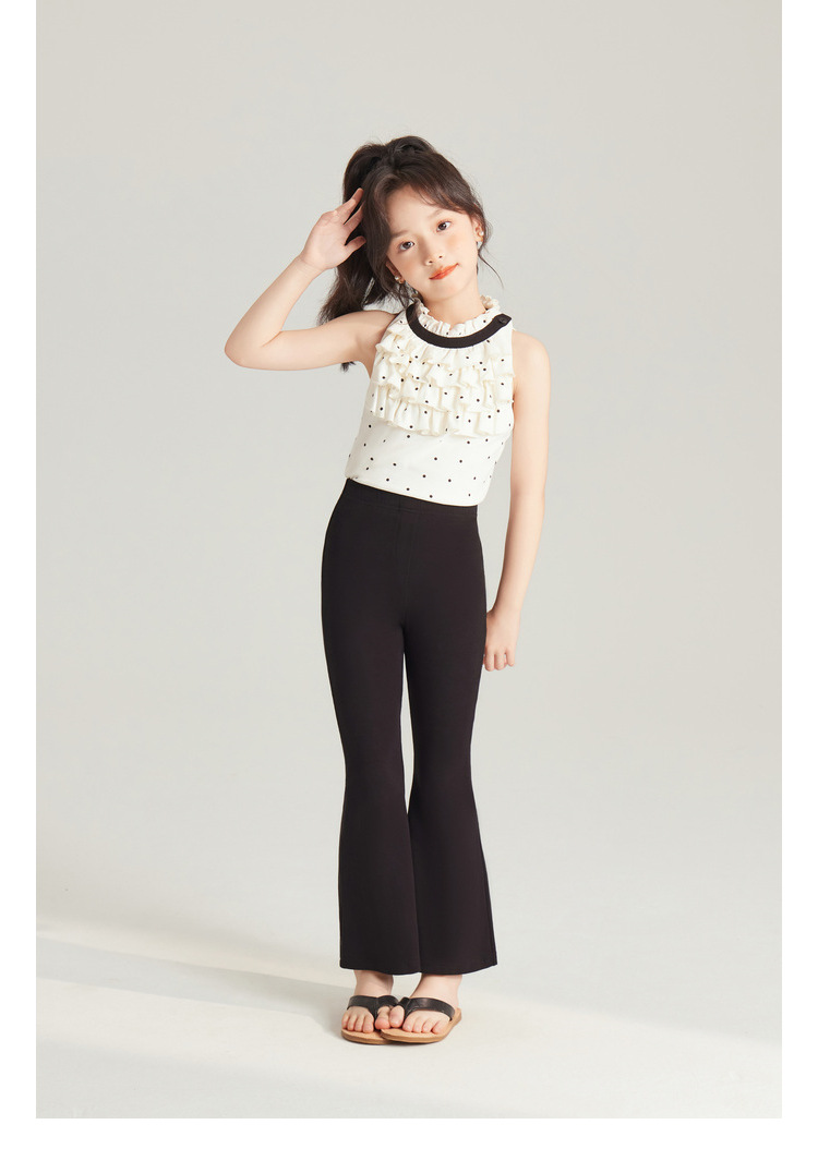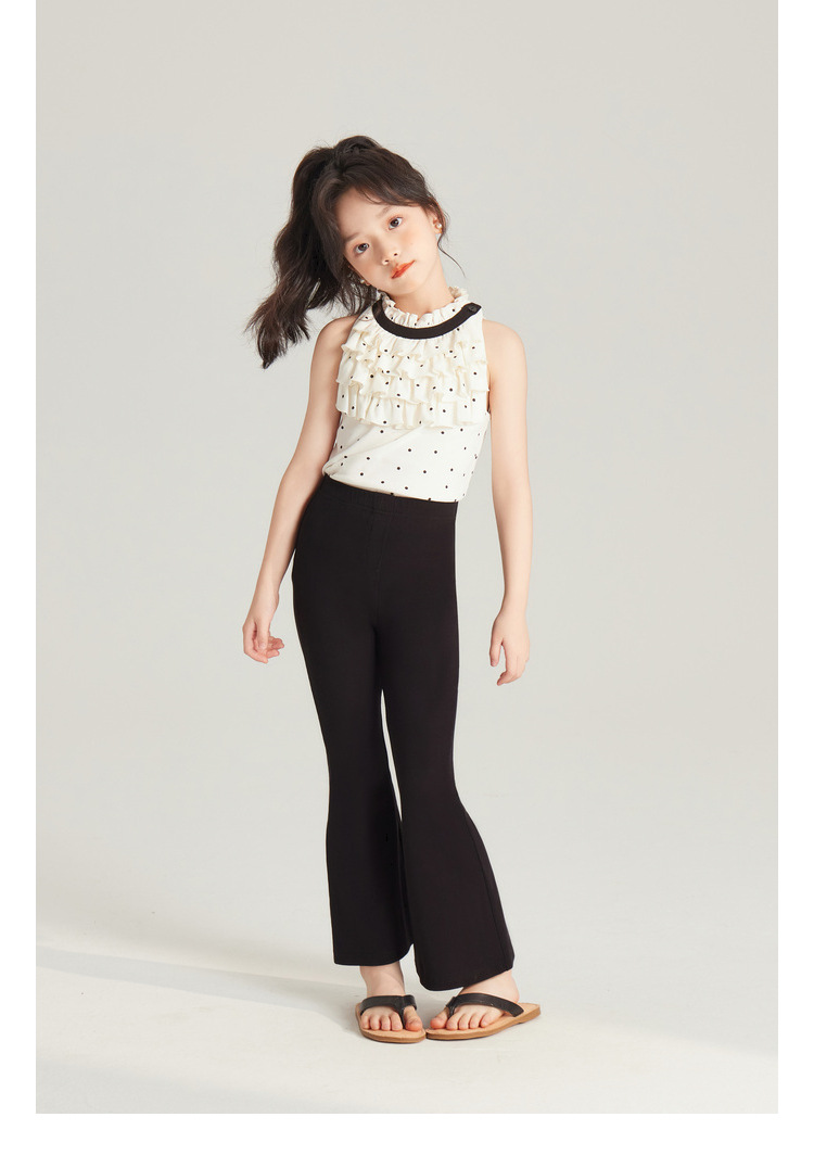 Amybaby Girls 'Pants 여름 2024 새로운 어린이 높은 허리 슬리밍 경량 블랙 올 매치 플레어 바지스토어 가기