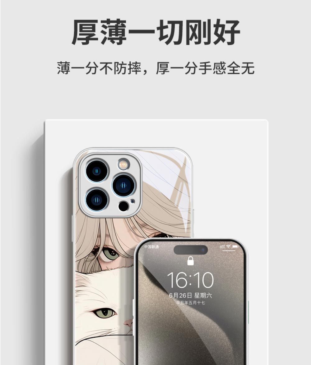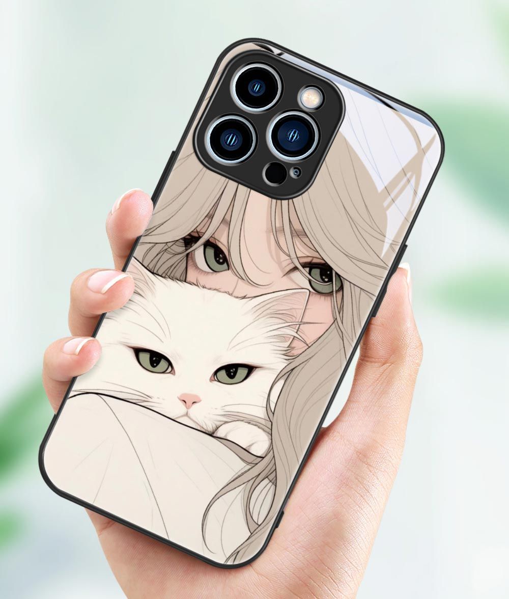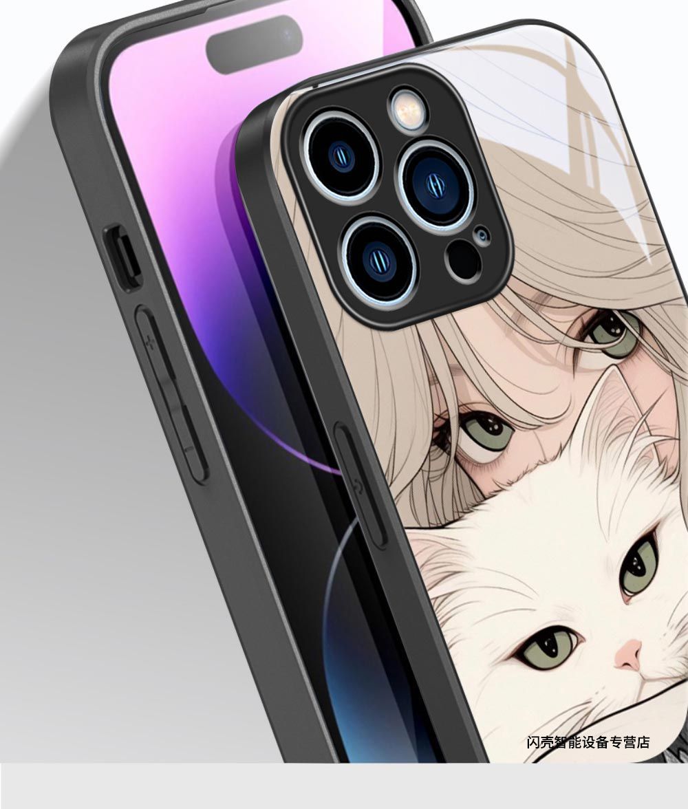 고양이를 안고 있는 소녀 Apple 15ProMax 휴대폰 케이스 심플 14/13Pro 고급 11/XsMax 액체 유리