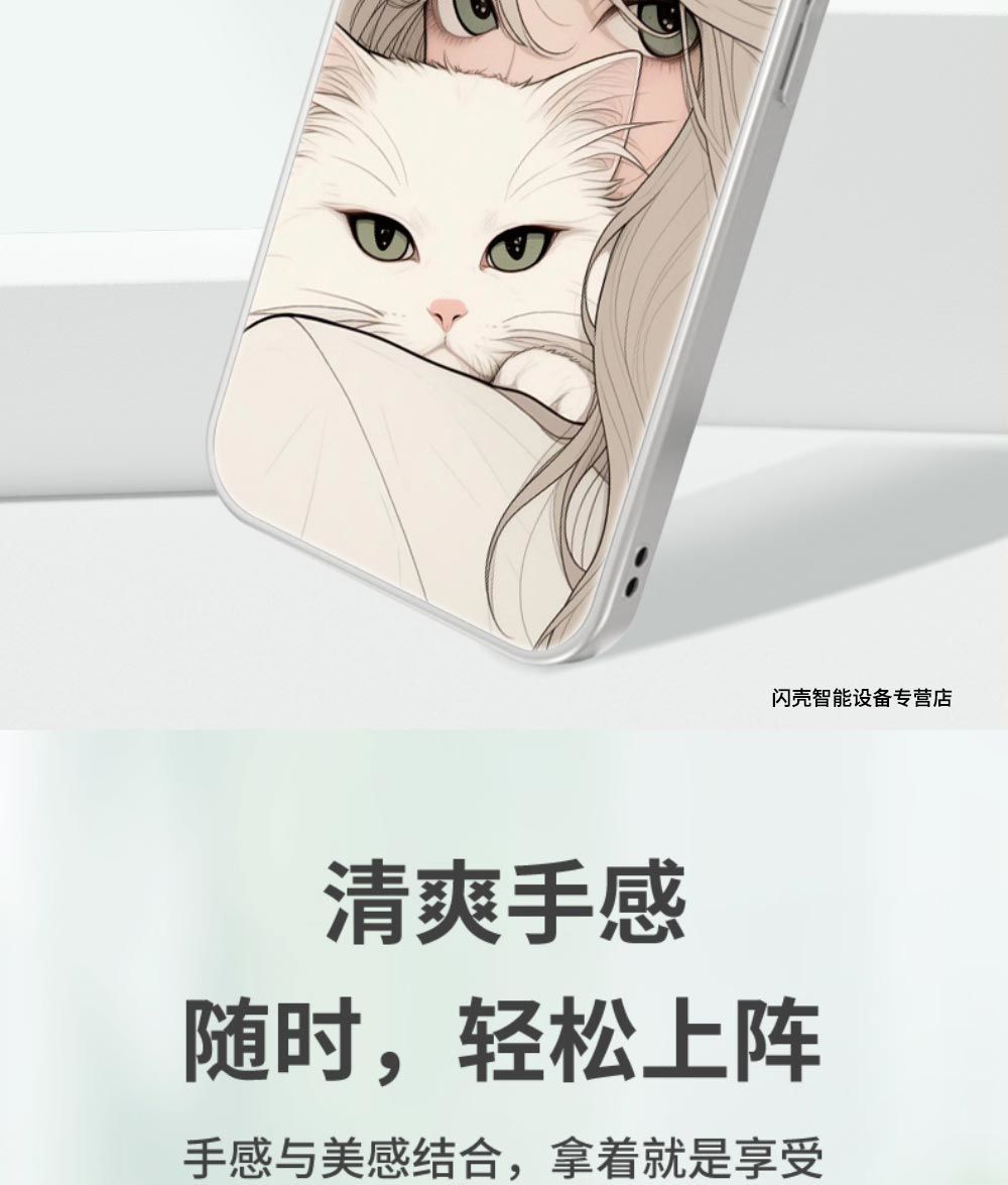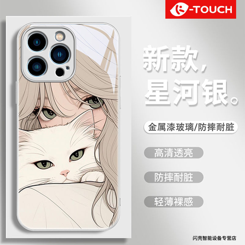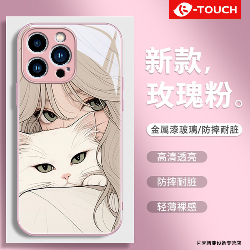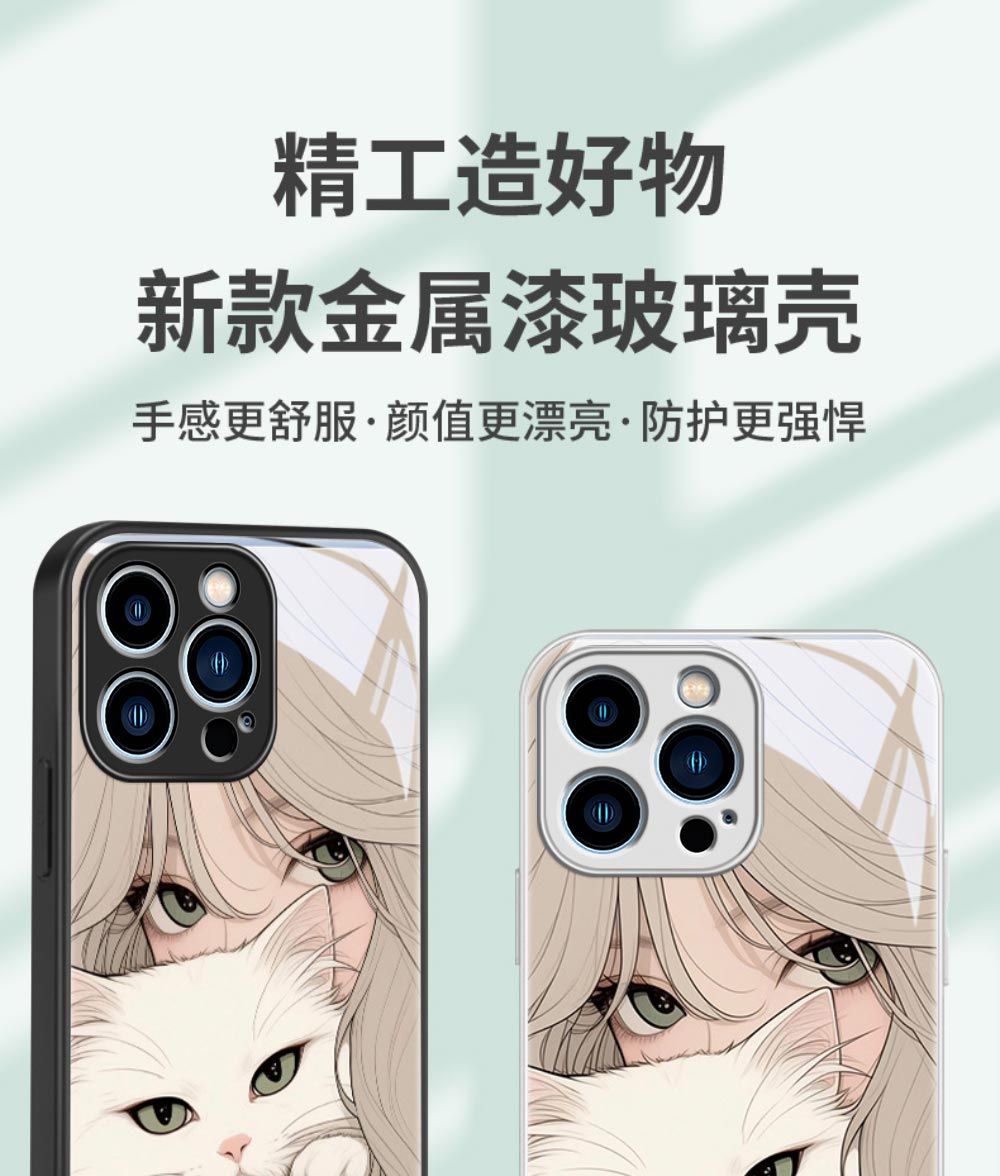 고양이를 안고 있는 소녀 Apple 15ProMax 휴대폰 케이스 심플 14/13Pro 고급 11/XsMax 액체 유리