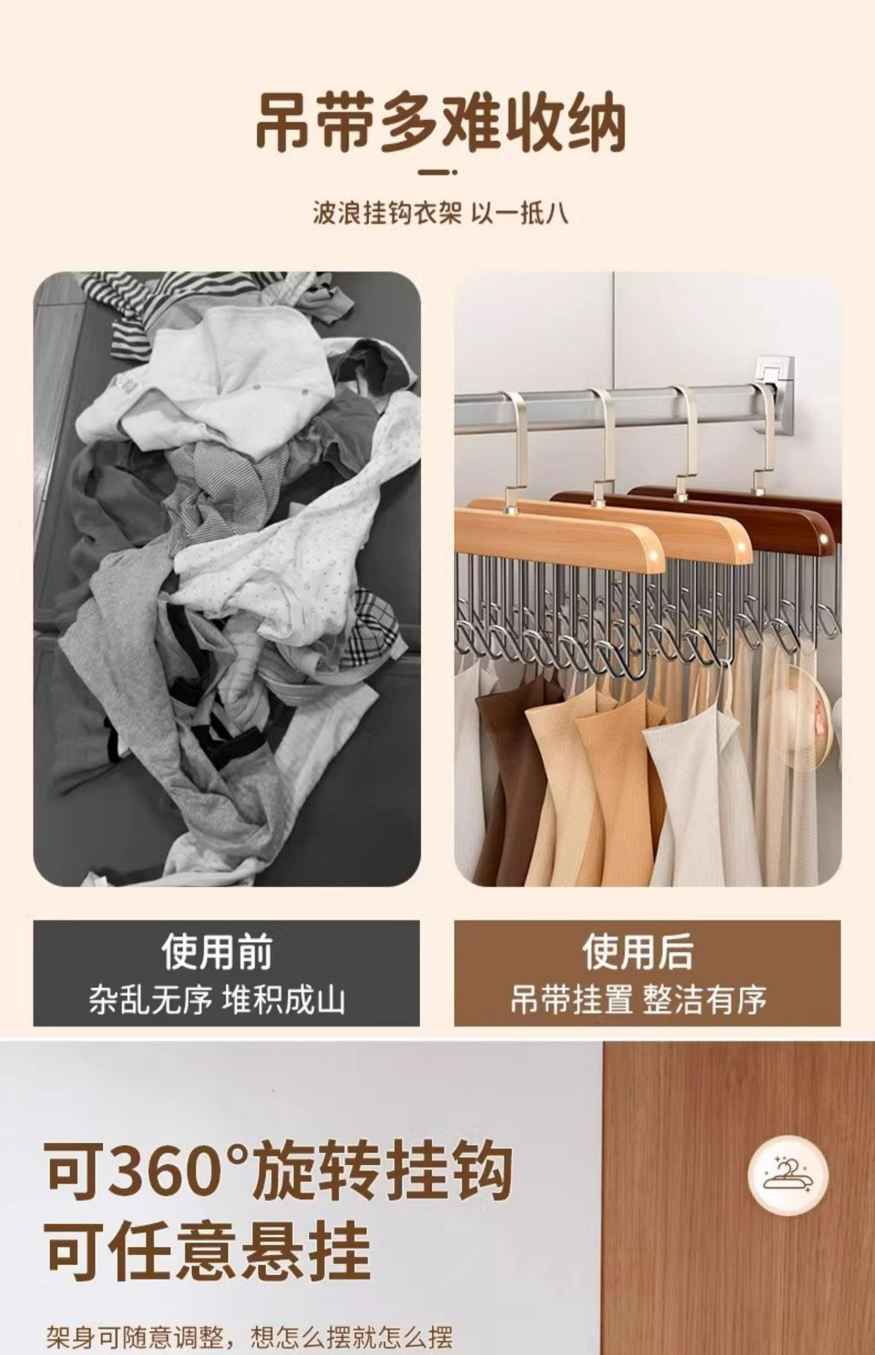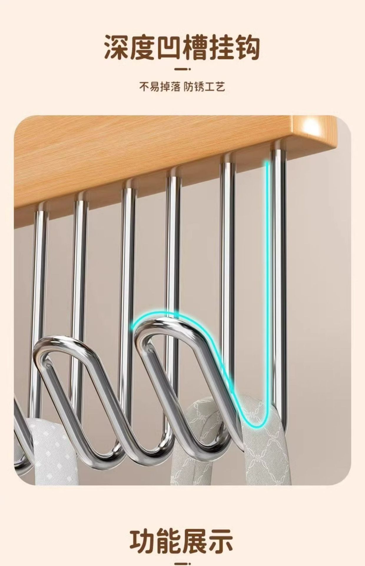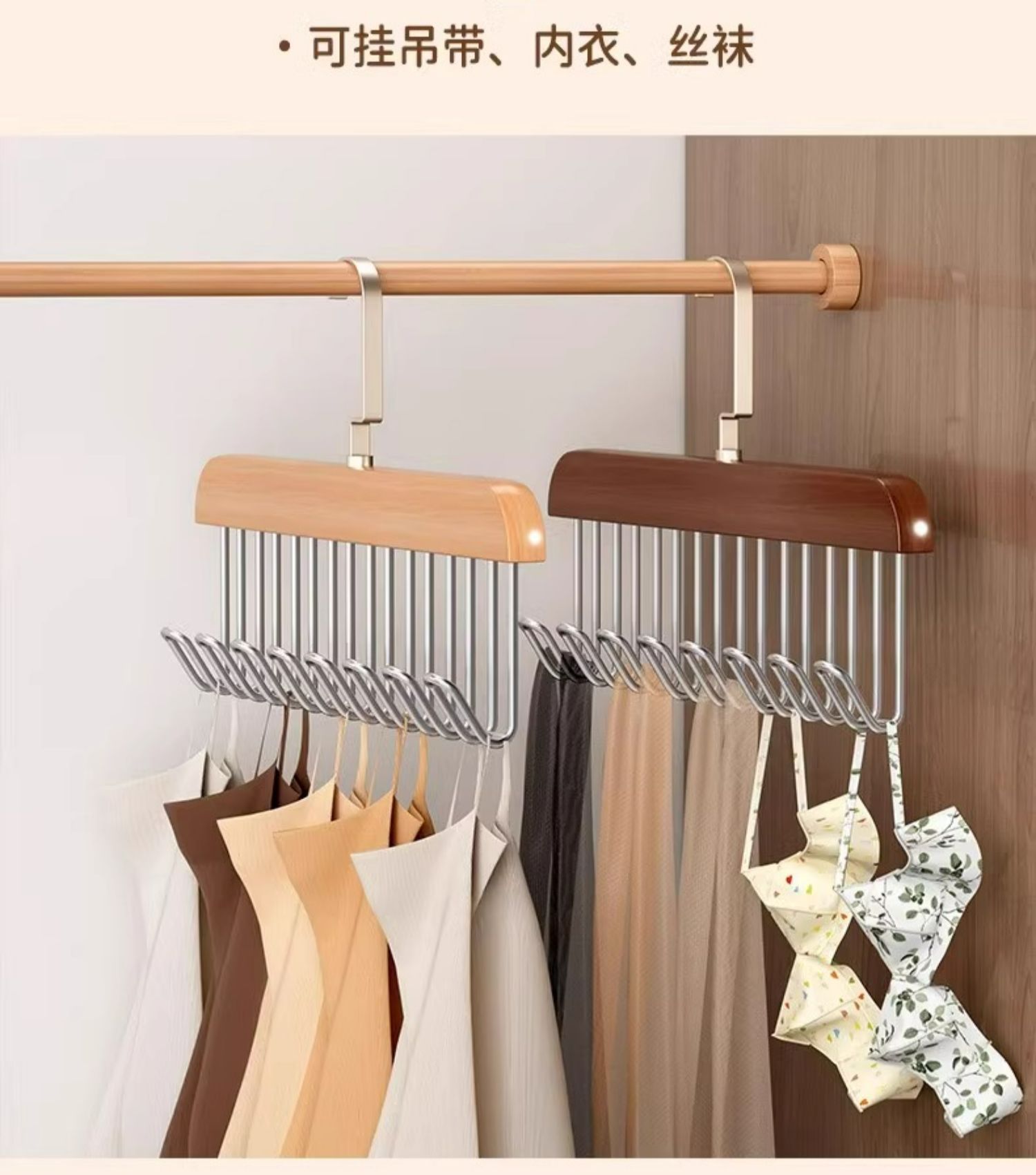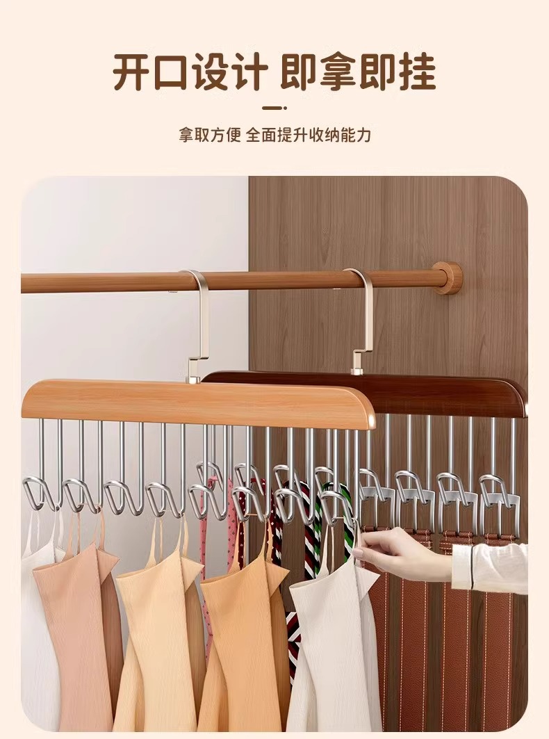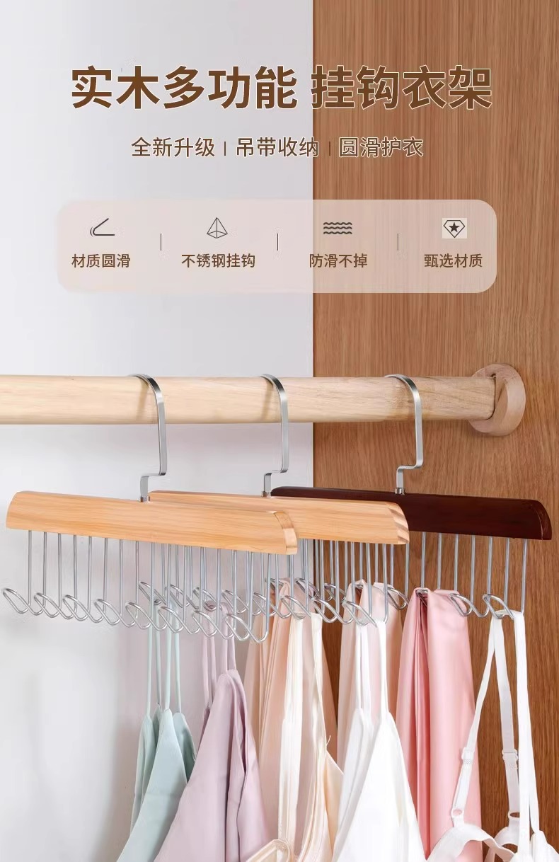 나무 슬링 옷 걸이 다기능 속옷 보관 가정용 기숙사 단단한 나무 후크 웨이브 옷 건조 랙스토어 가기
