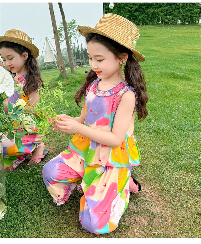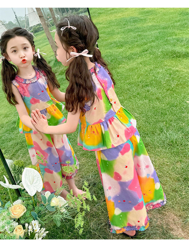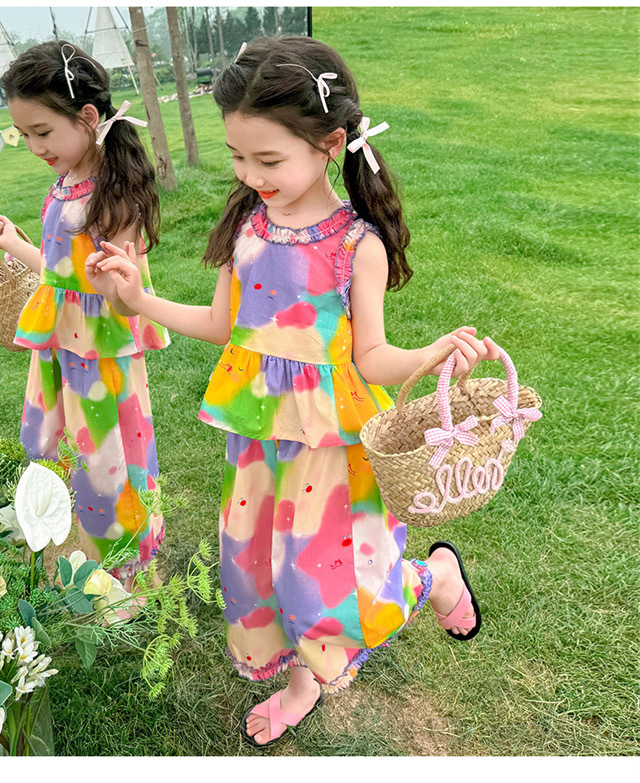 소녀 세트 여름 새로운 도파민 레저 서양식 쿨 투피스 조수 어린이 원피스 헤어스토어 가기