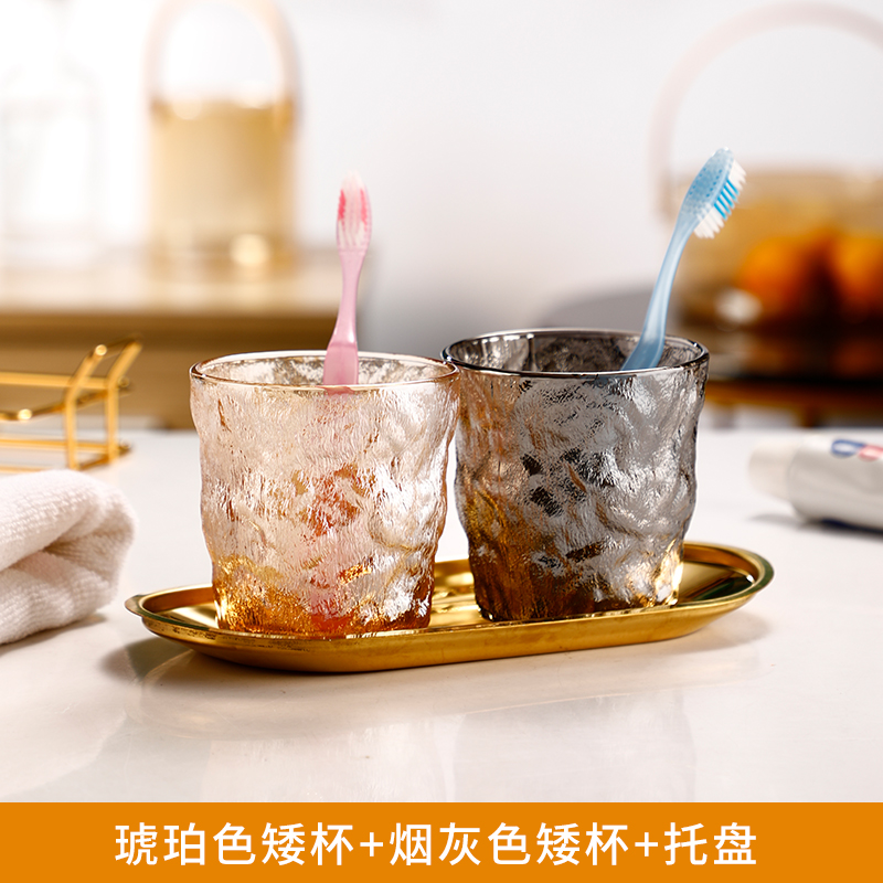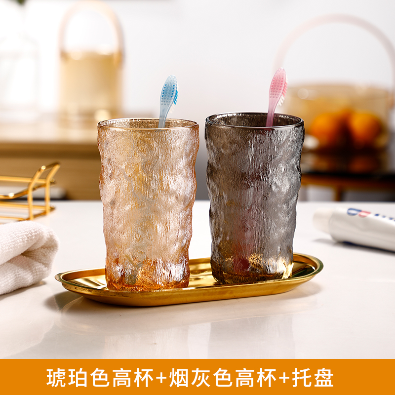 ✅ Ins 스타일 호텔 구강 세척제 컵 빙하 유리 간단한 칫솔 컵 세트 가정용 커플 칫솔 컵 치아 세척스토어 가기