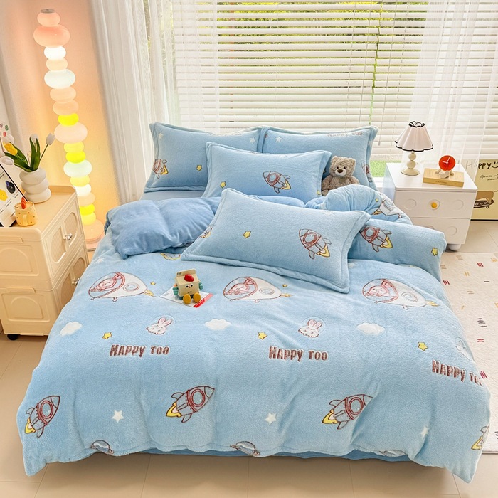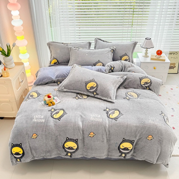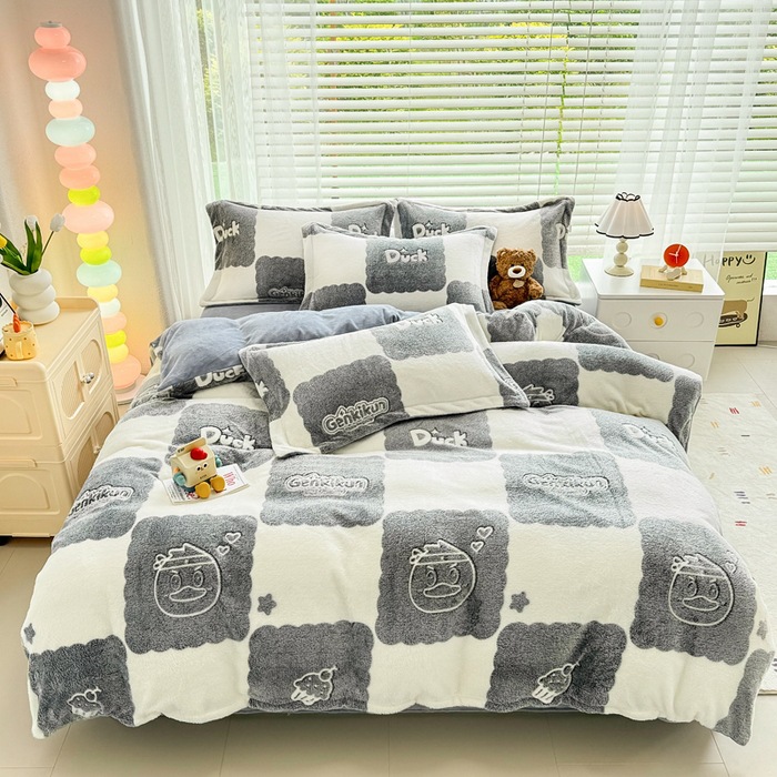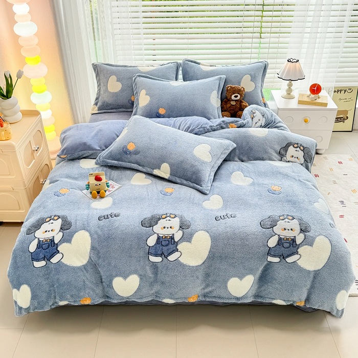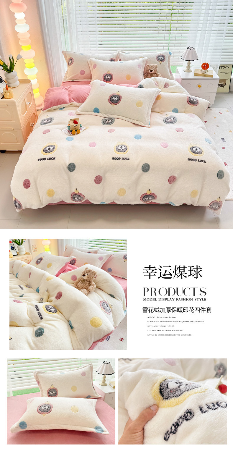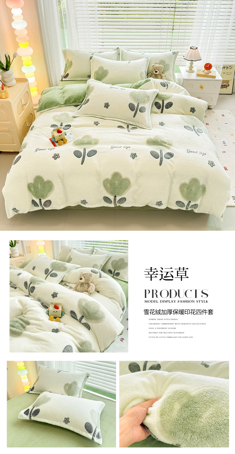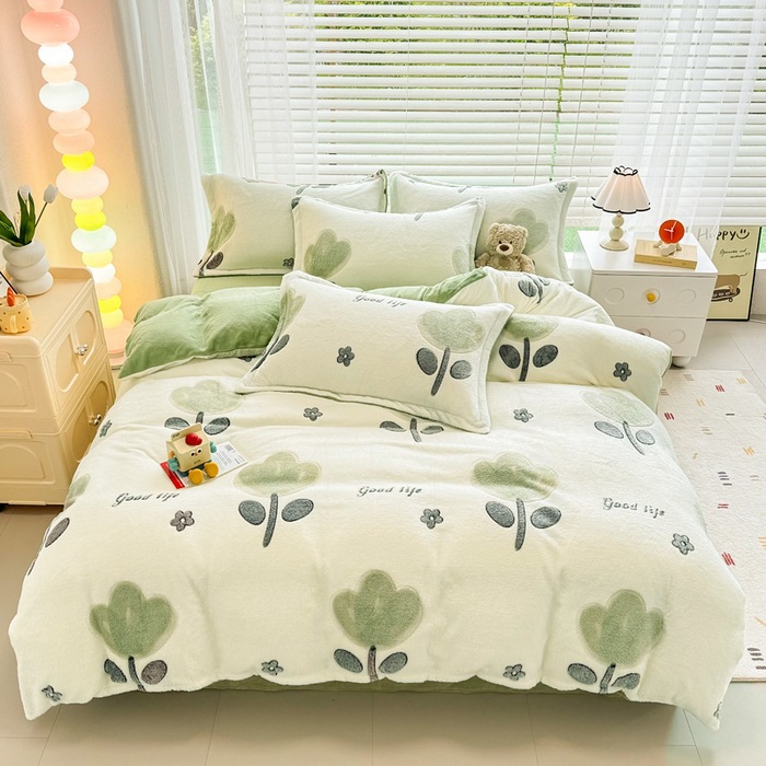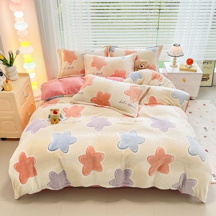 2024 새로운 눈송이 벨벳 인쇄 두꺼운 따뜻한 4 피스 세트