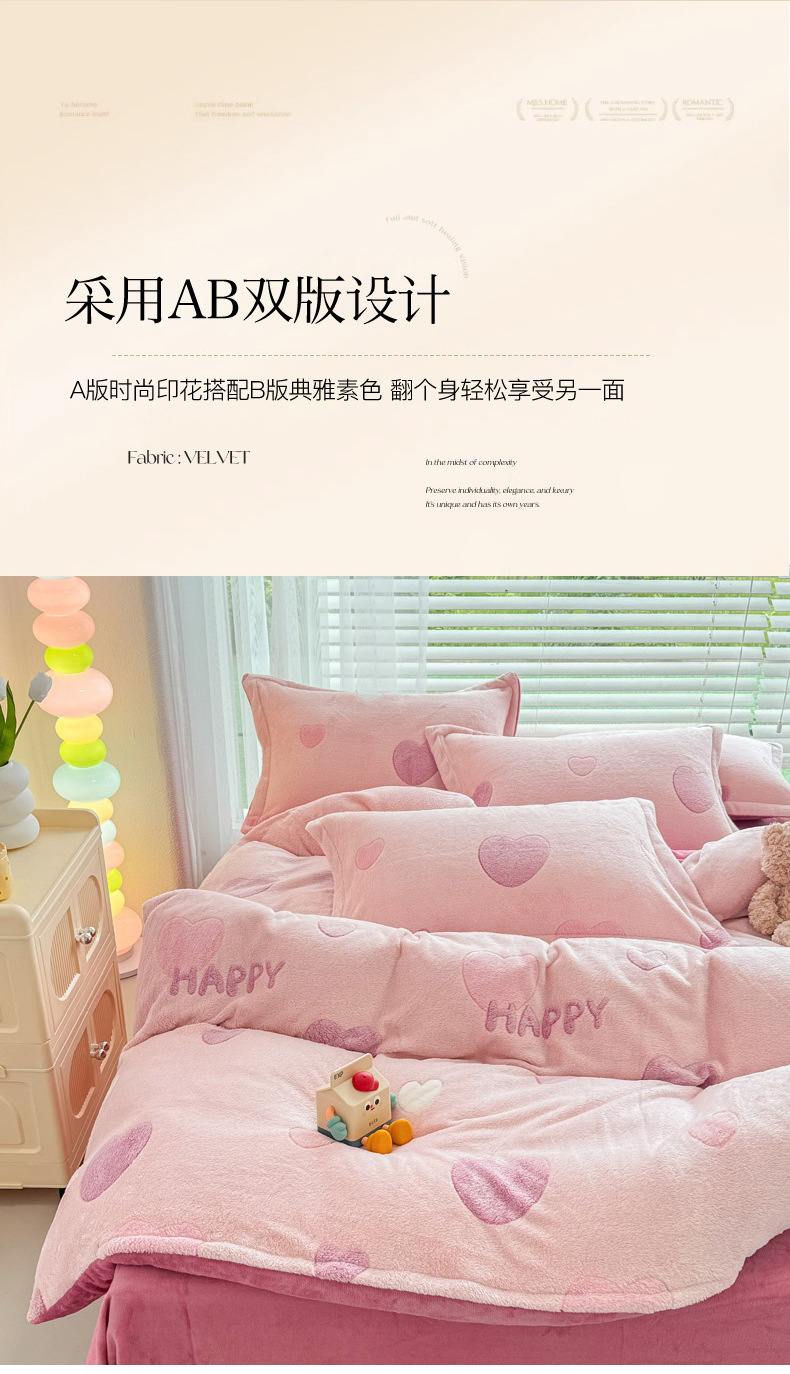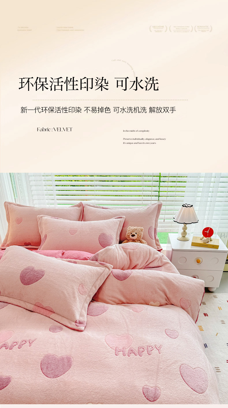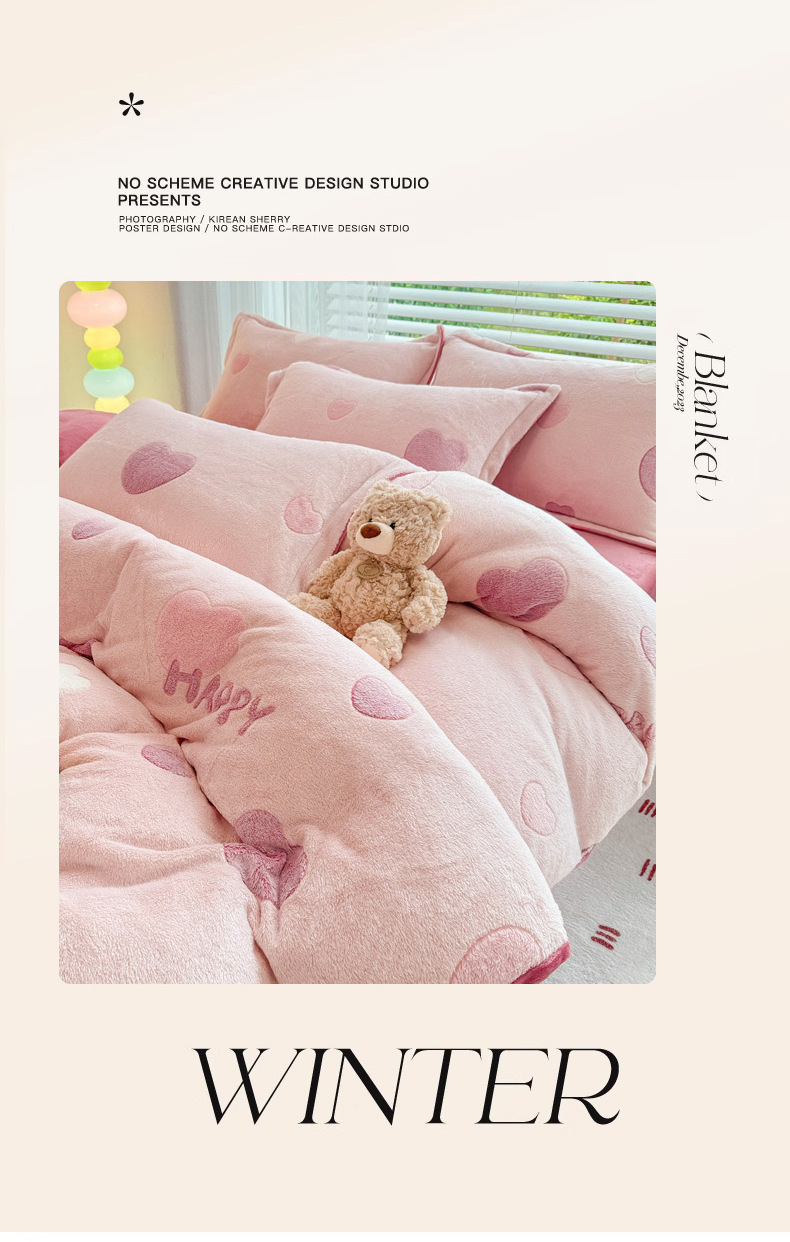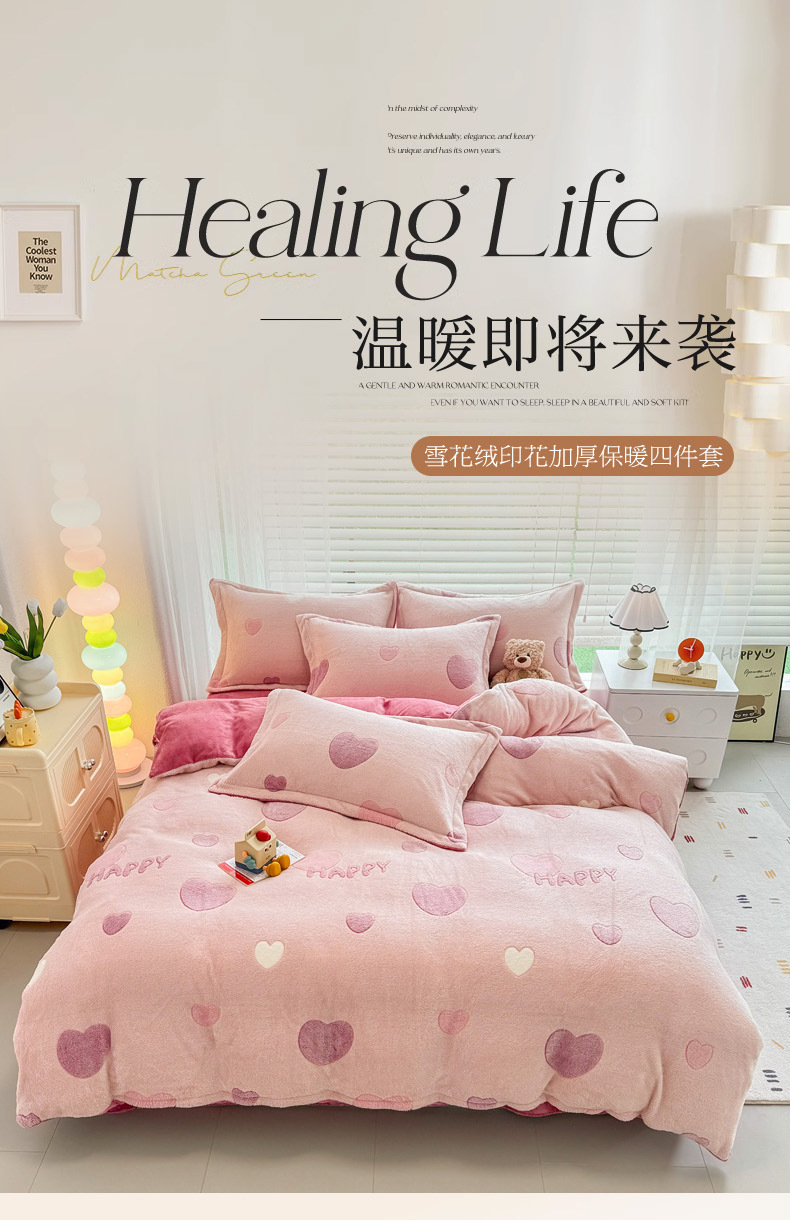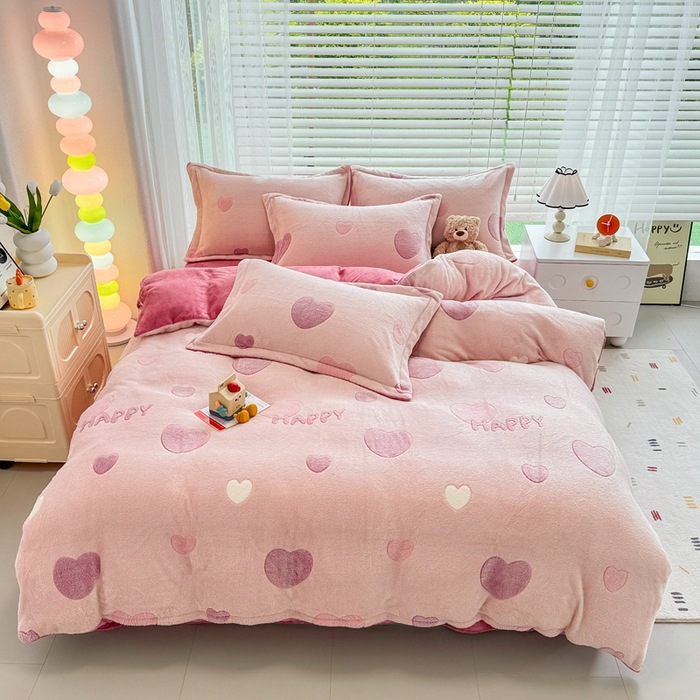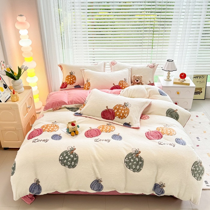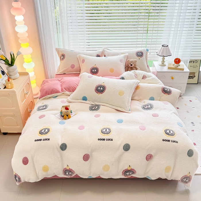 2024 새로운 눈송이 벨벳 인쇄 두꺼운 따뜻한 4 피스 세트