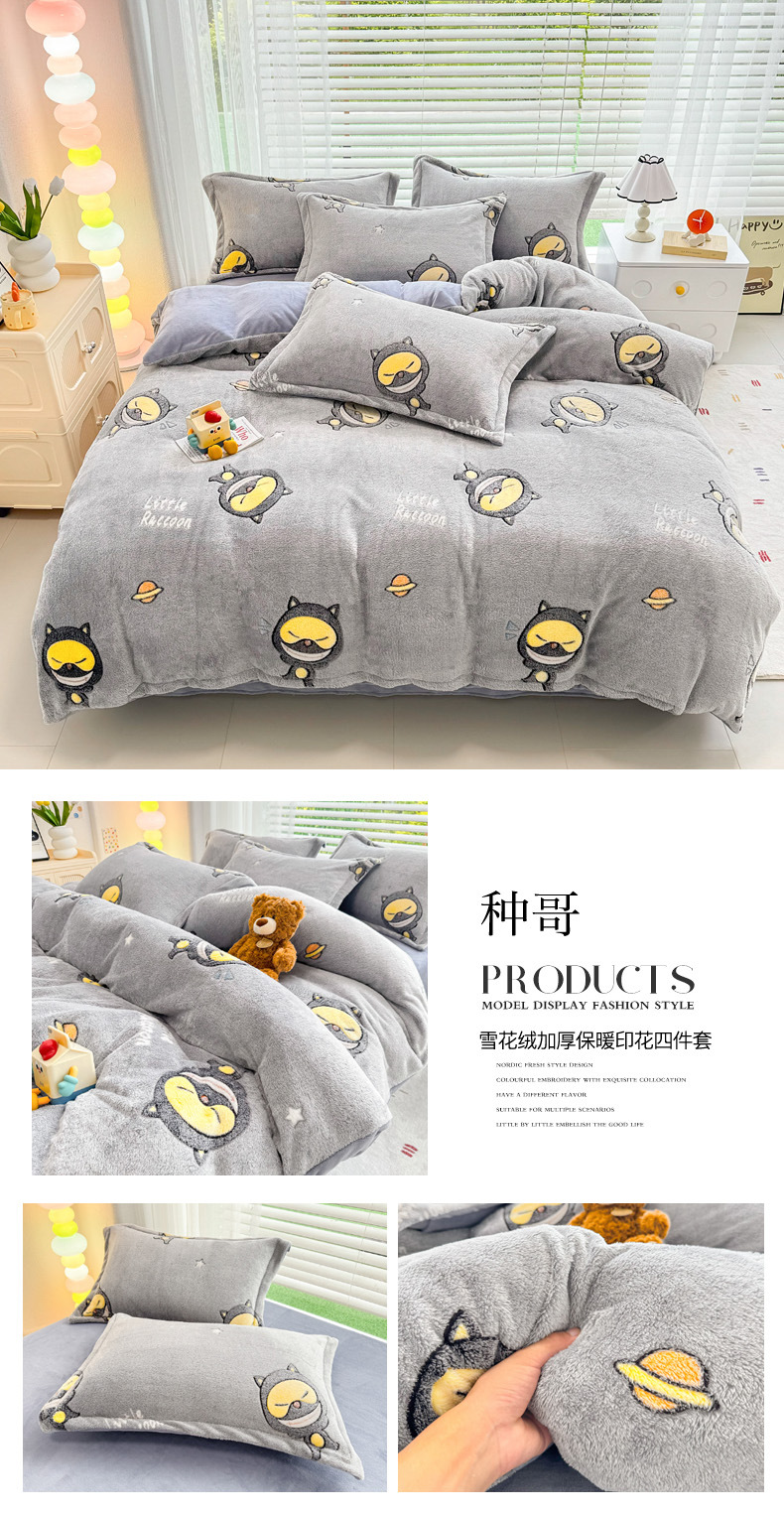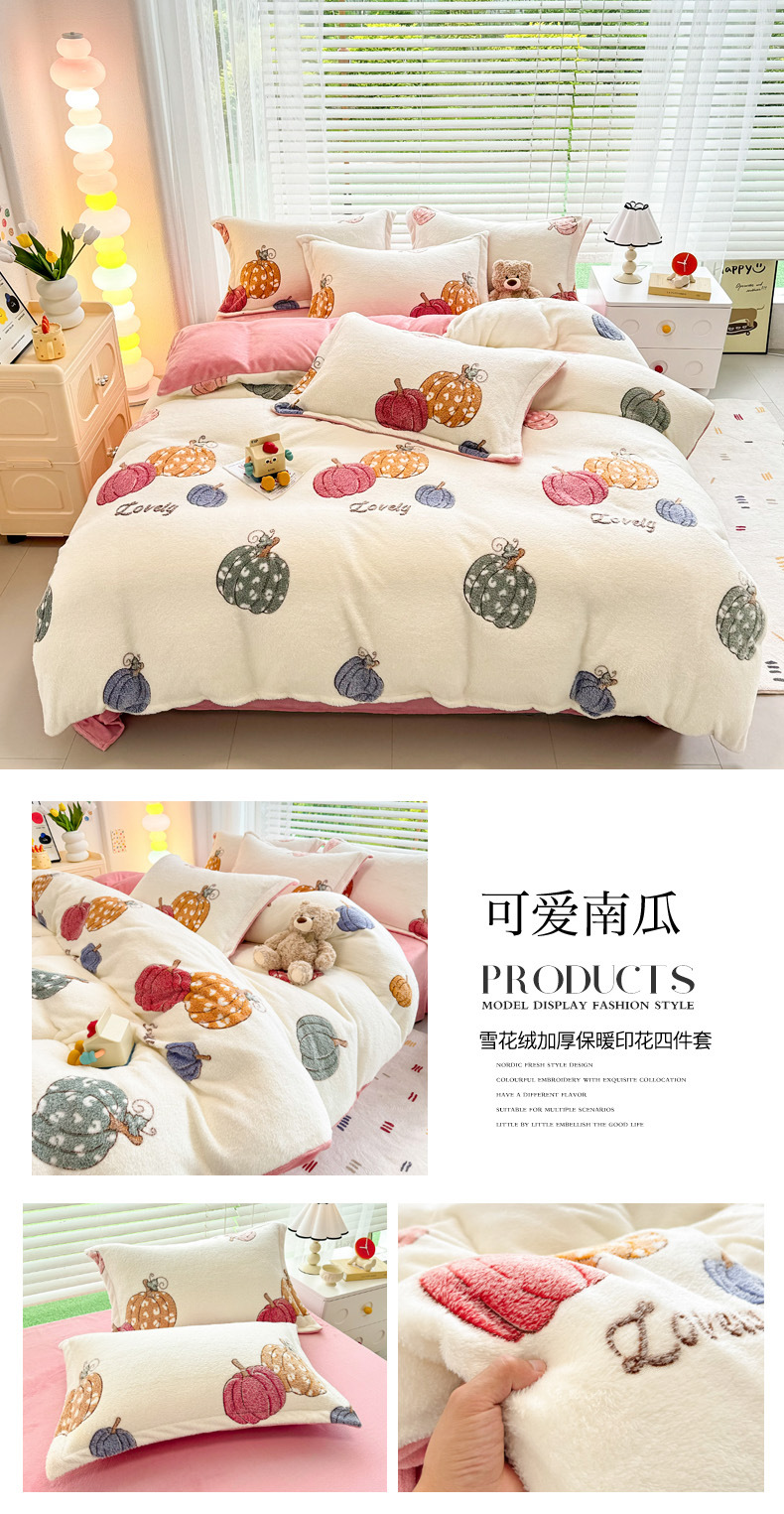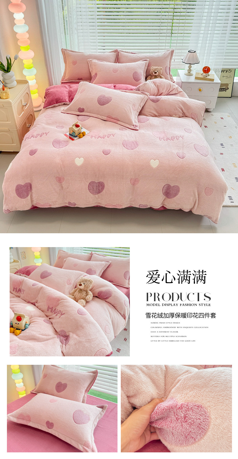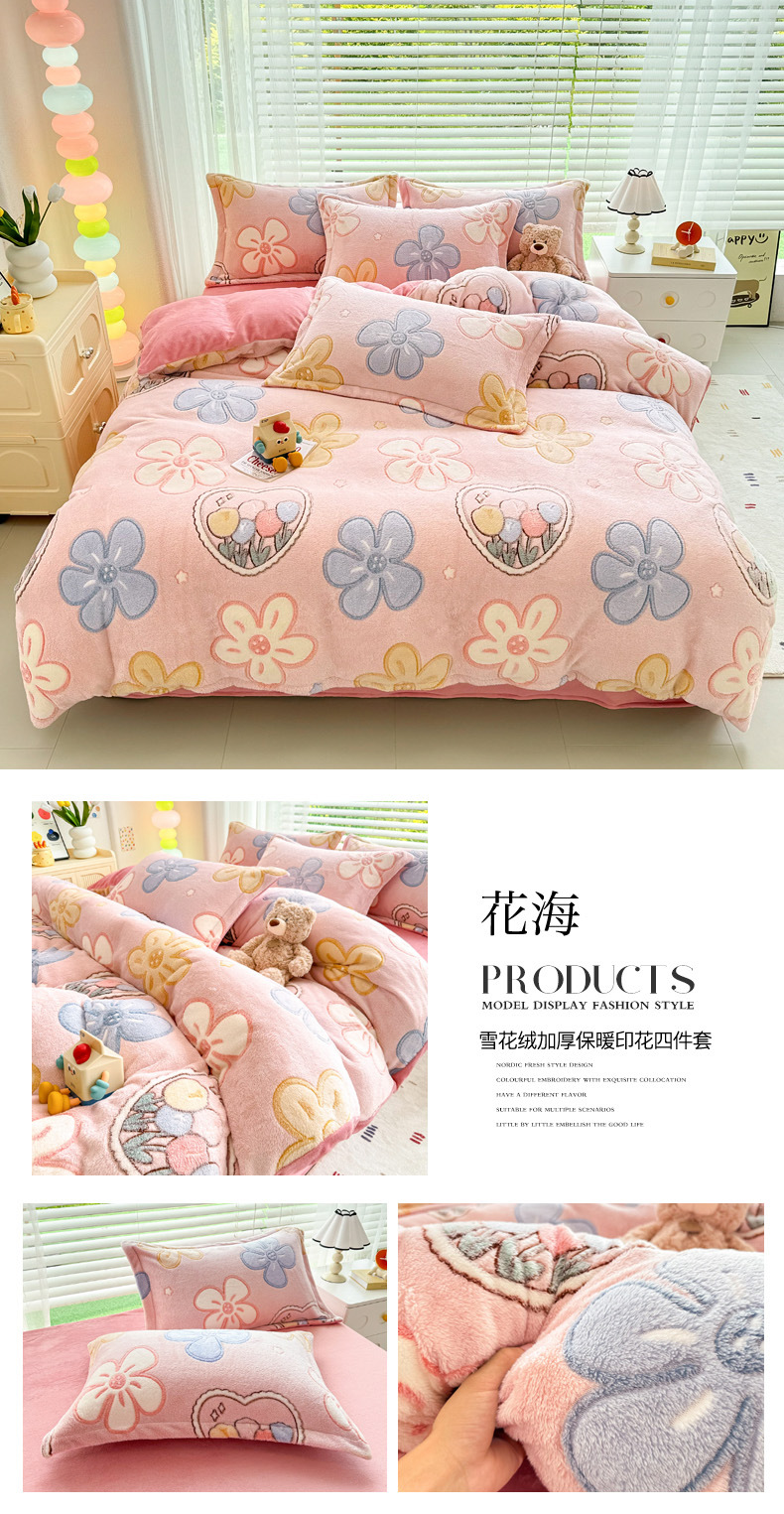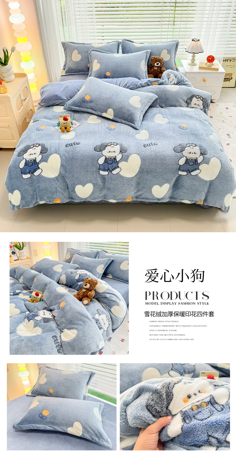 2024 새로운 눈송이 벨벳 인쇄 두꺼운 따뜻한 4 피스 세트스토어 가기