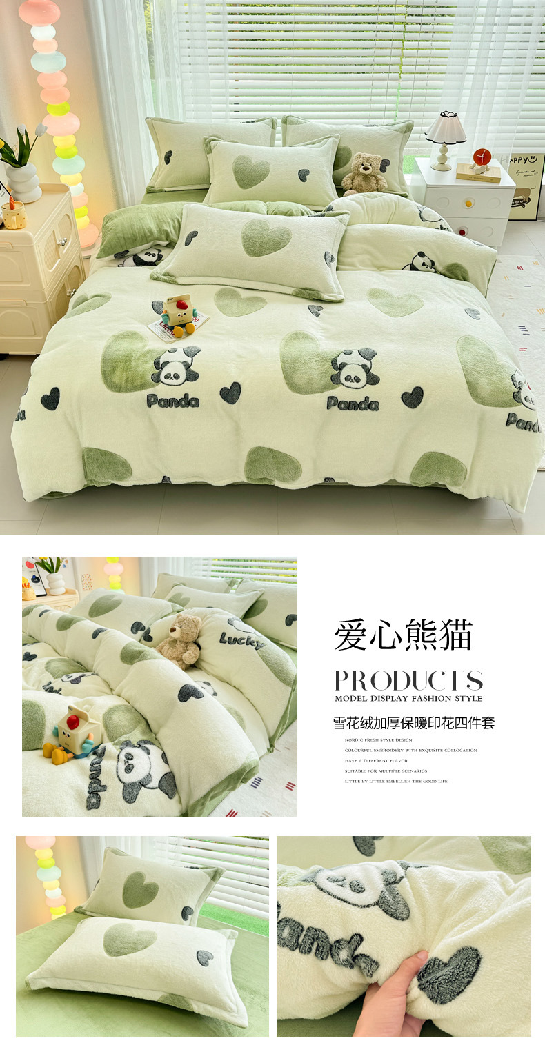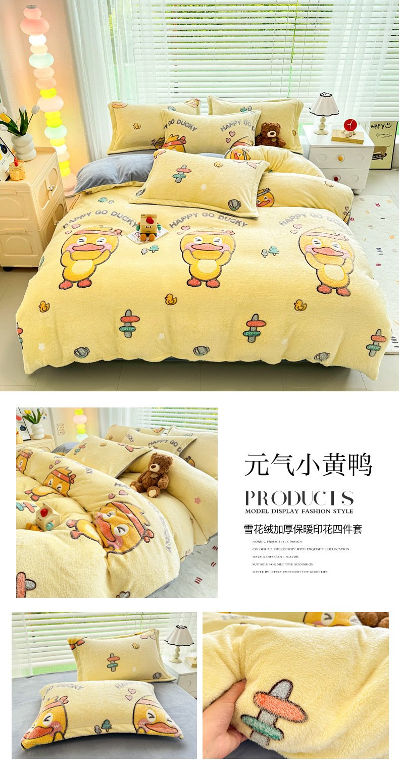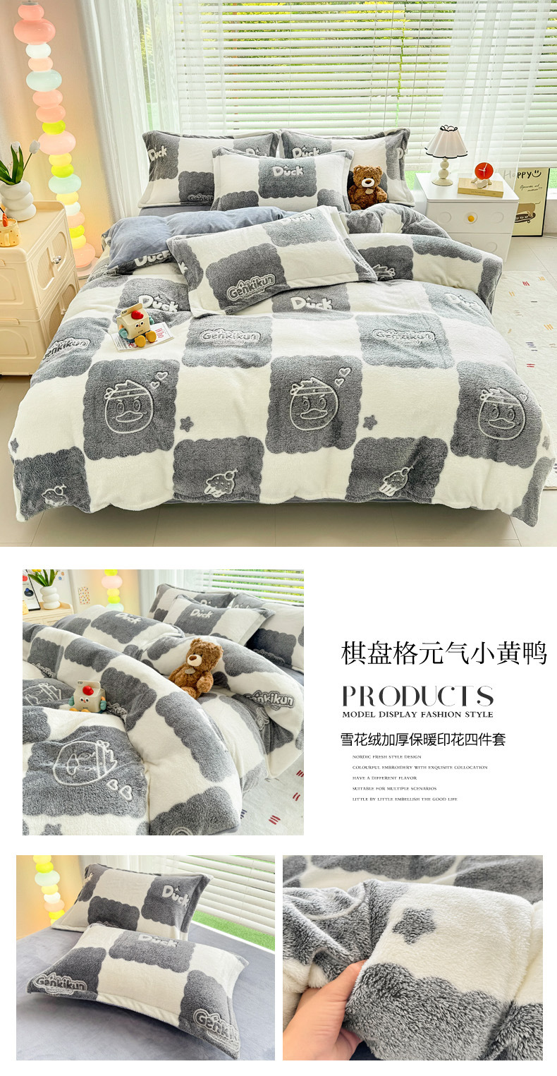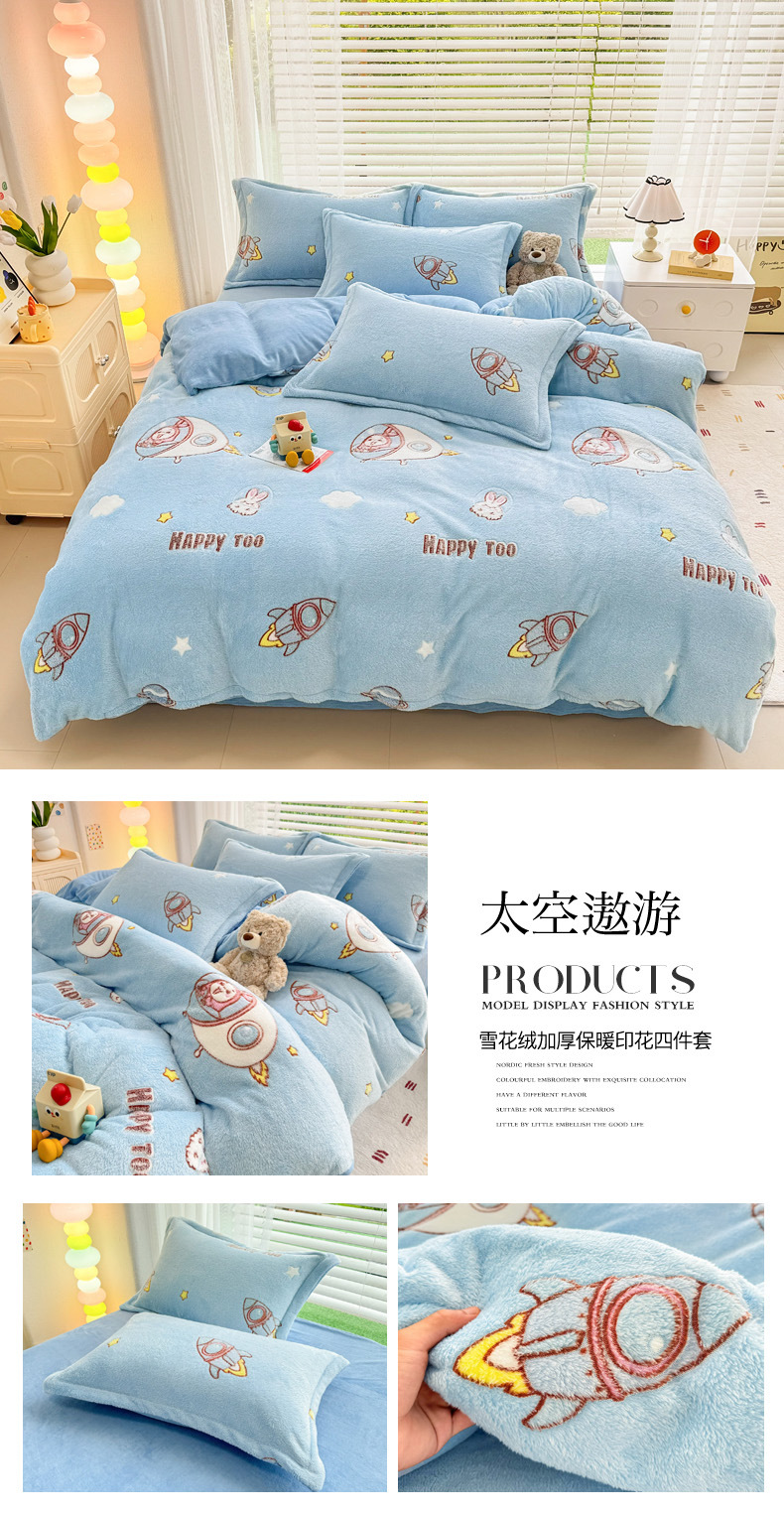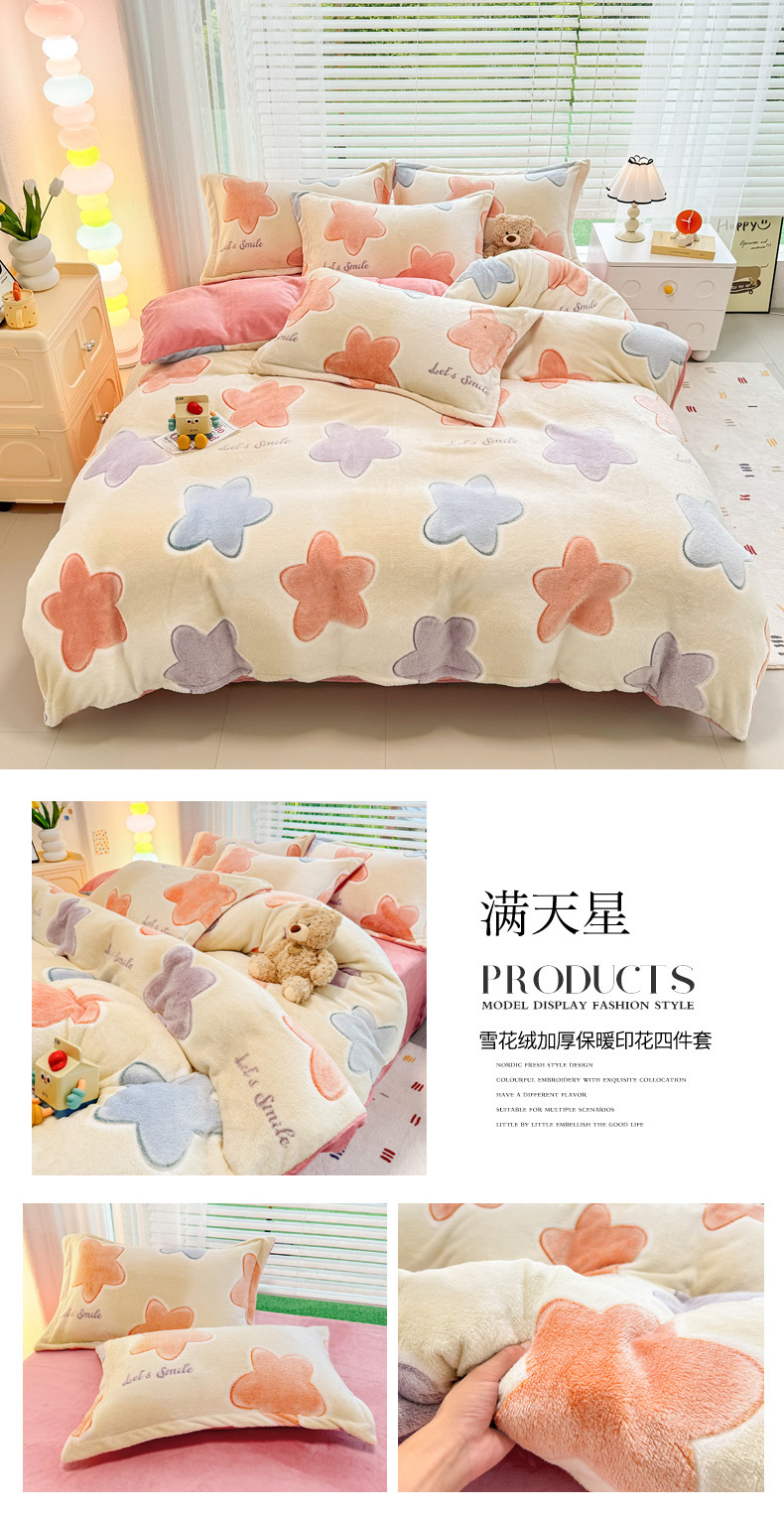2024 새로운 눈송이 벨벳 인쇄 두꺼운 따뜻한 4 피스 세트스토어 가기