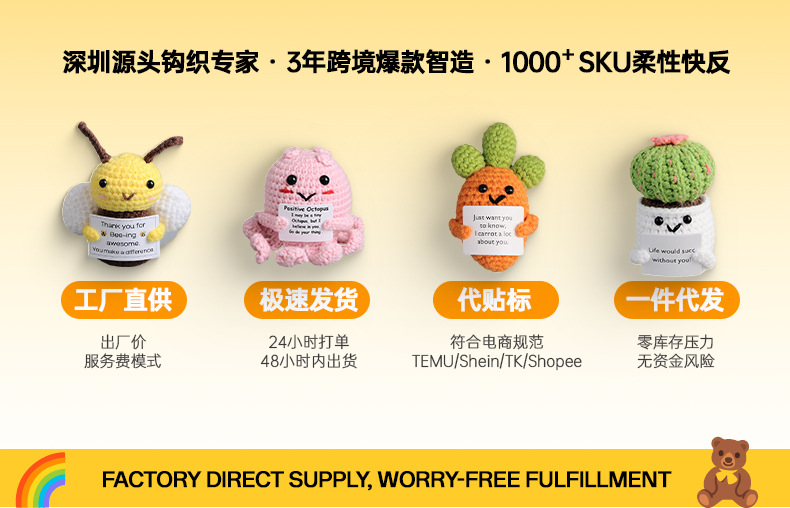 손뜨개 인형 완제품, 레몬, 오이, 재미있는 표정, 당근 뜨개질 장식품, 뜨개질 장식 도매스토어 가기