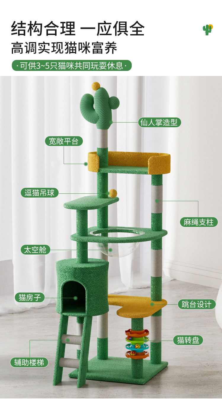 녹색 선인장 고양이 등반 랙 고양이 쓰레기 고양이 등반 랙 통합 공간 캡슐 사이버 기념 고양이 랙 큰 고양이 랙