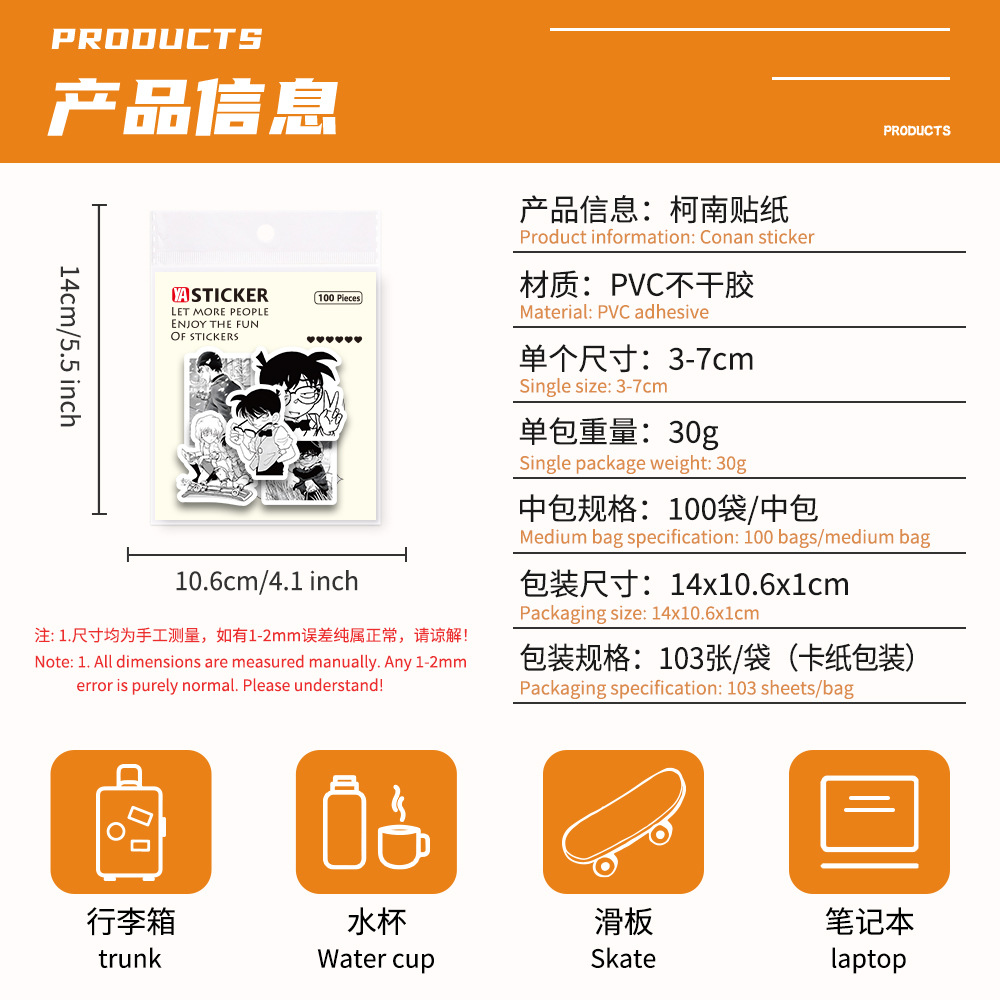 100 형사 코난 스티커 Kudou Shinichi 잘 생긴 장식 노트북 헬멧 손 계정 DIY 스티커 도매