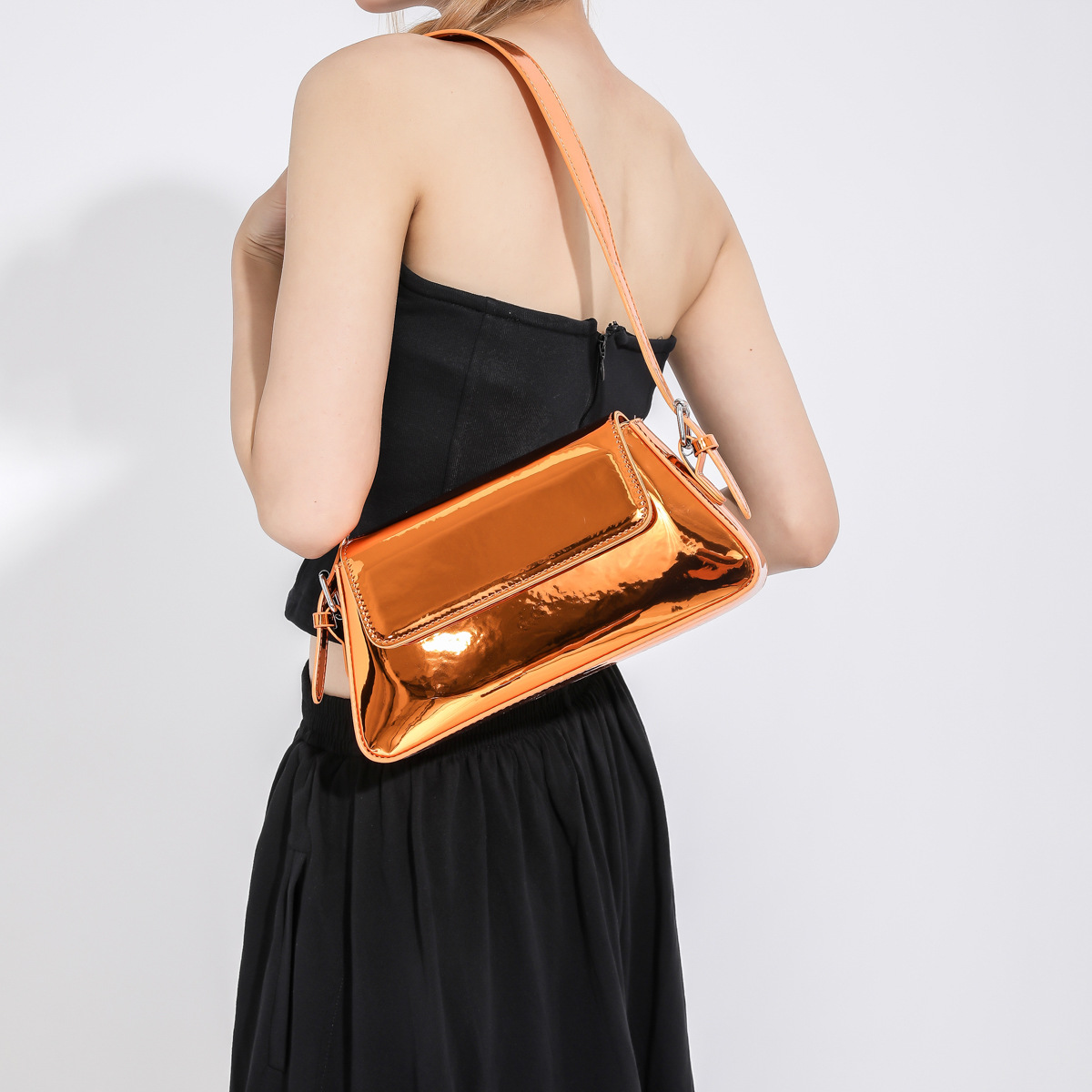 크로스보더 신상 가방, 여성용 패션 페이턴트 가죽 바게트백, 광택감 있는 고급스러운 느낌의 숄더백