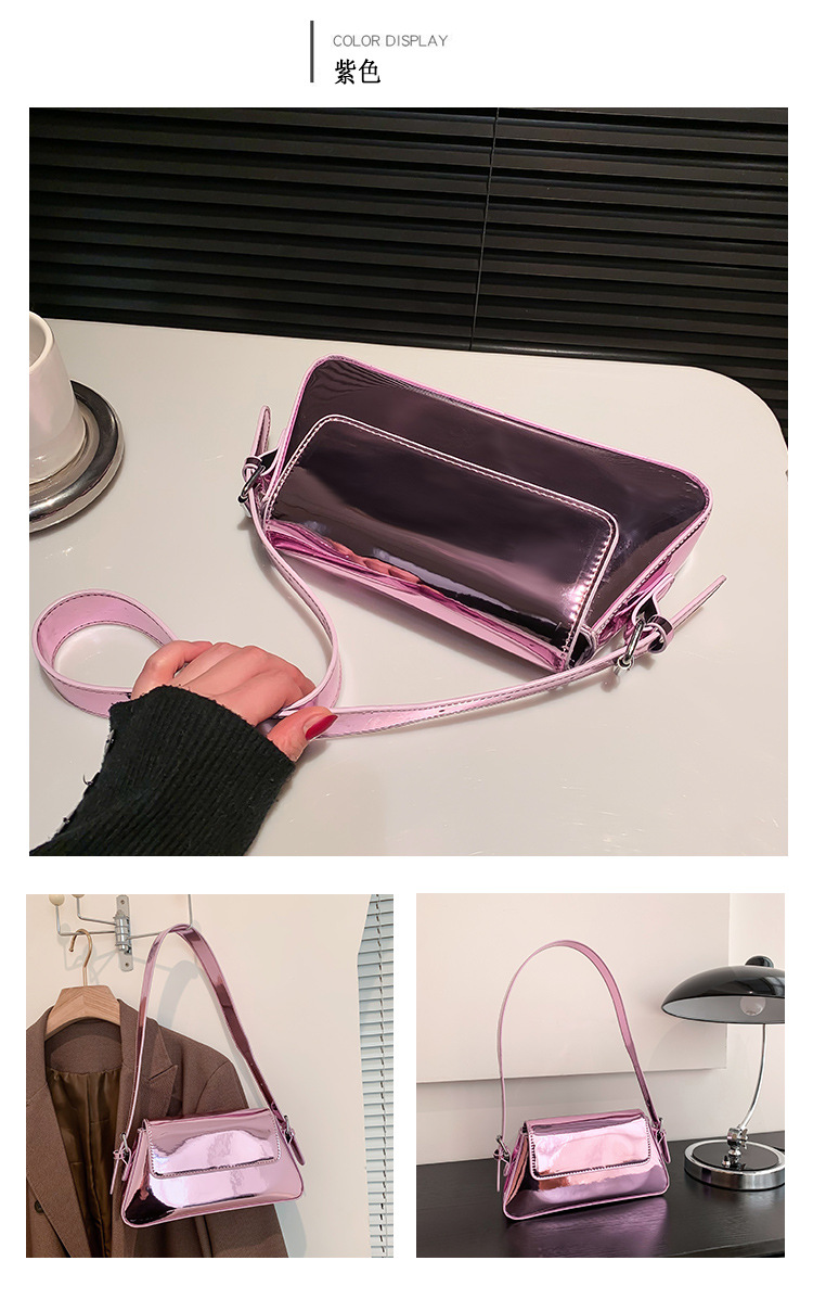 크로스보더 신상 가방, 여성용 패션 페이턴트 가죽 바게트백, 광택감 있는 고급스러운 느낌의 숄더백스토어 가기