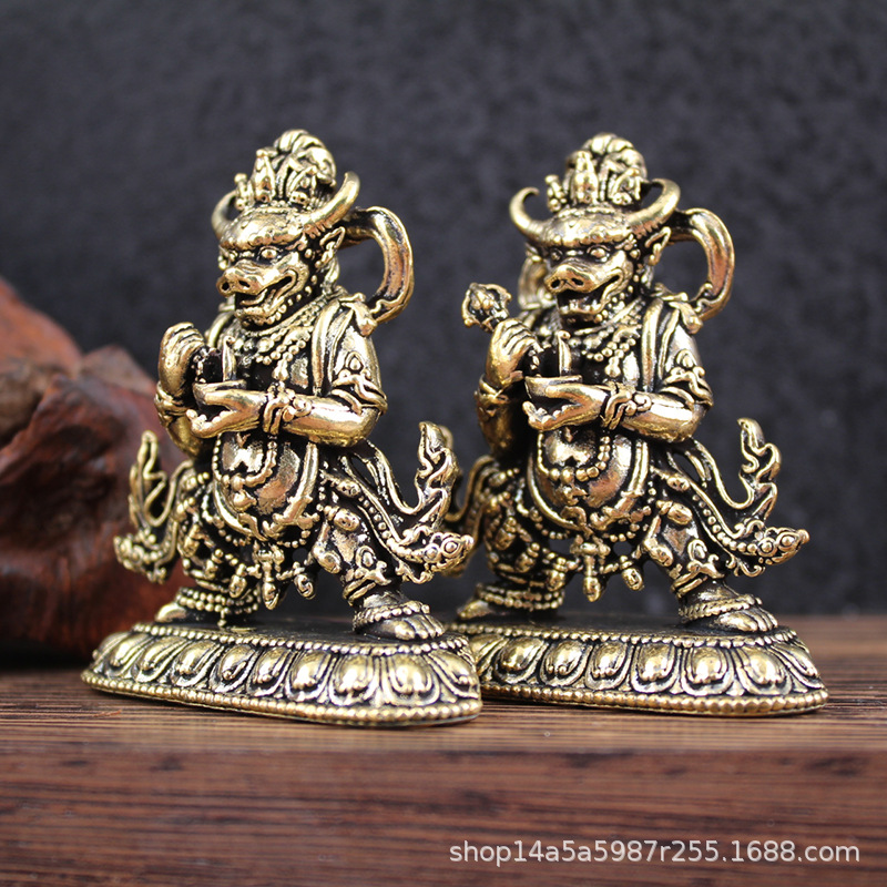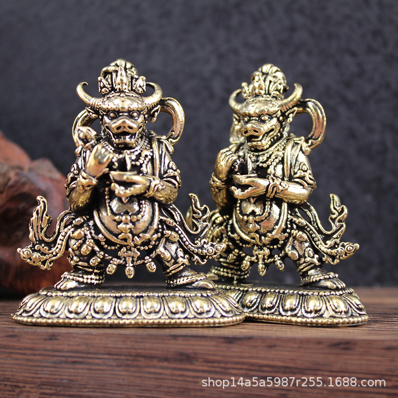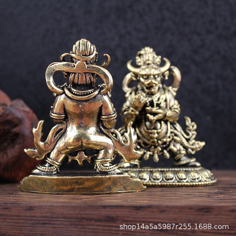 부처님 골동품 청동 황소 왕 장식품 데스크탑 장식 미니 빈티지 황동 작은 부처님 동상 장식 배치 기원스토어 가기