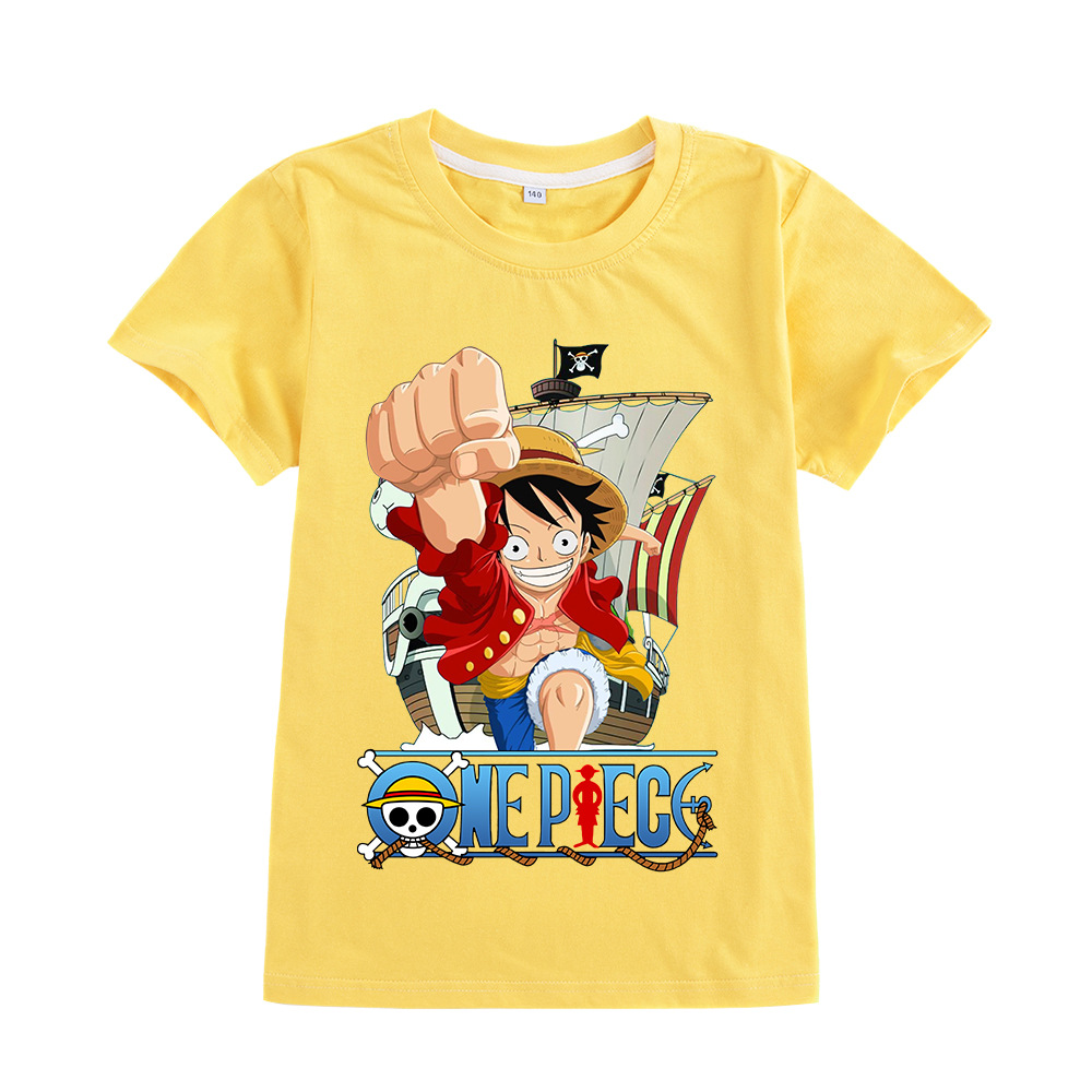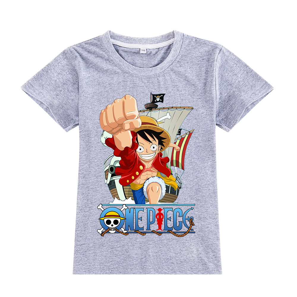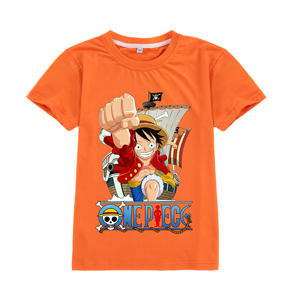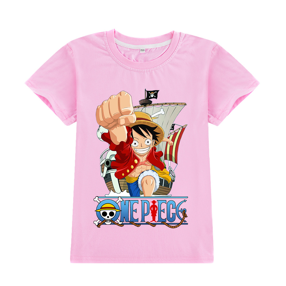 한 조각 남자와 여자 아이들의 짧은 소매 티셔츠 어린이 만화 인쇄 탑 A905스토어 가기