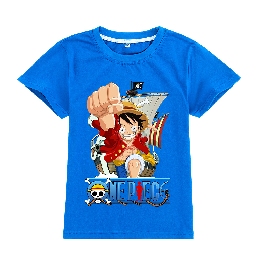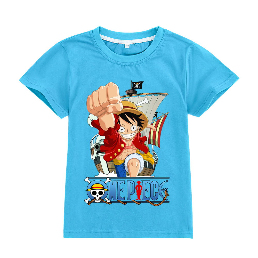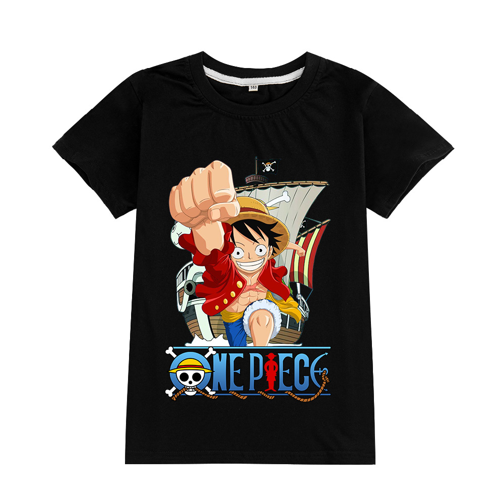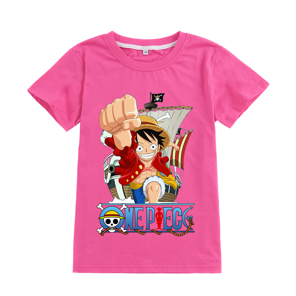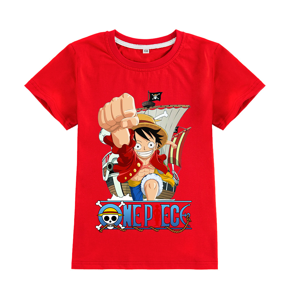 한 조각 남자와 여자 아이들의 짧은 소매 티셔츠 어린이 만화 인쇄 탑 A905스토어 가기