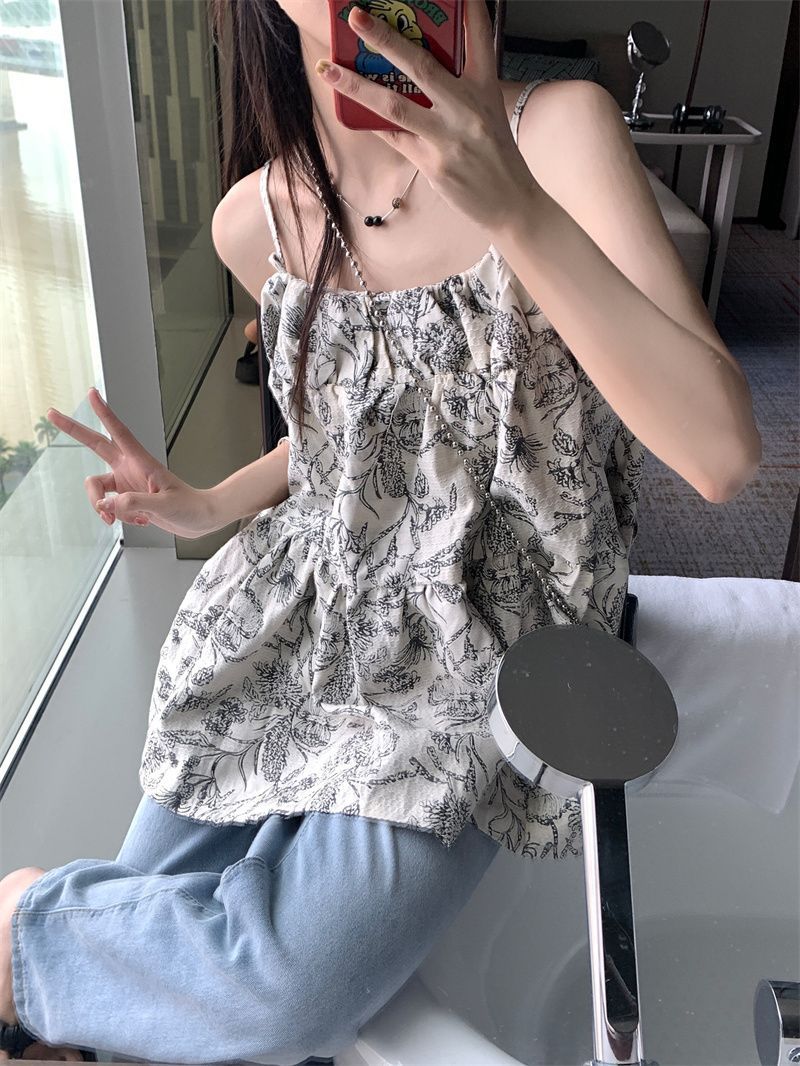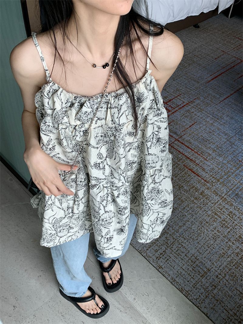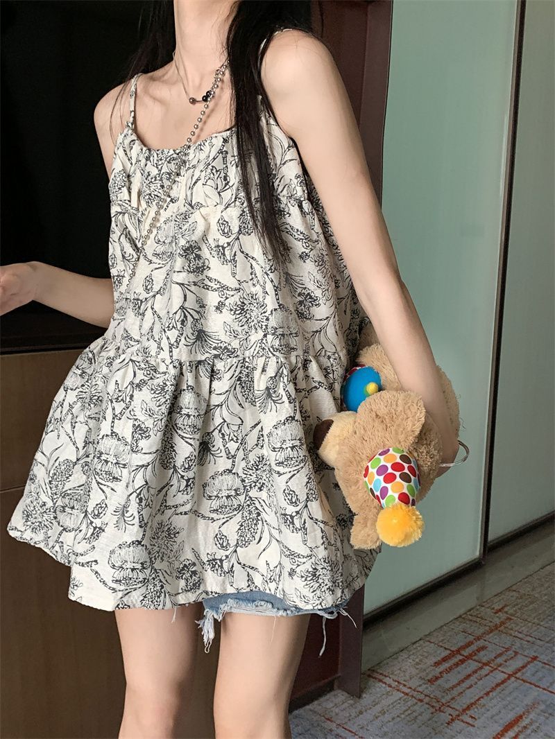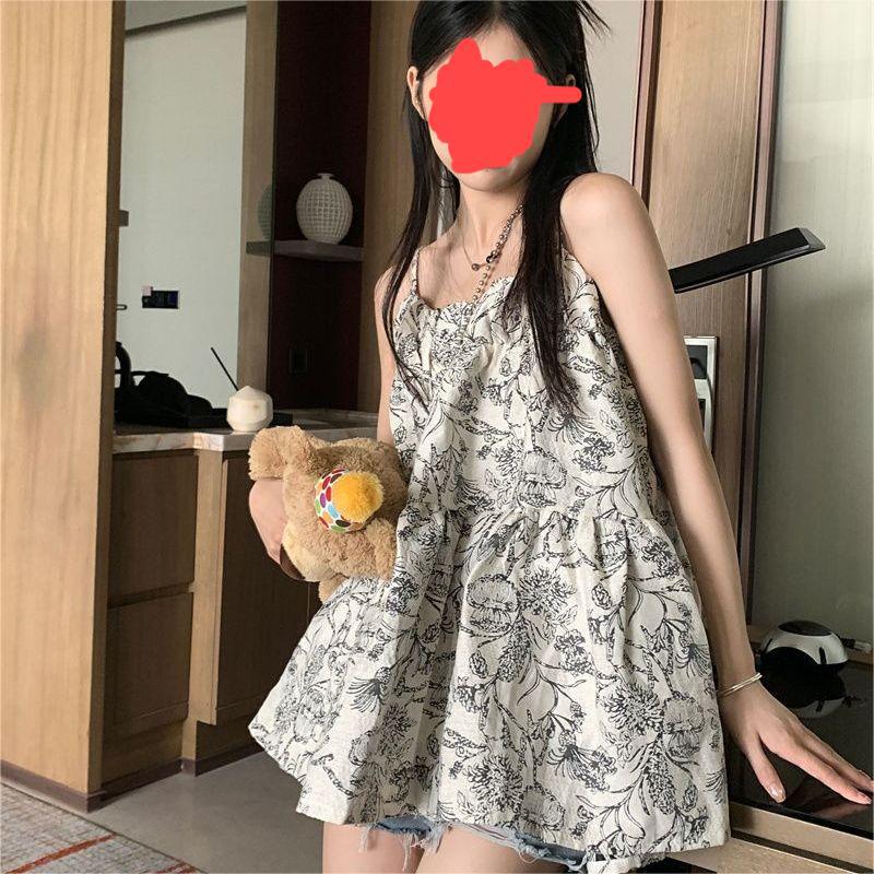 휴가 스타일 캐주얼 슬립 스커트 여성의 2024 여름 새로운 스타일 게으른 슬리밍 느슨한 얽히고 설킨 원피스 꽃스토어 가기