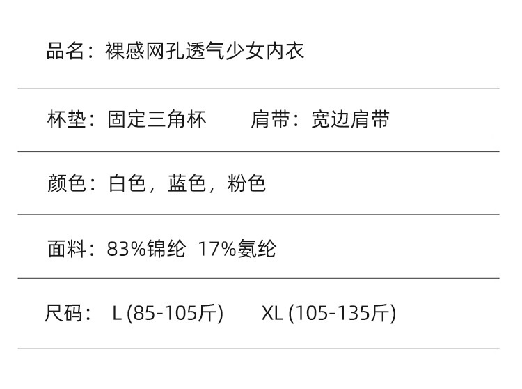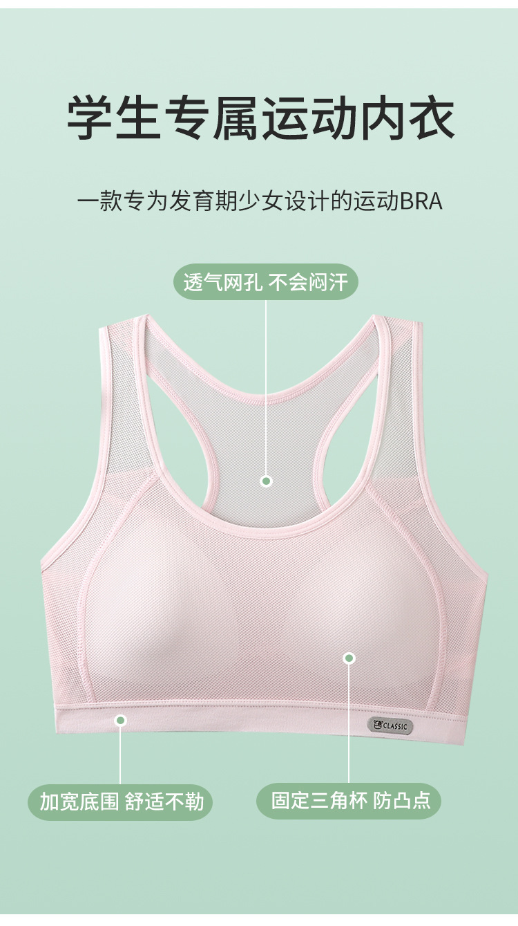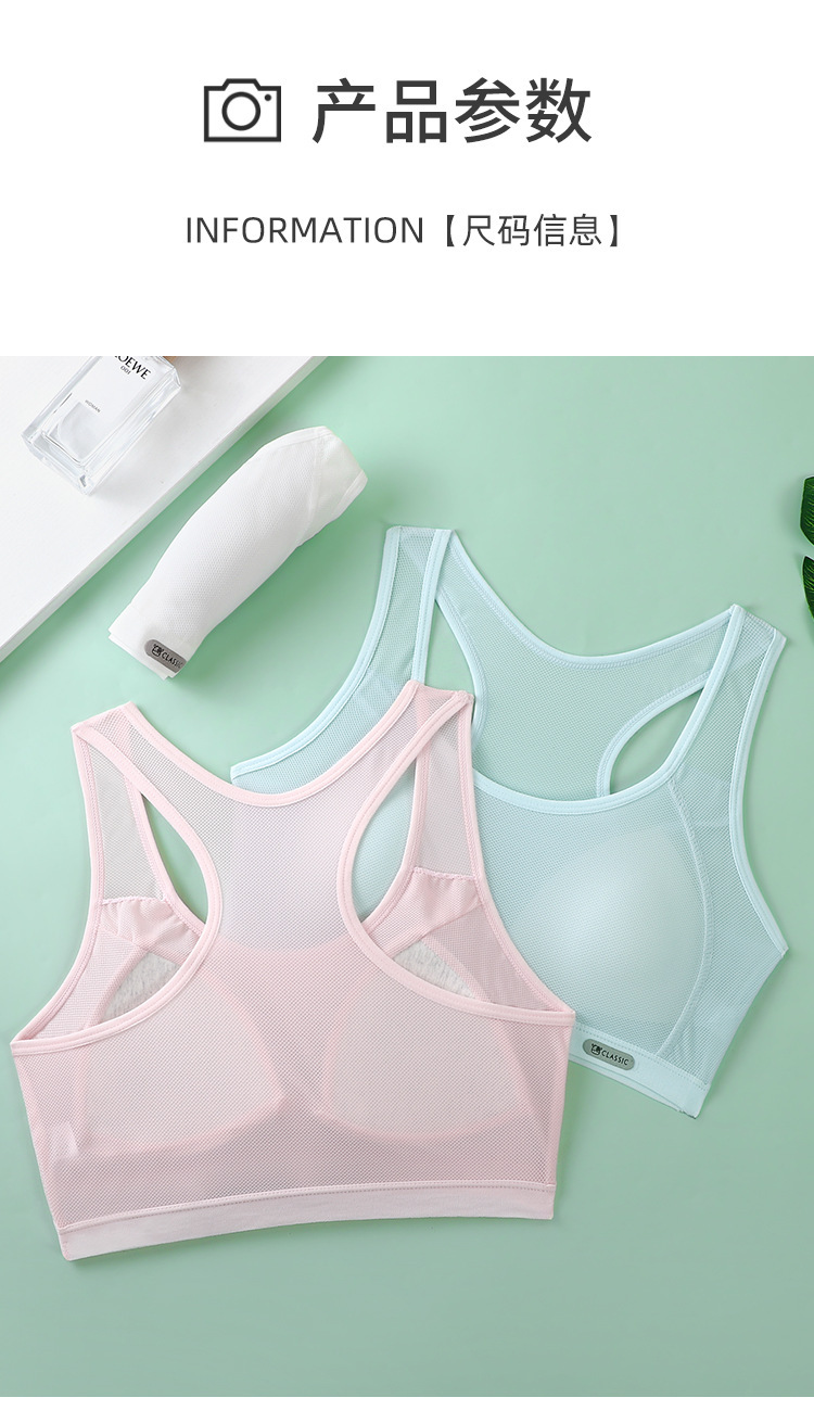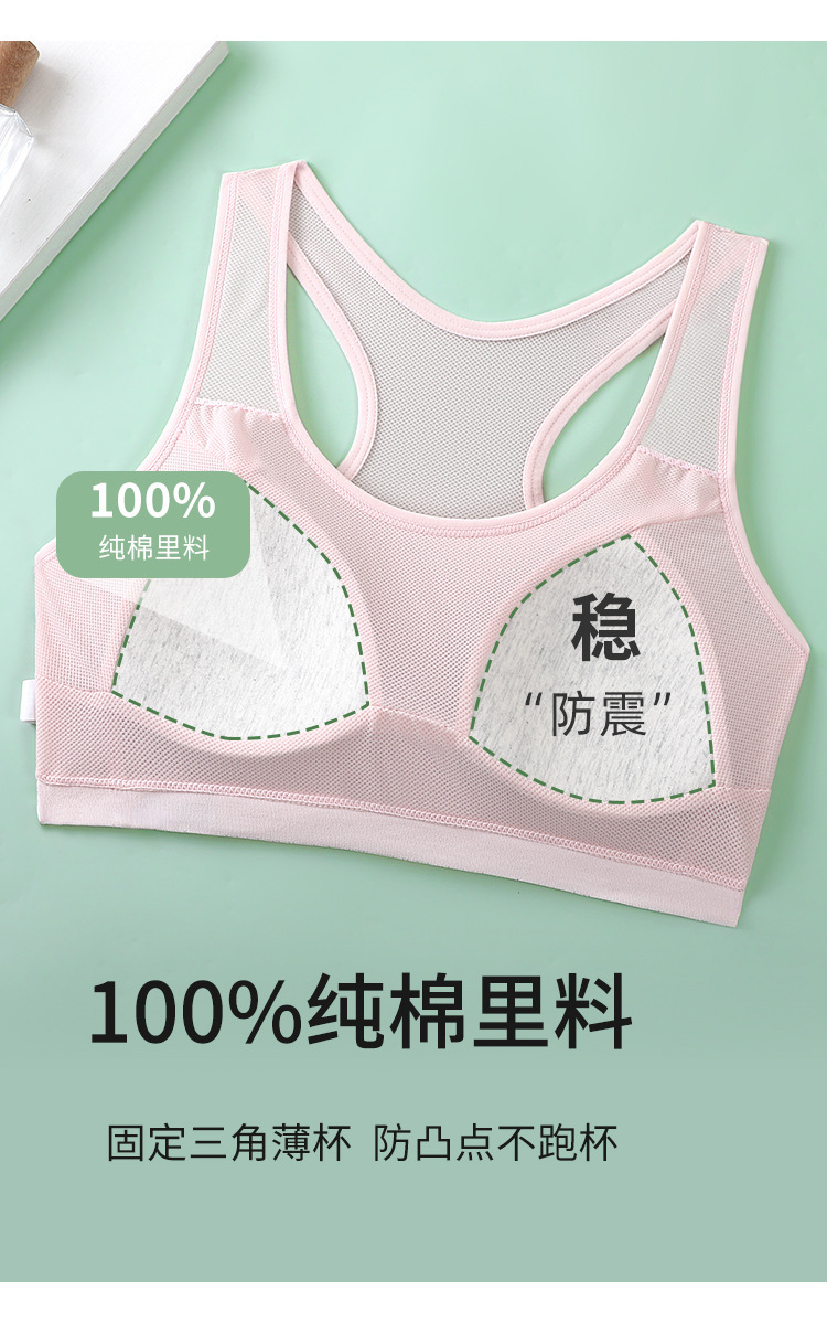 여자 브라 포장 유방 안티 범프 중학교 학생 발달 학생을위한 미국 조끼 스타일 속옷 고정 컵