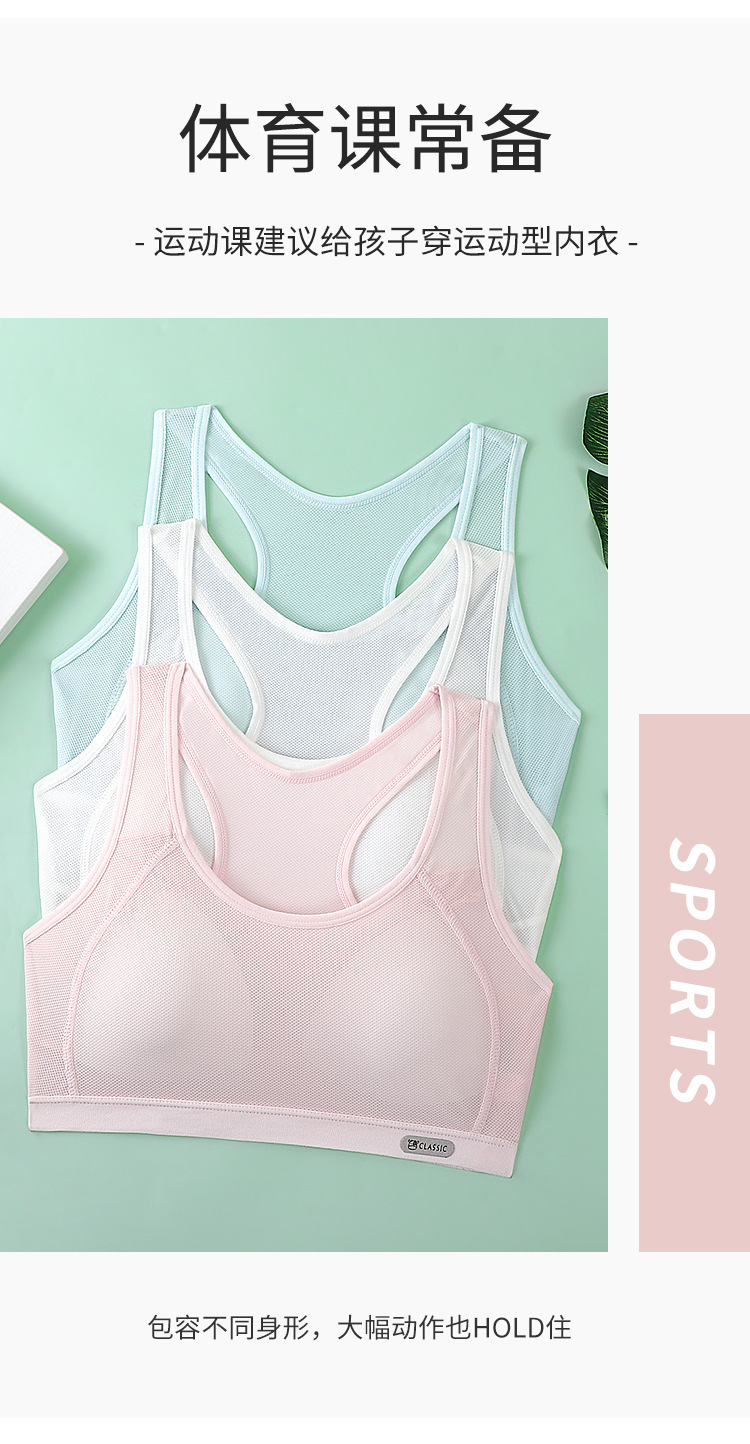 여자 브라 포장 유방 안티 범프 중학교 학생 발달 학생을위한 미국 조끼 스타일 속옷 고정 컵스토어 가기