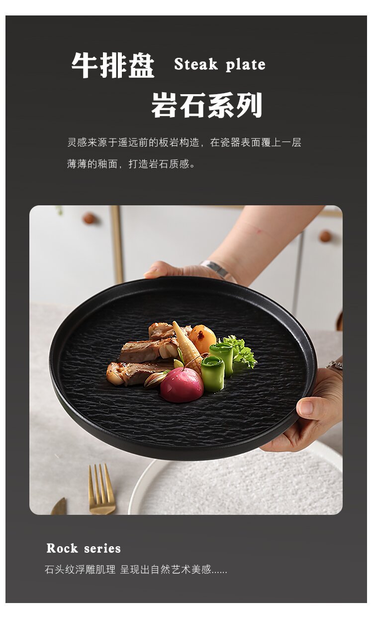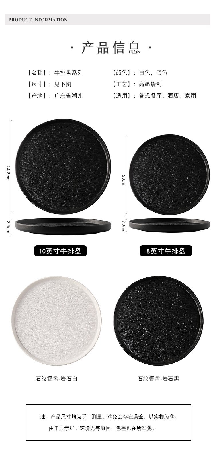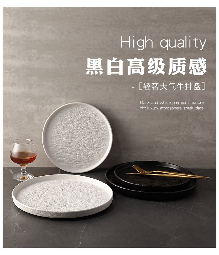 록 패턴 라운드 스테이크 플레이트 서양 푸드 플레이트 일본 스타일 간단한 흑백 세라믹 레스토랑 식기 고급 감각 도매