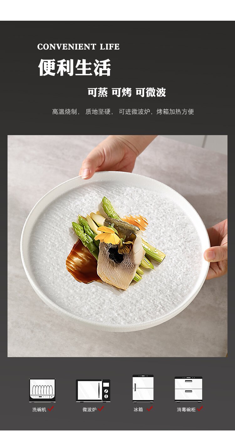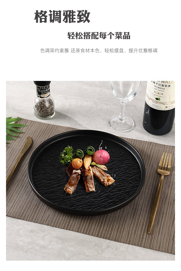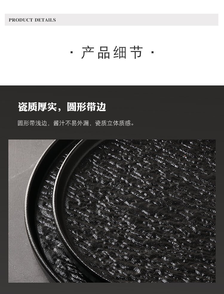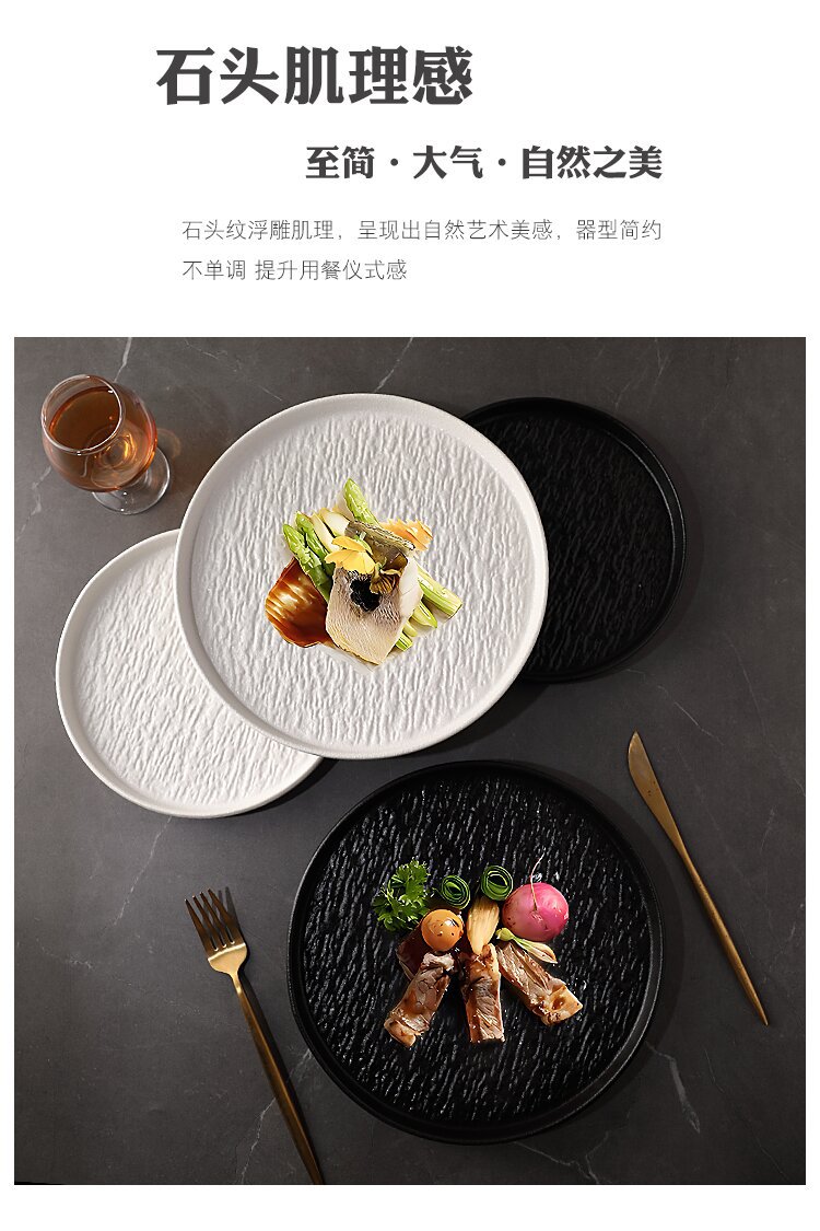록 패턴 라운드 스테이크 플레이트 서양 푸드 플레이트 일본 스타일 간단한 흑백 세라믹 레스토랑 식기 고급 감각 도매