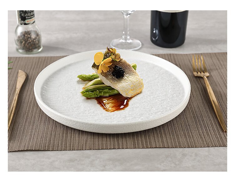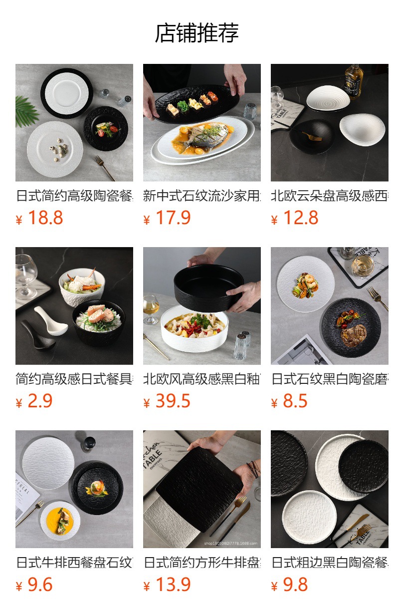 록 패턴 라운드 스테이크 플레이트 서양 푸드 플레이트 일본 스타일 간단한 흑백 세라믹 레스토랑 식기 고급 감각 도매스토어 가기