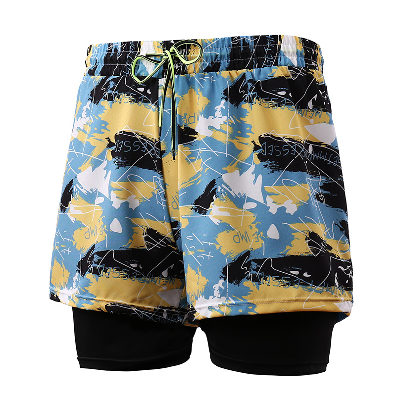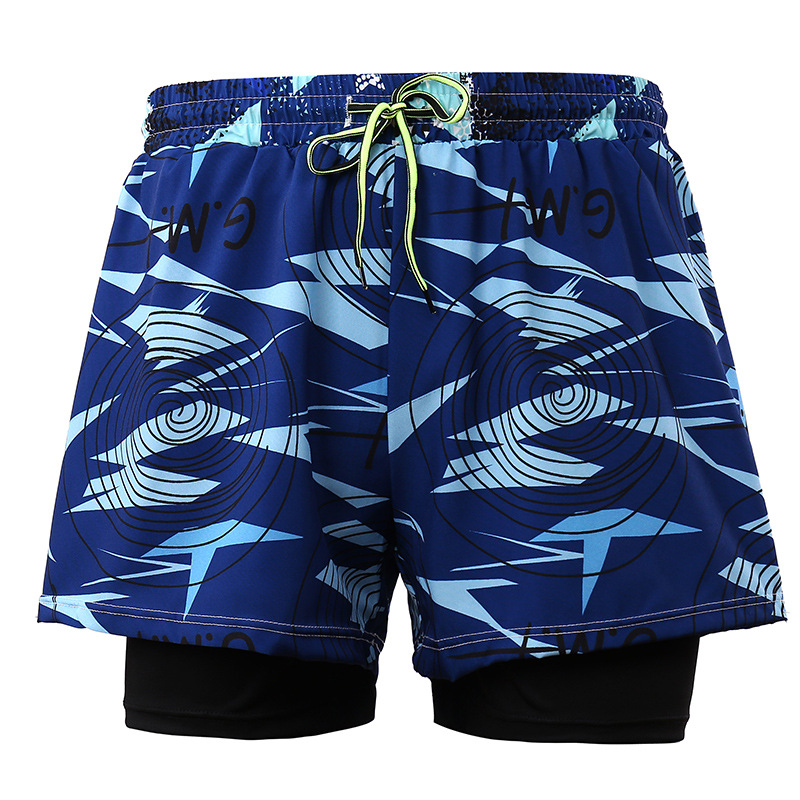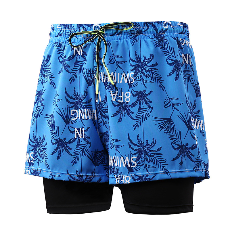 남자 더블 레이어 수영 트렁크 복서 성인 빠른 건조 방황 수영 트렁크 비치 바지 온천 수영 장비 세트