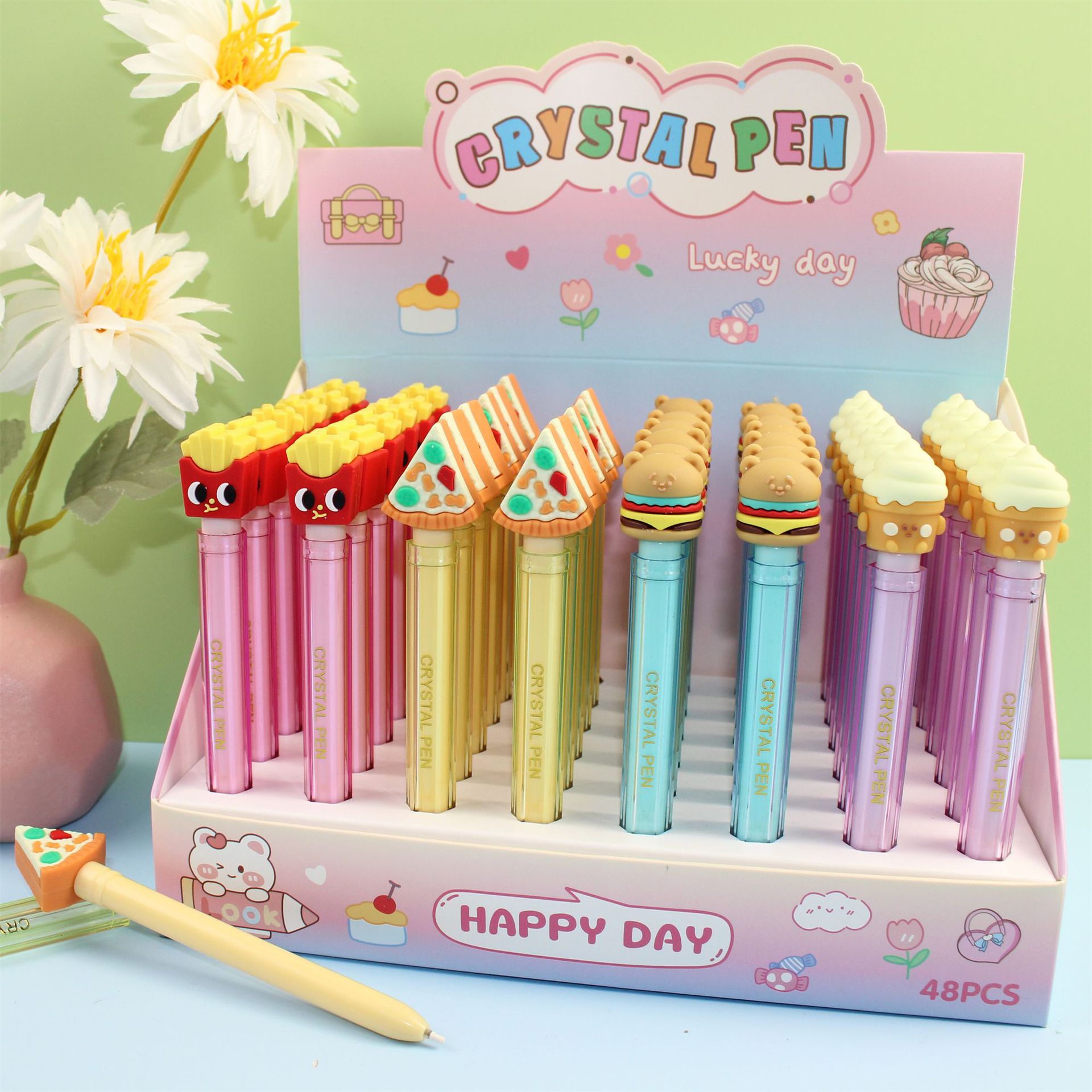 창조적 인 프랑스 프라이 피자 슈퍼 귀여운 공룡 부드러운 고무 헤드 인터넷 인기있는 사무실 서명 펜 일본 여자 친구 크리스탈 젤 펜