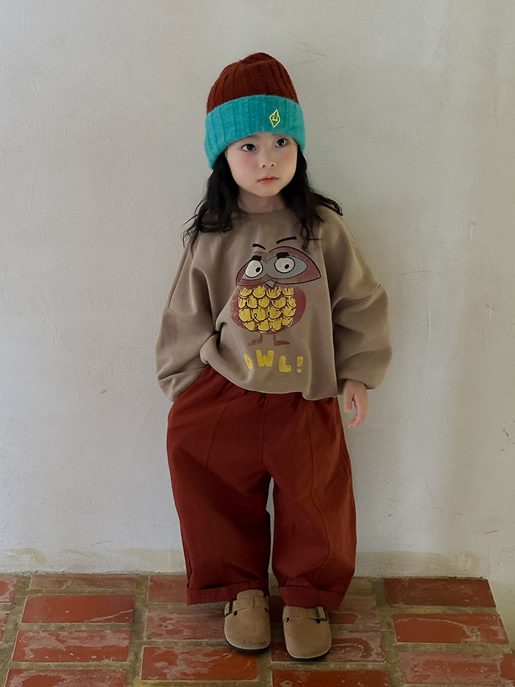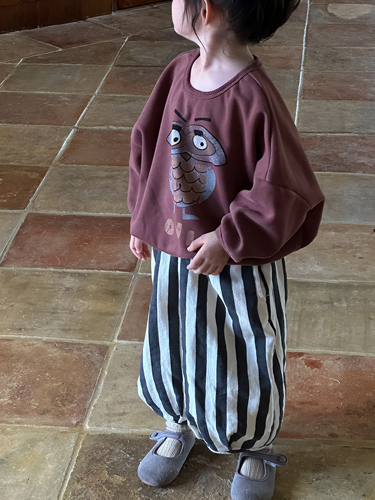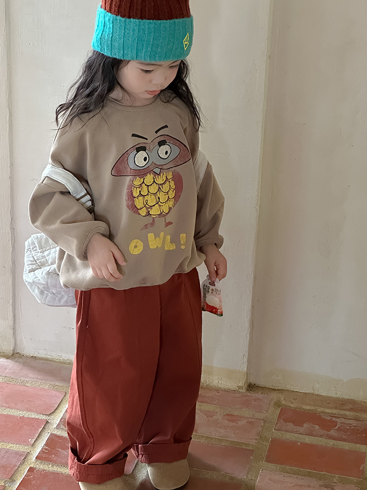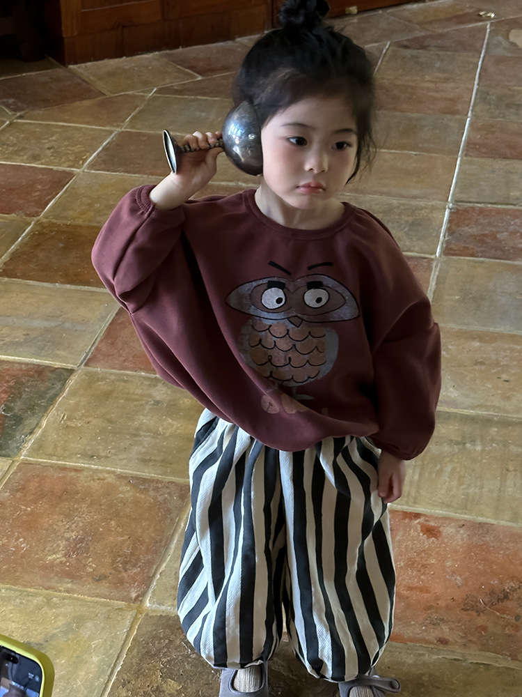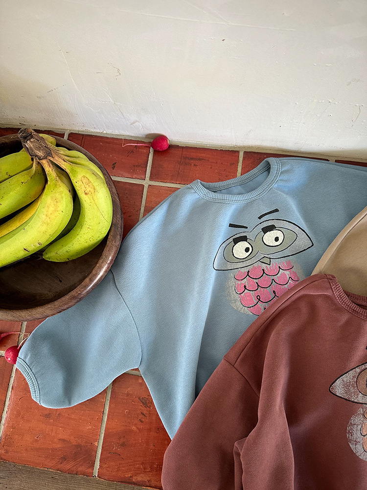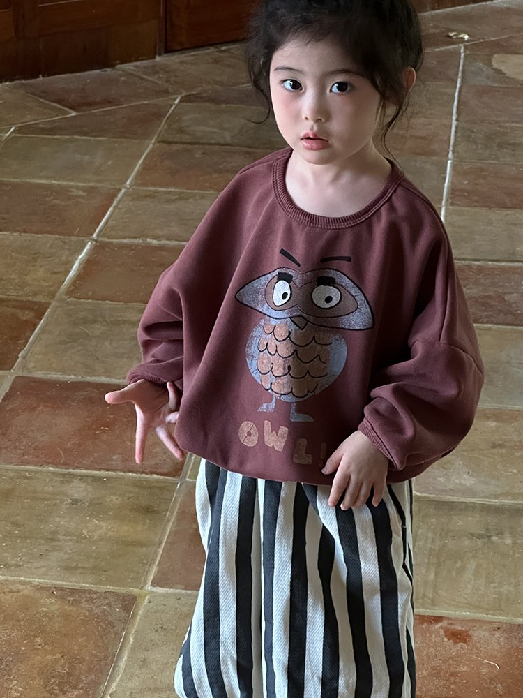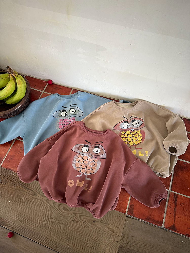 어린이 만화 프린트 스웨트 셔츠 2024 가을 새로운 한국 스타일 올빼미 프린트 라운드 넥 긴팔 스웨트 셔츠 소년과 소녀를위한스토어 가기