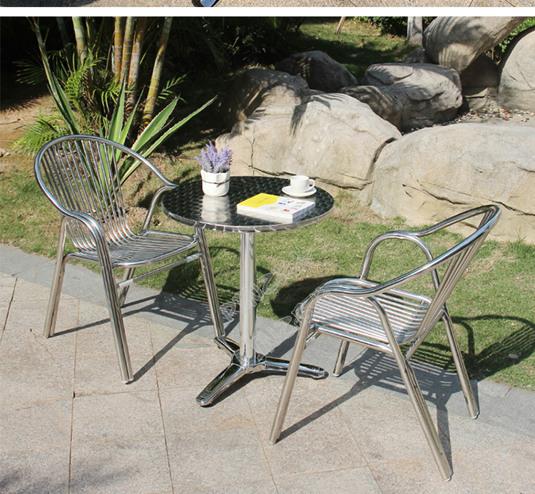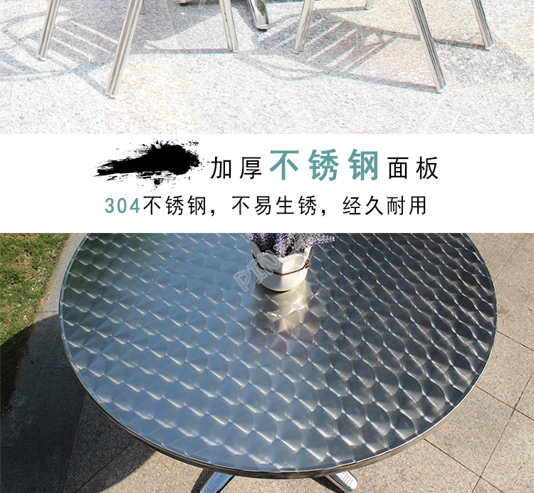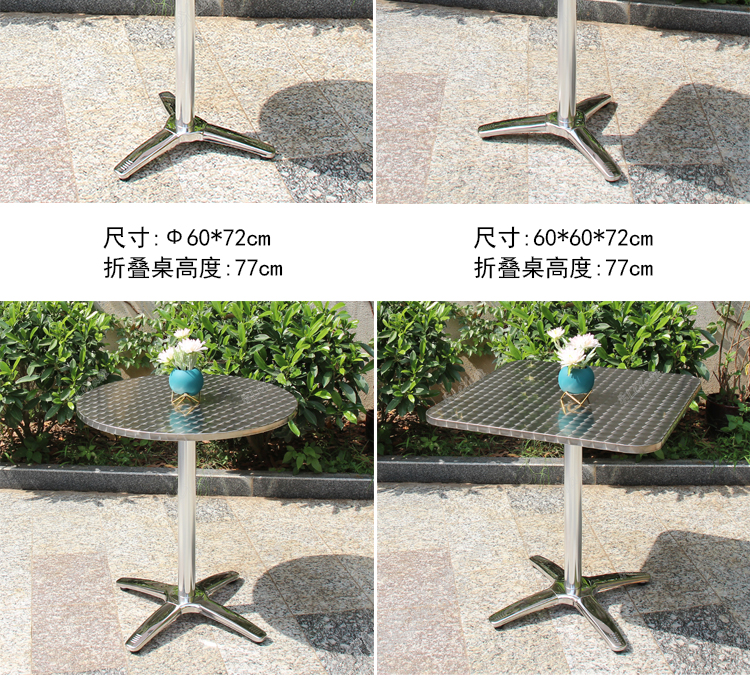 밀크 티 샵 스테인레스 스틸 다이닝 테이블 카페 산업 스타일 테이블 상업용 야외 스퀘어 테이블 발코니 접이식 작은 라운드 테이블스토어 가기