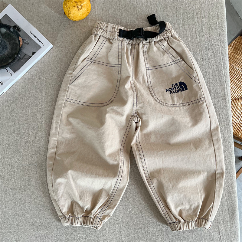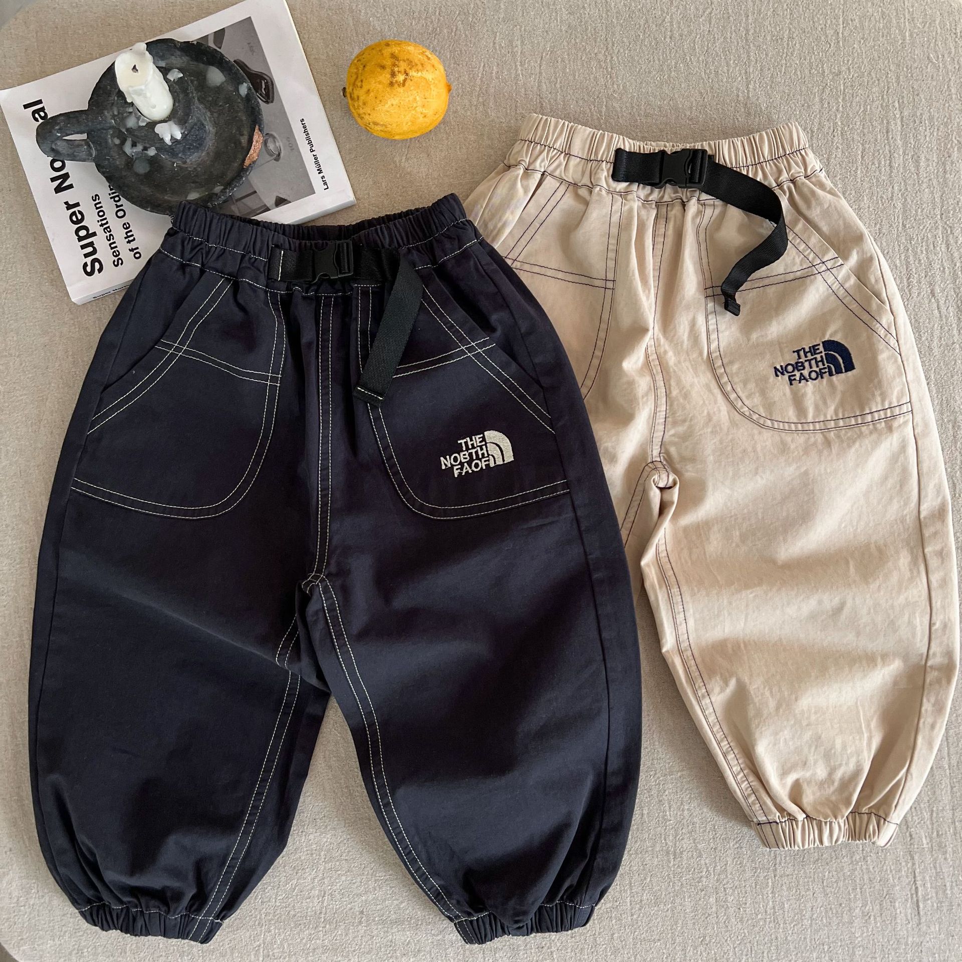 어린이 캐주얼 바지 2024 가을 한국 새 도착 소년 소녀 자수 편지 크레인 바지 아기 벨트 발목 바지