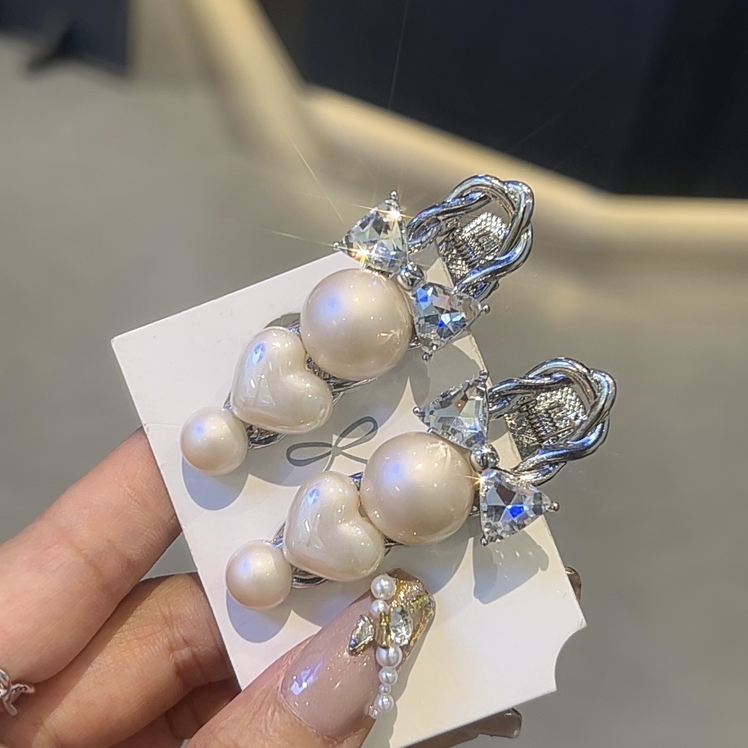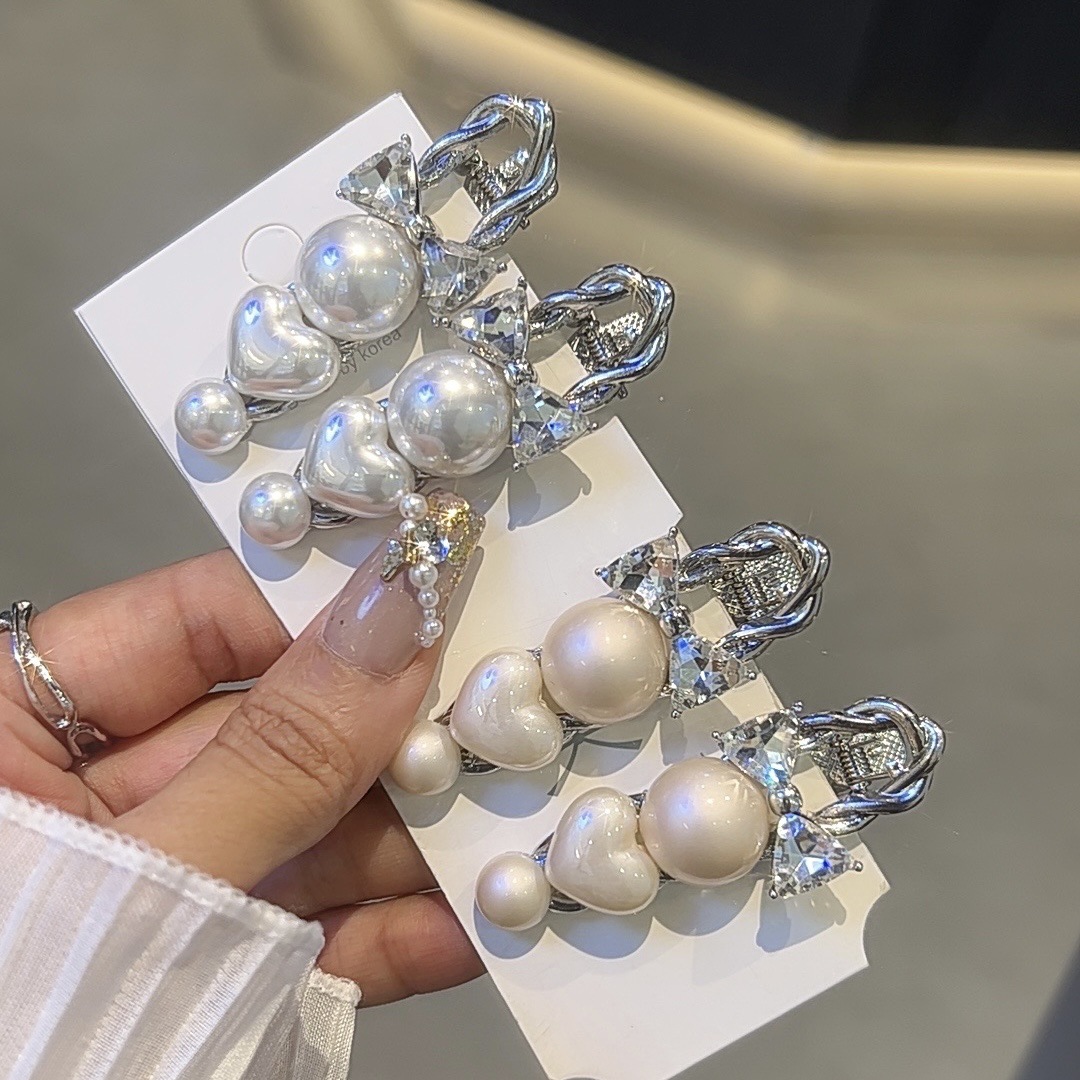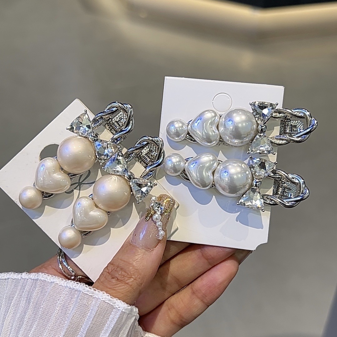 새로운 한국식 진주 활 모조 다이아몬드 사이드 클립 기질 간단한 이마 앞머리 머리핀 고급 머리핀스토어 가기