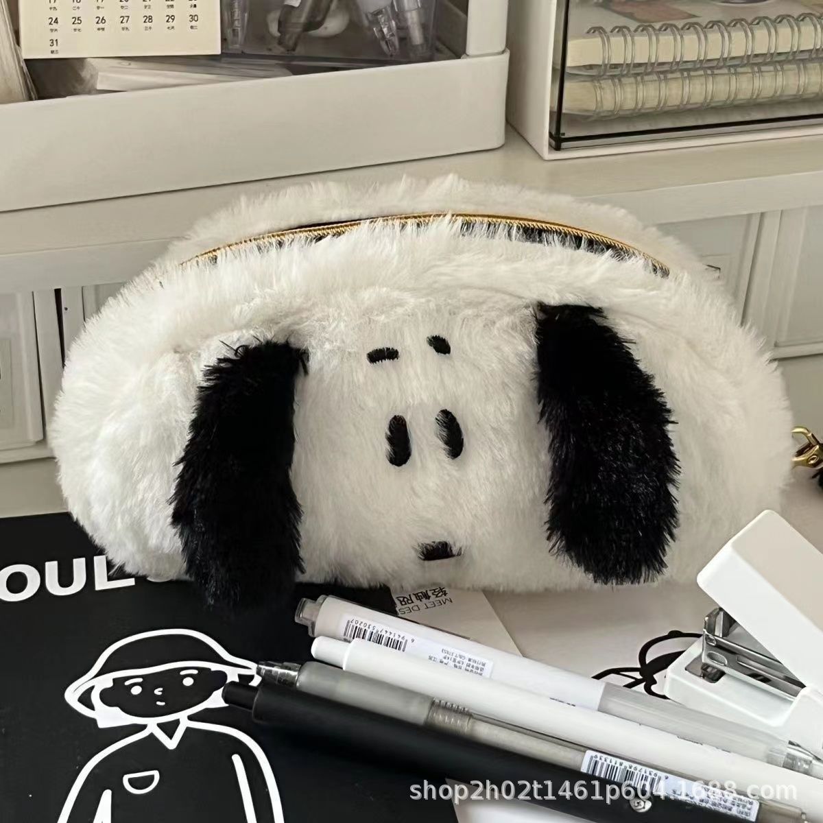 2024 새로운 귀여운 만화 스누피 봉제 연필 가방 중학생 고등학교 및 학습을위한 대용량 다기능 문구 가방스토어 가기
