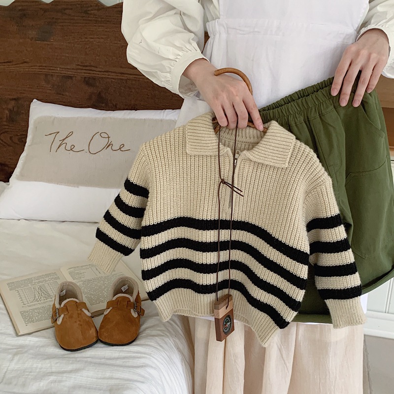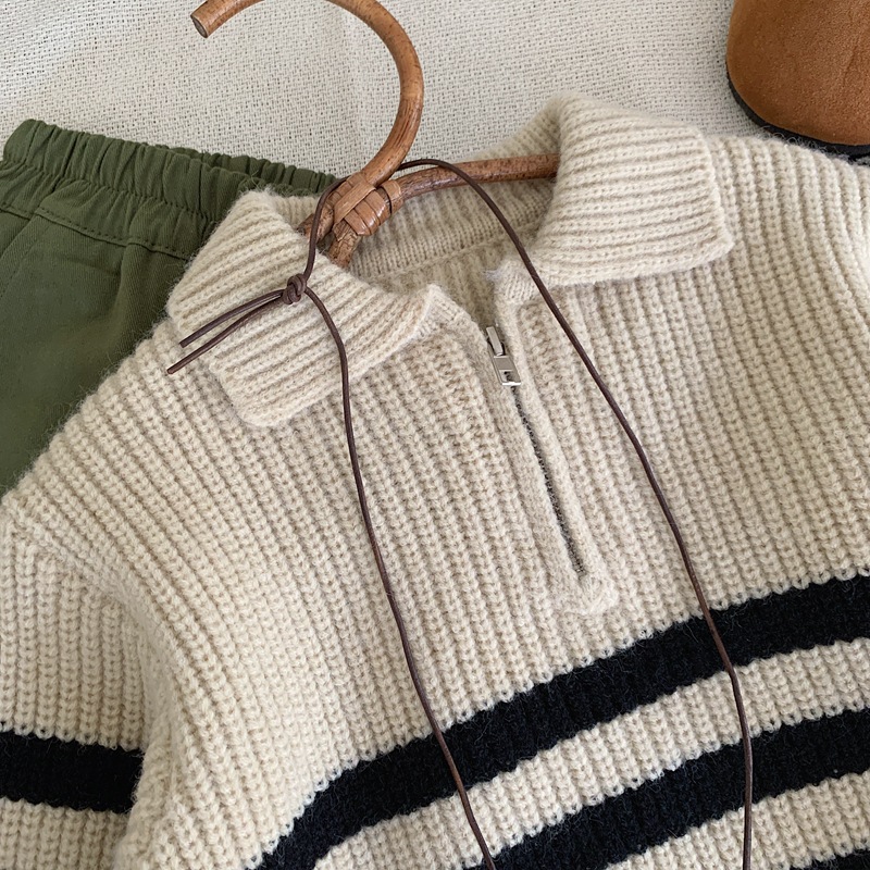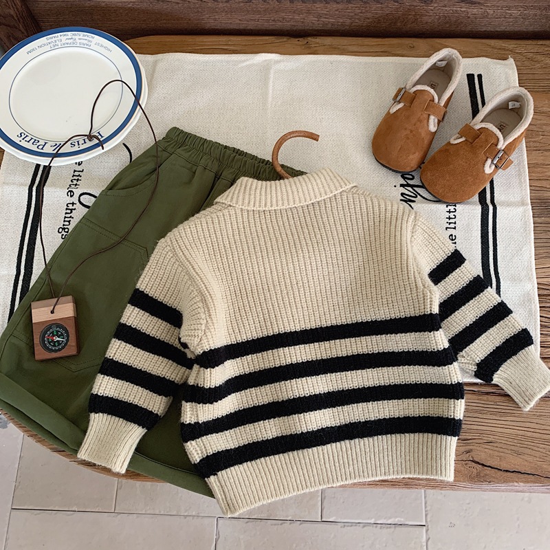 2025 소년 스웨터 풀오버 한국 스타일 가을, 겨울 의류 소년 줄무늬 스웨터 유행 어린이 스웨터 봄, 가을 유행 어린이스토어 가기