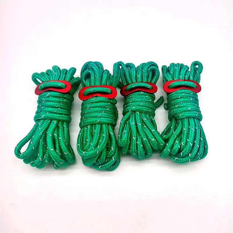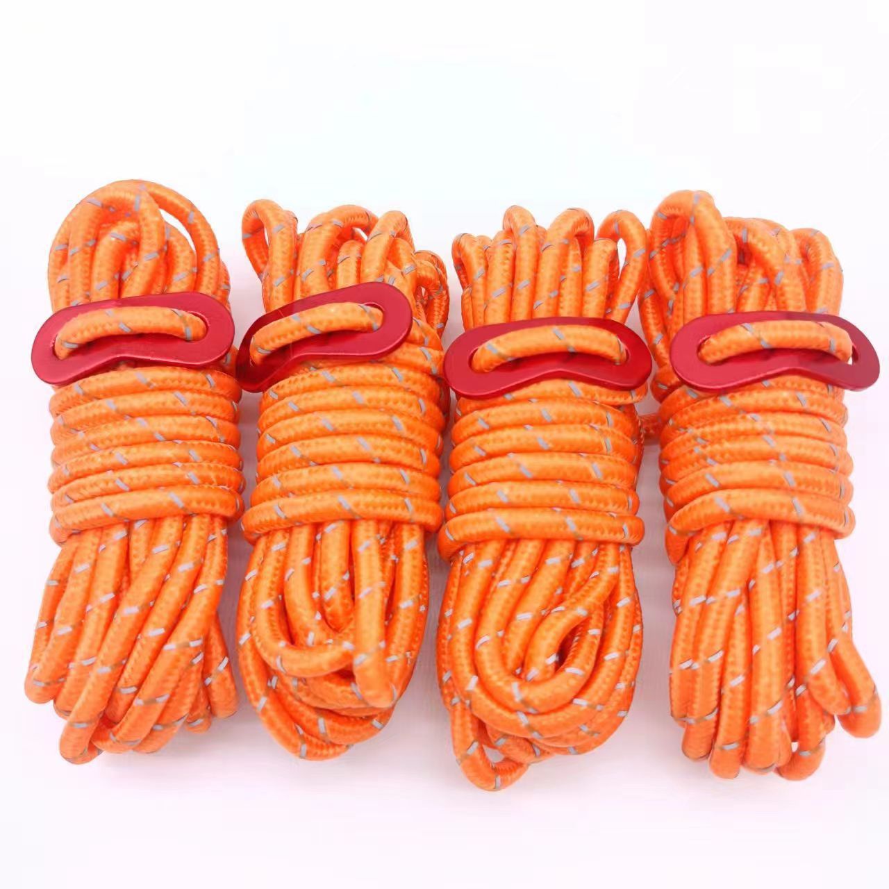 4m 길이 4mm 야외 캠핑 텐트 방풍 로프 캐노피 그라운드 네일 알루미늄 합금 버클이있는 풀 로프 발광 로프 고정