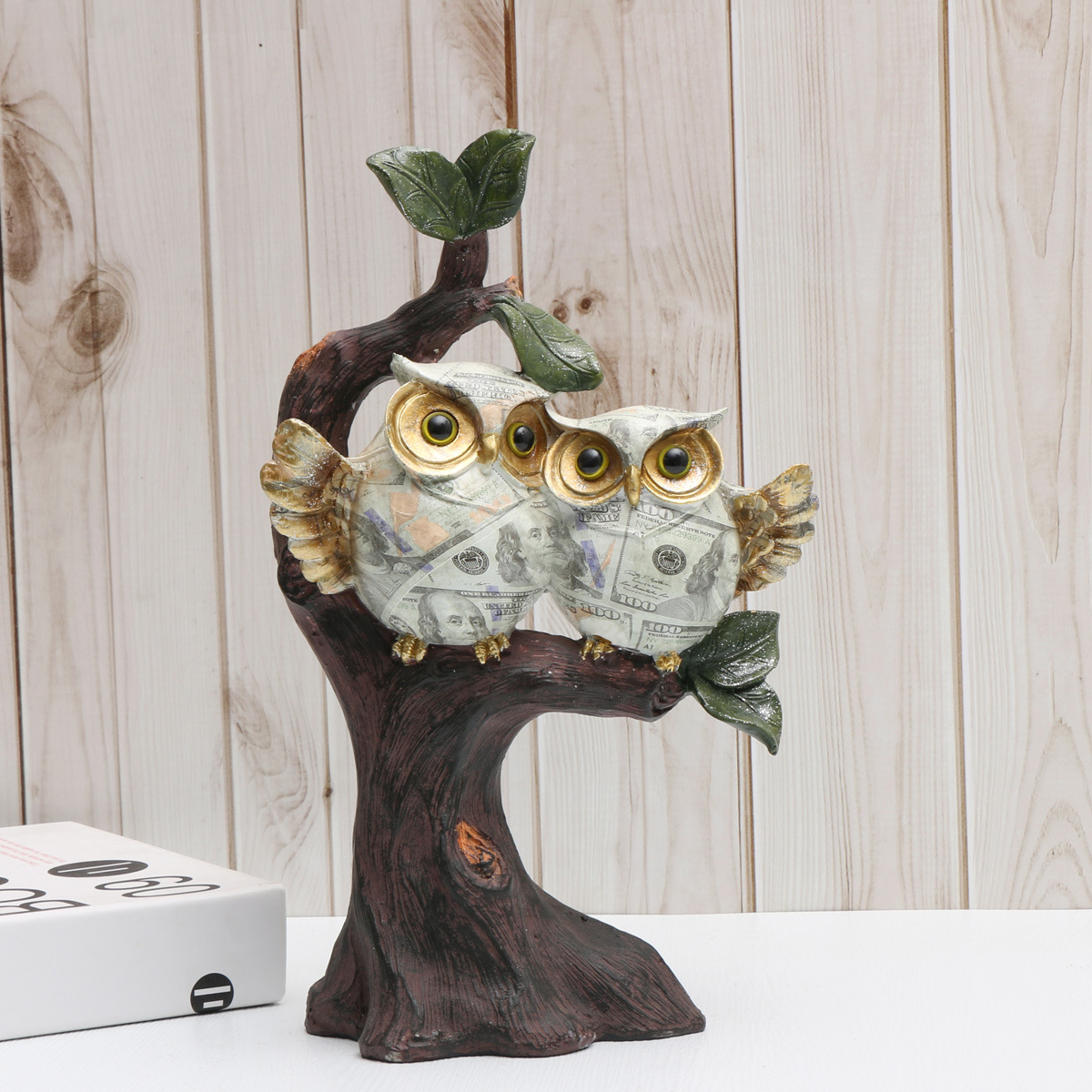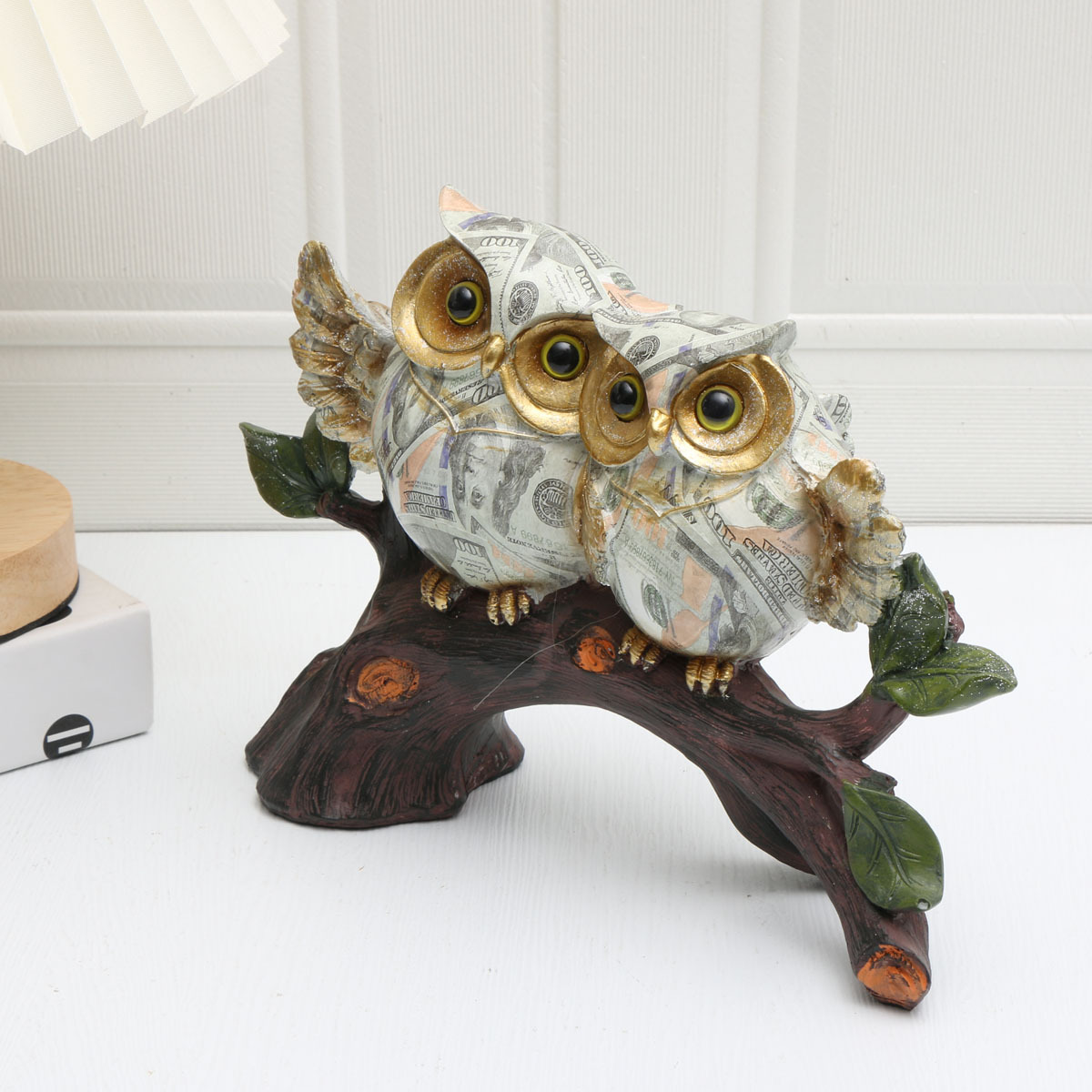 국경 간 귀여운 올빼미 장식품 데스크탑 거실 TV 내각 창조적 인 장식 수지 공예 복도