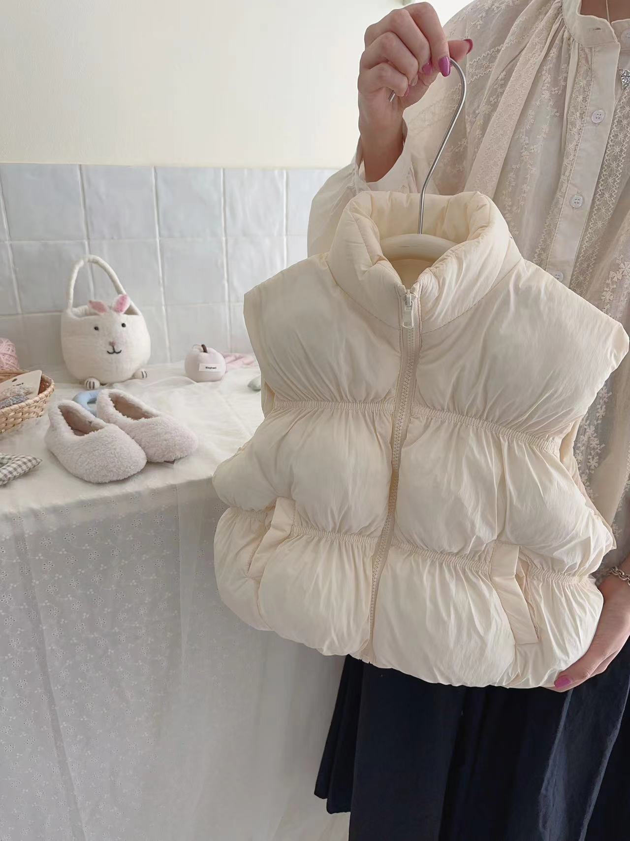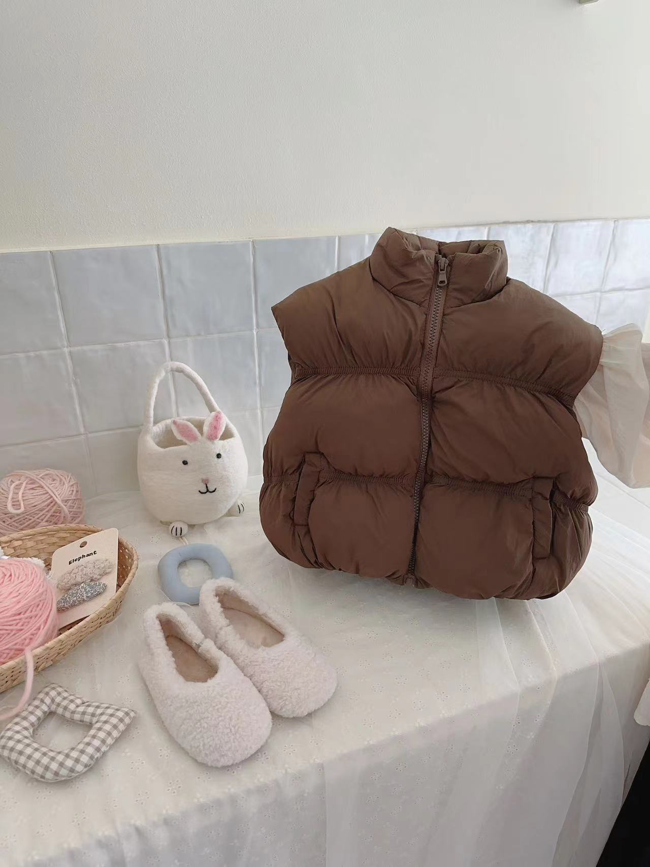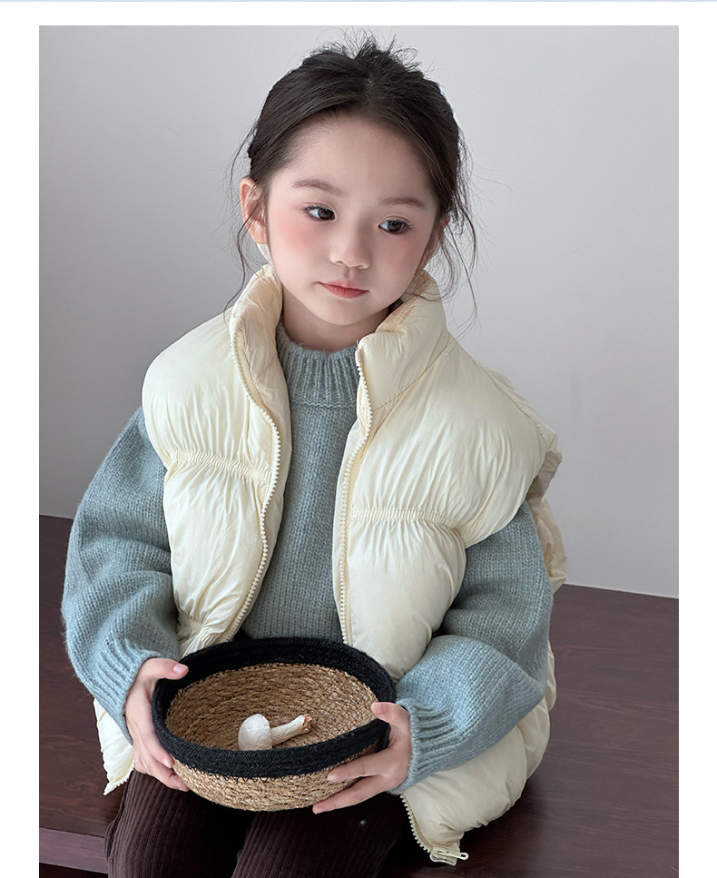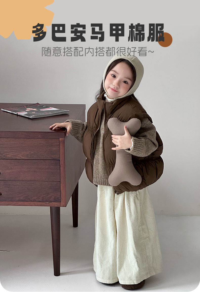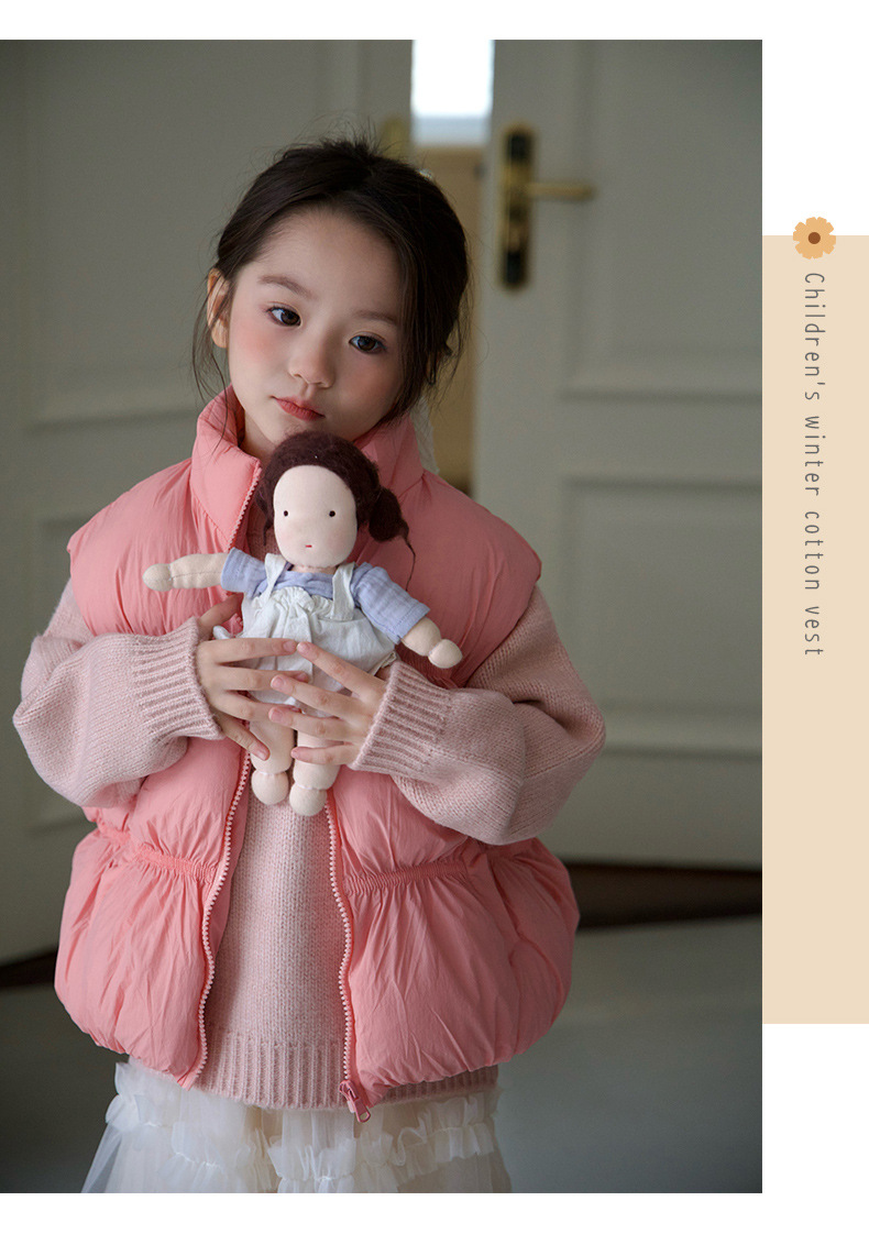 어린이 가을, 겨울 도파민 다운 코튼 패션 조끼 소녀 아기 짧은 두꺼운 따뜻한 한국 스타일 코튼 조끼스토어 가기