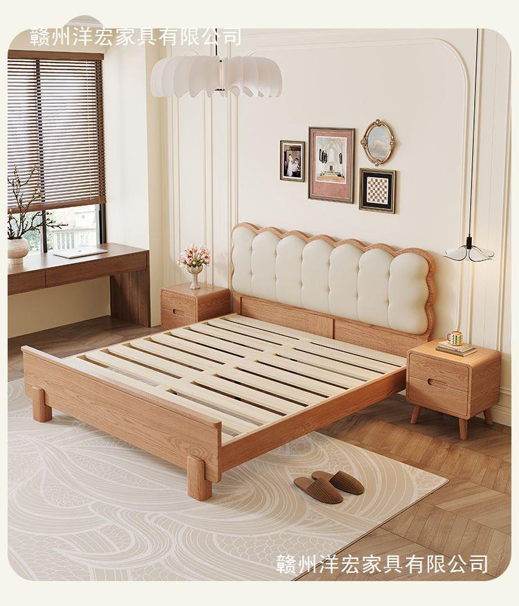 재 단단한 나무 침대 골동품 1.8 m 싱글 더블 침대 마스터 침실 가구 1.5 m 크림 부드러운 웨딩 침대