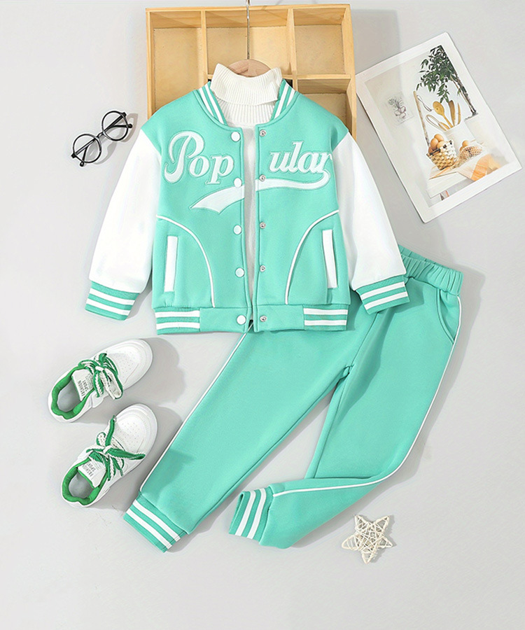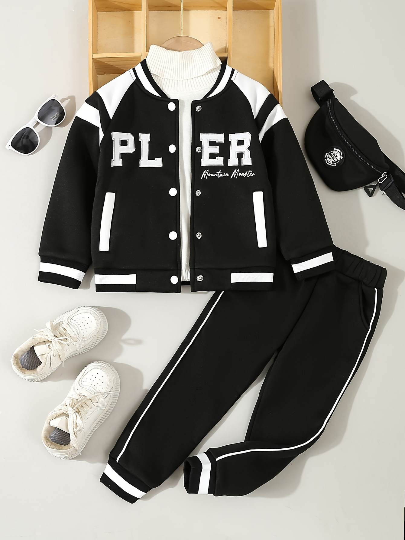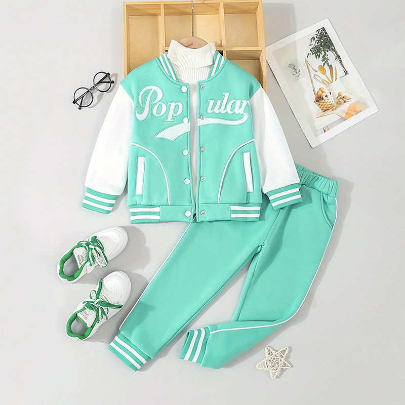 국경 간 아동복 야구 세트 긴 소매 세트 가을 소년과 소녀 재킷 최고 편지 인쇄 캐주얼 투피스 세트 트렌디스토어 가기