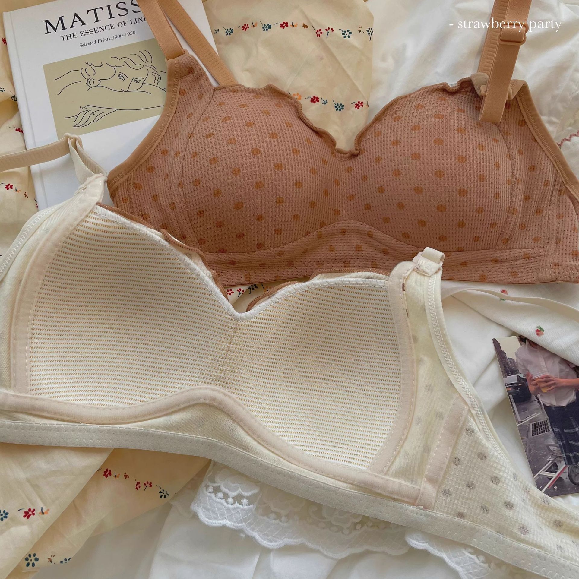 초콜릿 버터 쿠키 스틸 링이없는 일본식 소녀 로리 컵 작은 가슴 푸시 업 브라 속옷 여성용 얇은 브래지어스토어 가기