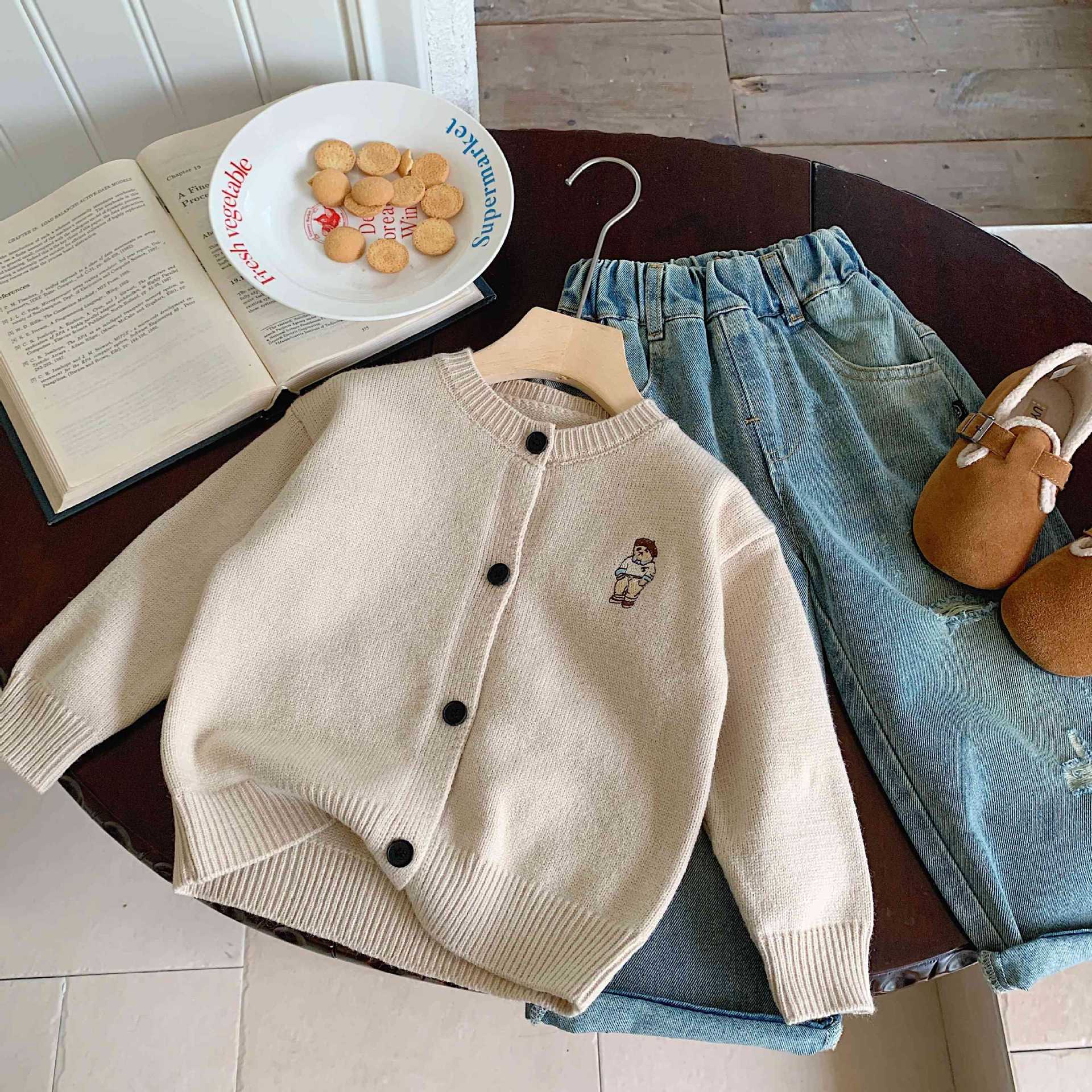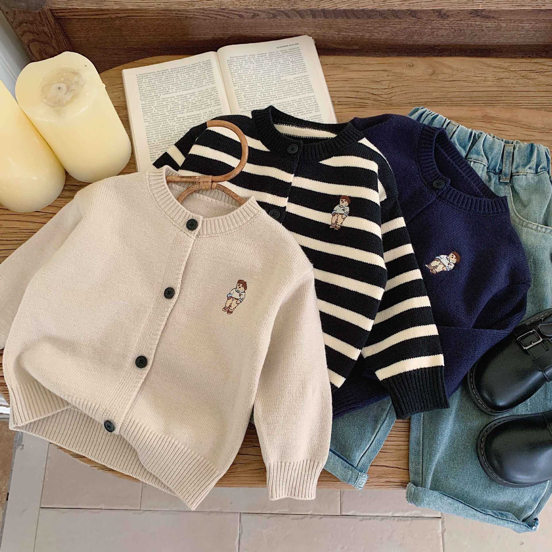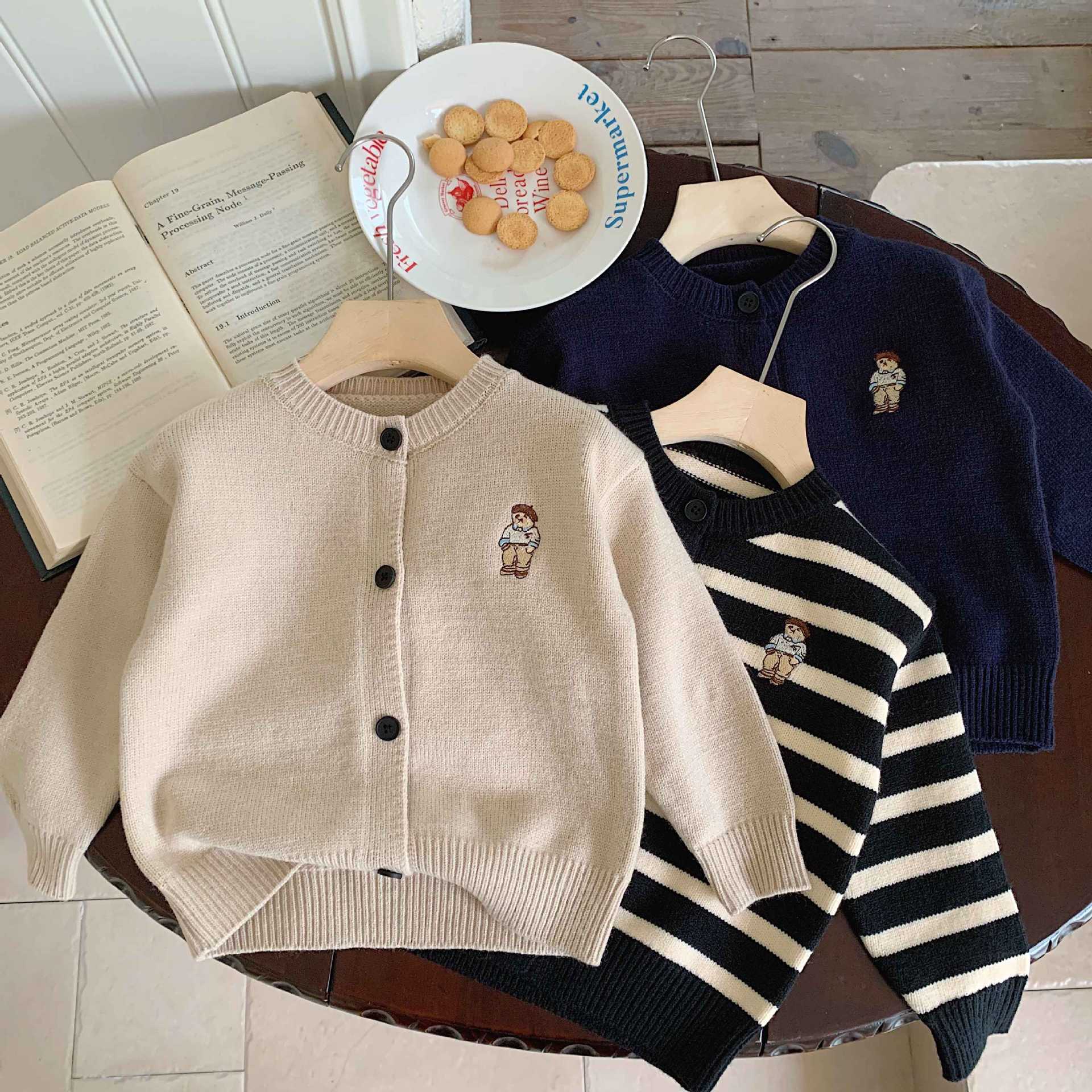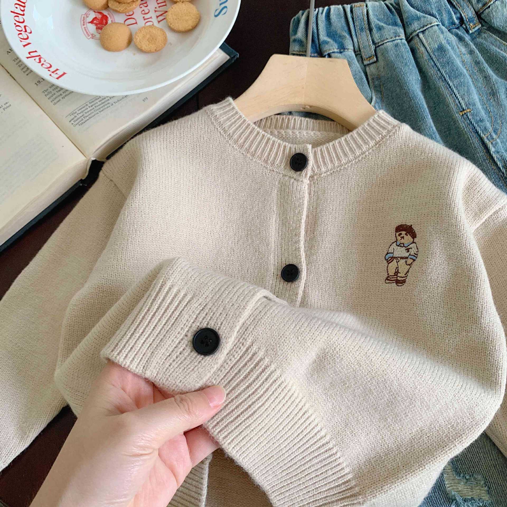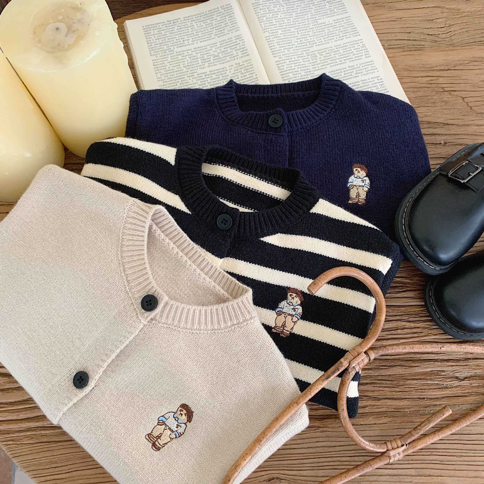 니트웨어 2025 봄 가을 스웨터 정교한 자수 곰돌이 가디건 한국 스타일 남아용 코트 여아용 니트 가디건 가을스토어 가기