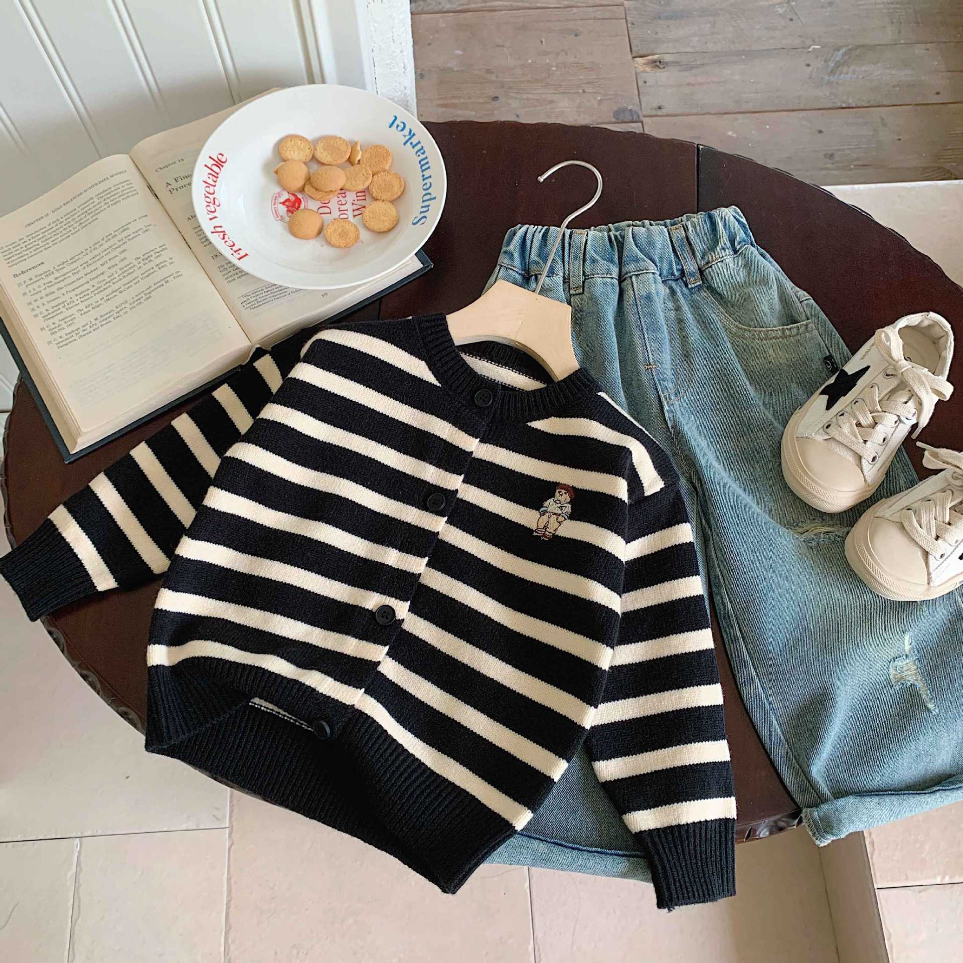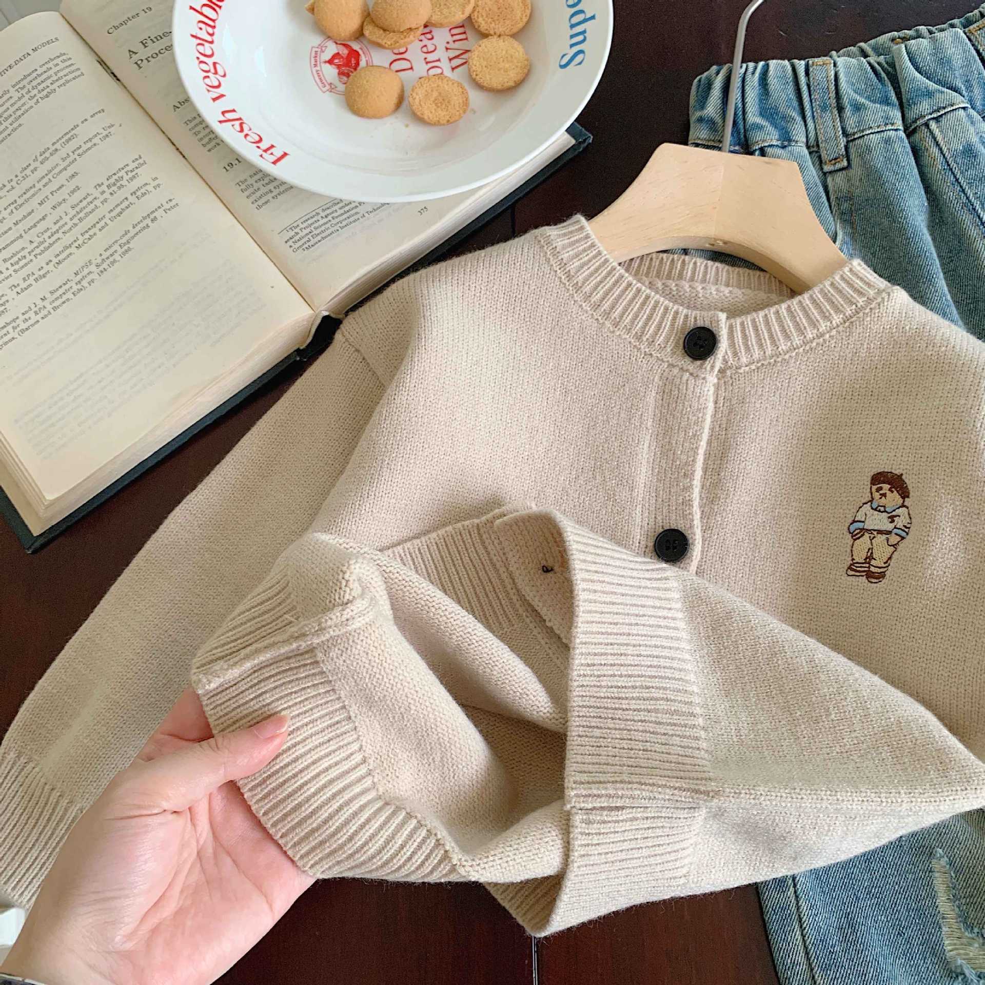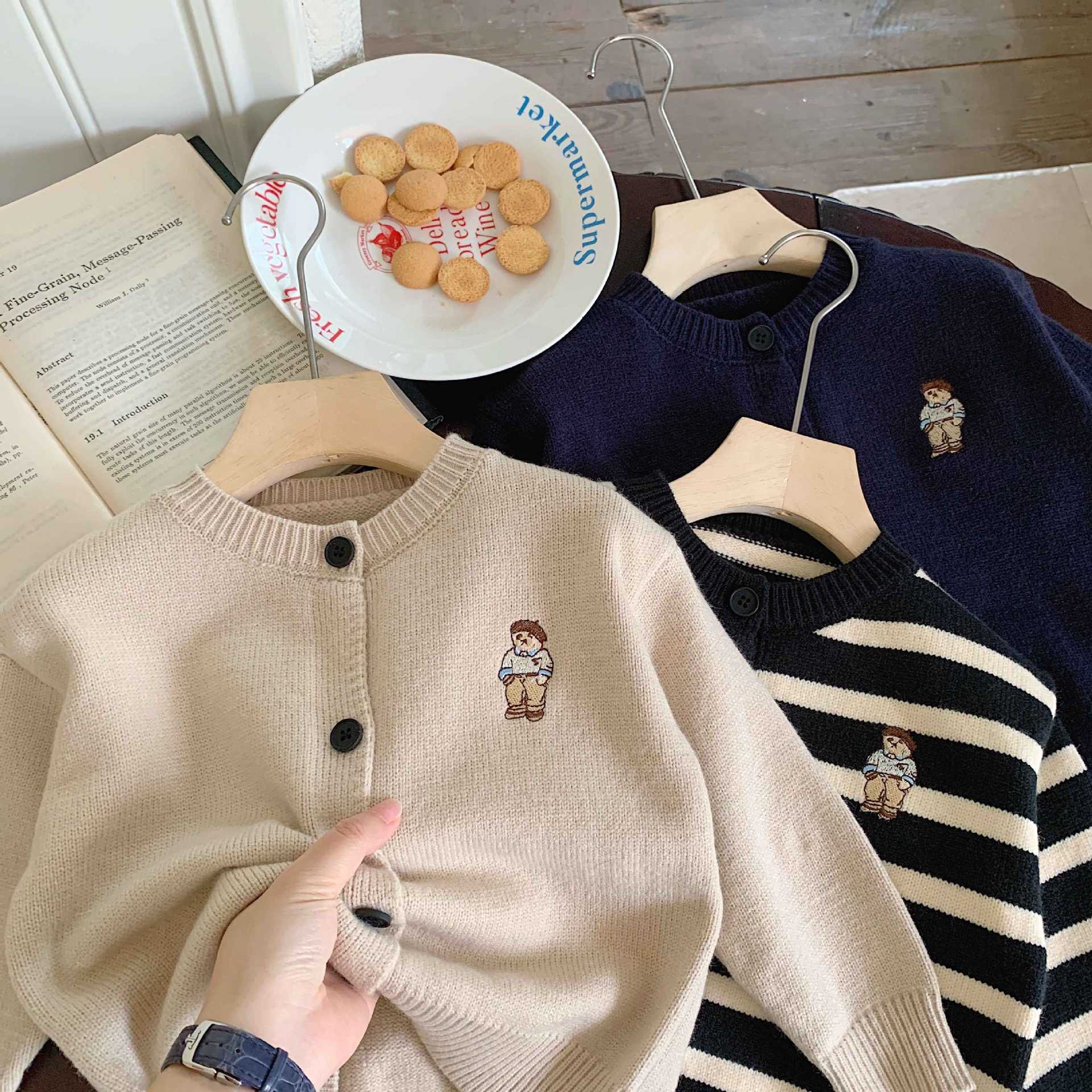 니트웨어 2025 봄 가을 스웨터 정교한 자수 곰돌이 가디건 한국 스타일 남아용 코트 여아용 니트 가디건 가을
