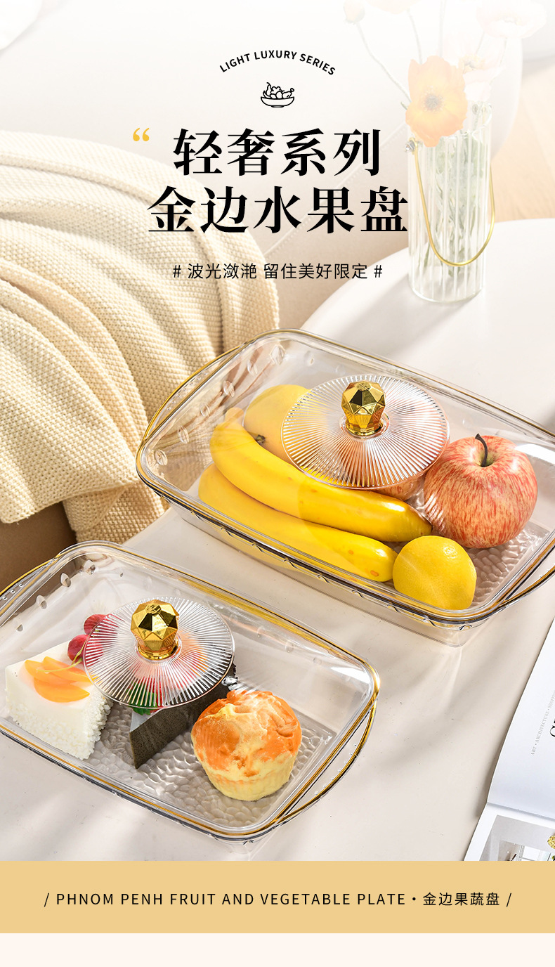 중동 아랍 스타일 과일 플레이트 투명 프놈펜 과일 스낵 보관 접시 손잡이가 달린 고급 티 플레이트